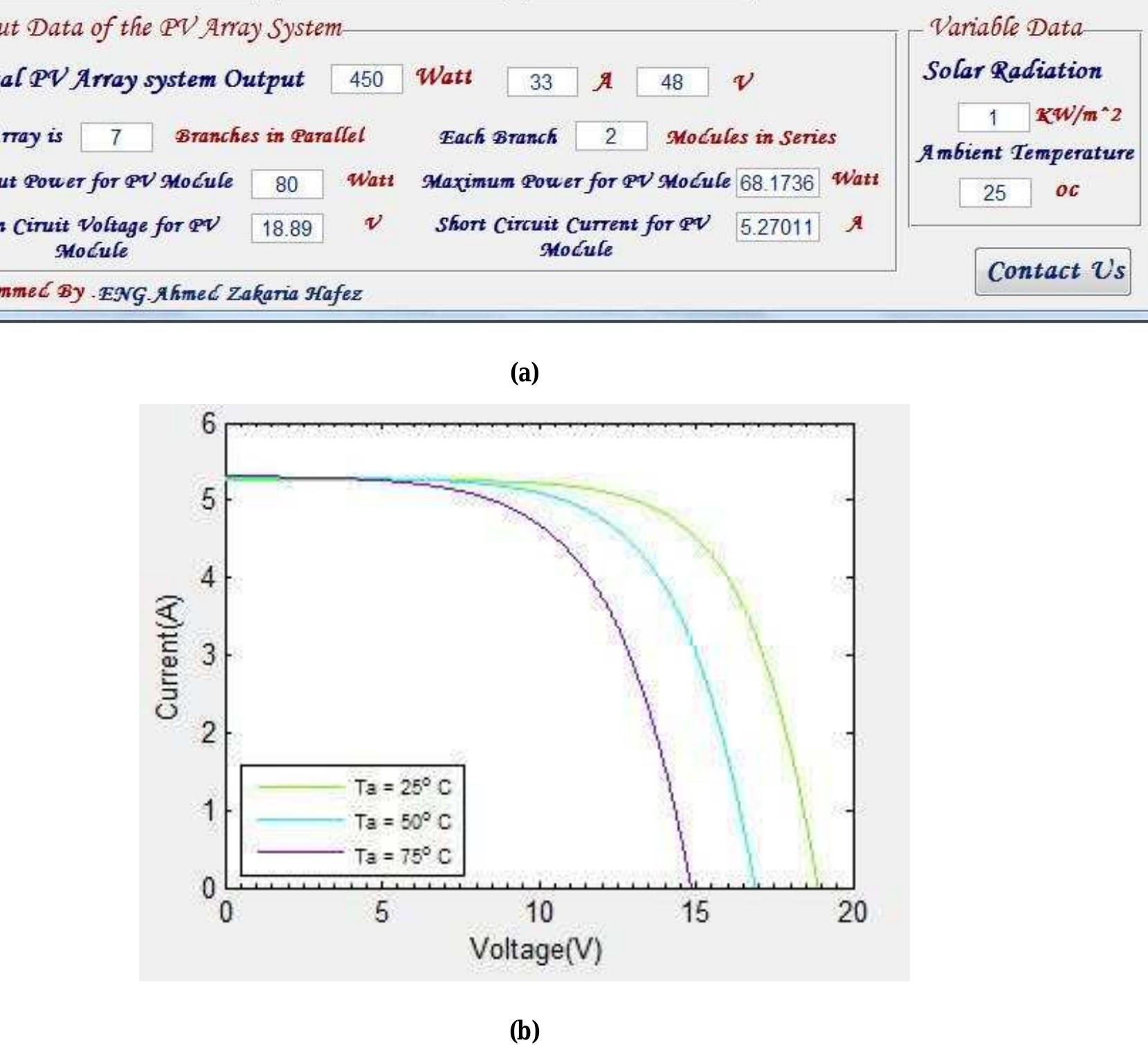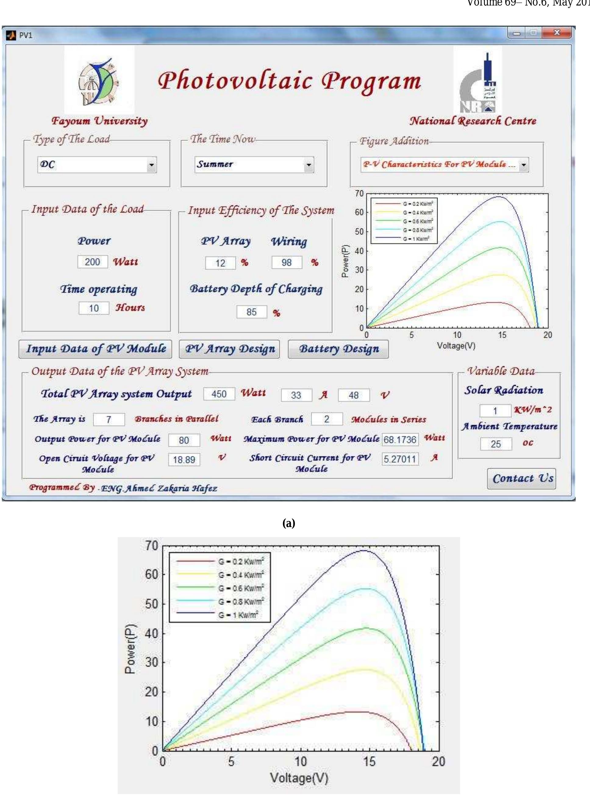 This paper presents the implementation of a generalized photovoltaic simulation model using MATLA... more This paper presents the implementation of a generalized photovoltaic simulation model using MATLAB®/GUI interface. The model is developed using basic circuit equations of the Photovoltaic (PV) cells including the effects of solar radiation and temperature changes. These effects added in real time operation simultaneously. Since the PV module has nonlinear characteristics, it is necessary to model it for the design and simulation of maximum power point for such system applications. Photovoltaic system characteristic curves as current -voltage (I-V) and power -voltage (P-V) characteristics are drawn according to values change of the temperature and solar radiation which observed in MATLAB®/GUI interface. The simulation results showed that these factors and the corresponding PV model influence the maximum power obtained from PV modules under operating conditions. The simulation model also presented the design of the array and the batteries of the load connected to the photovoltaic system.