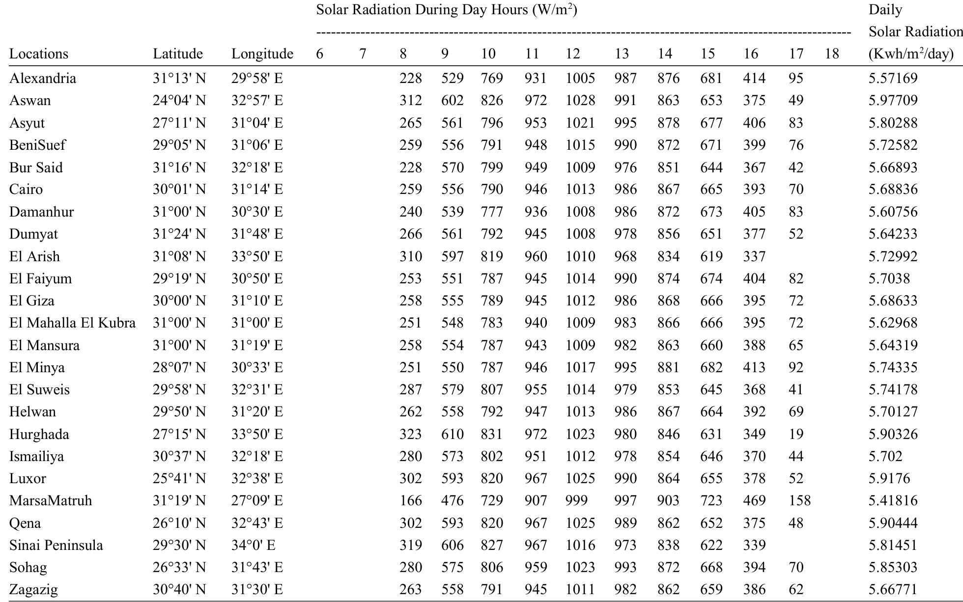 on a horizontal plane and an inclinedplane. Results obtained are useful for any solar energy system applications in Egypt.