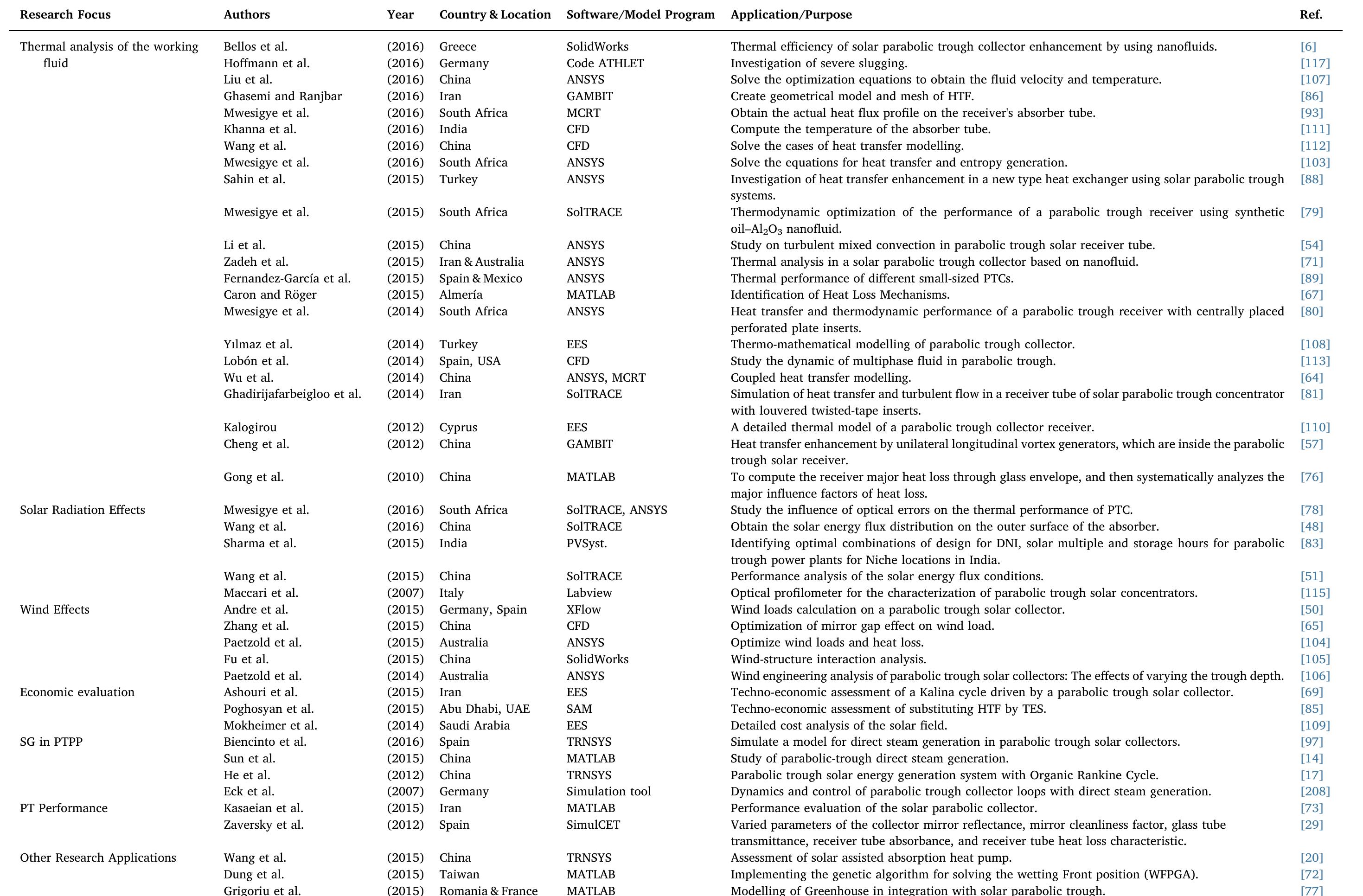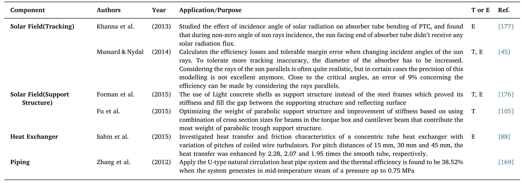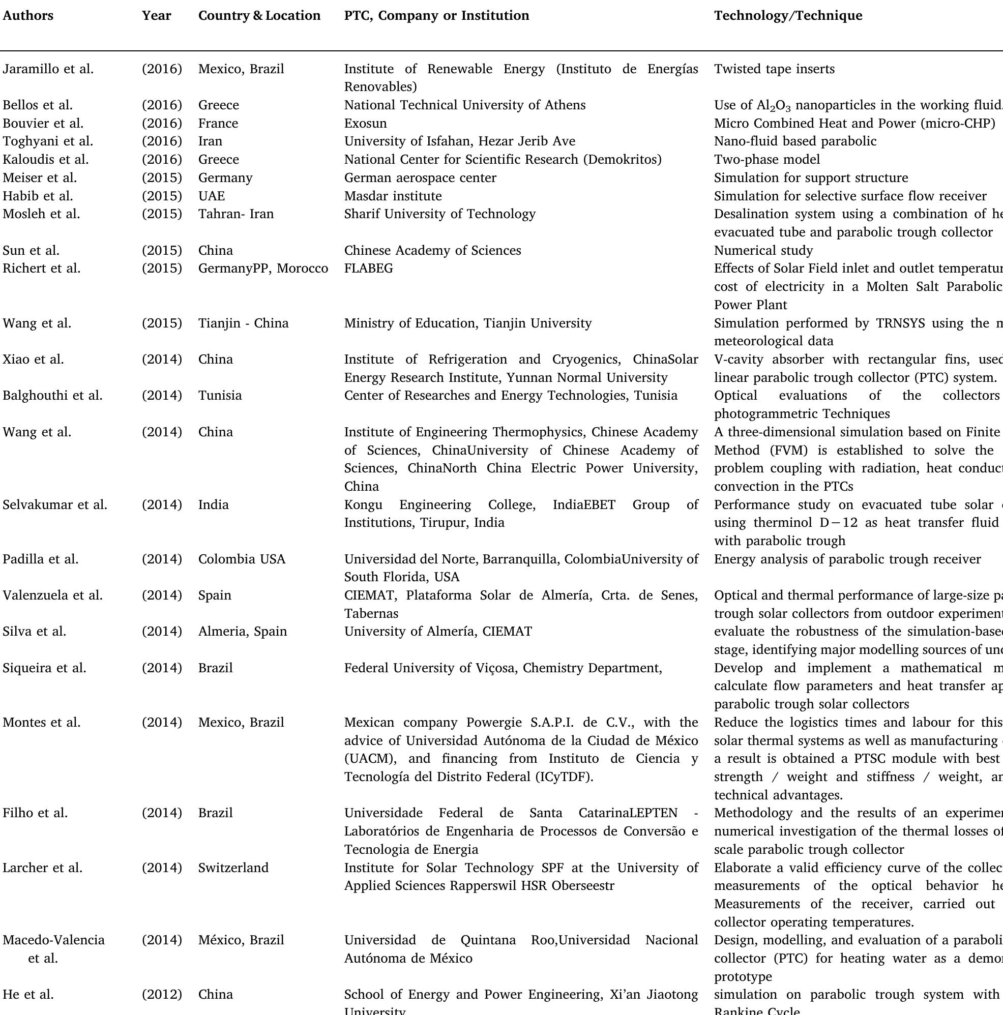 This paper presents a review of the design parameters, mathematical techniques and simulations us... more This paper presents a review of the design parameters, mathematical techniques and simulations used in the design of parabolic trough solar systems, along with a review on their applications. Recent studies that analyze the deployment of solar parabolic trough collectors (SPTC) in different countries and the operational SPTC plants are also presented and discussed. The paper also discusses the different kinds of software and test methods of solar collectors developed since 1981 which can be distinguished by their particular mathematical models or tracking techniques. In particular, since the mathematical models are especially required for the design, analysis, testing and validation of the systems results as they provide an approximation of the dynamic behavior of the physical properties of the system, they are discussed in depth. The mathematical models allow the calculation of different parameters of the solar parabolic trough system, the angle of inclination of the collecting surface and the forces acting on the system. The validity and experimental validation of the major mathematical models on practical solar parabolic trough concentrators, receivers and other components of different dimension are also reviewed. The paper showed the optical efficiency values are close to 63% and the theoretical peak optical efficiency reached 75%.