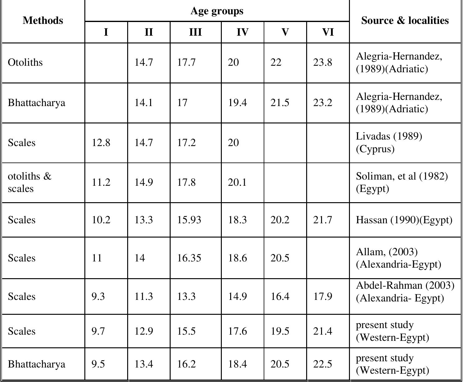 collected from landing site in Eastern Coast of Mediterranean Sea off Alexandria, Egypt. Eight age groups were recorded