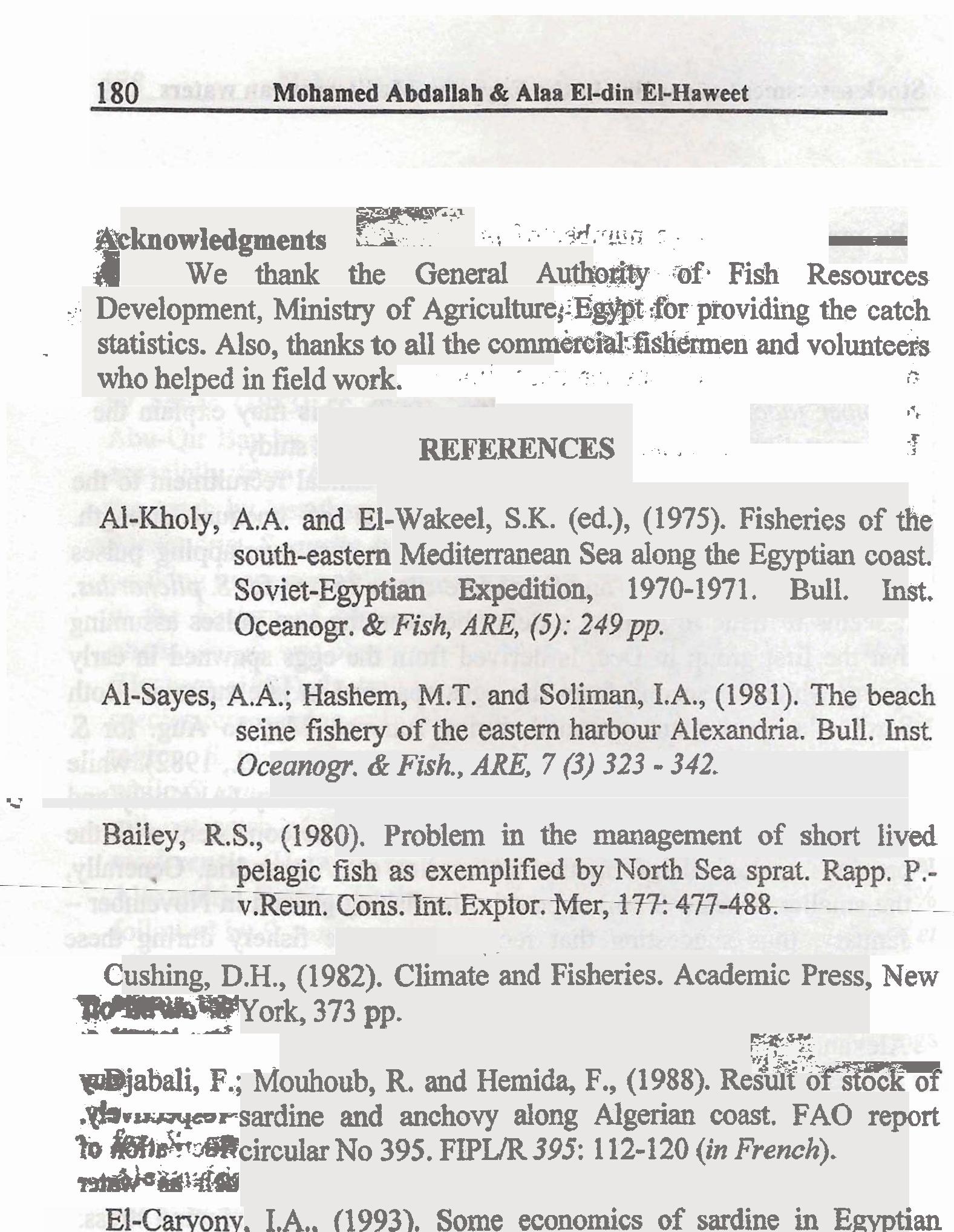 assessment studies of bogue stock in Western Mediterranean Coast of Egypt.