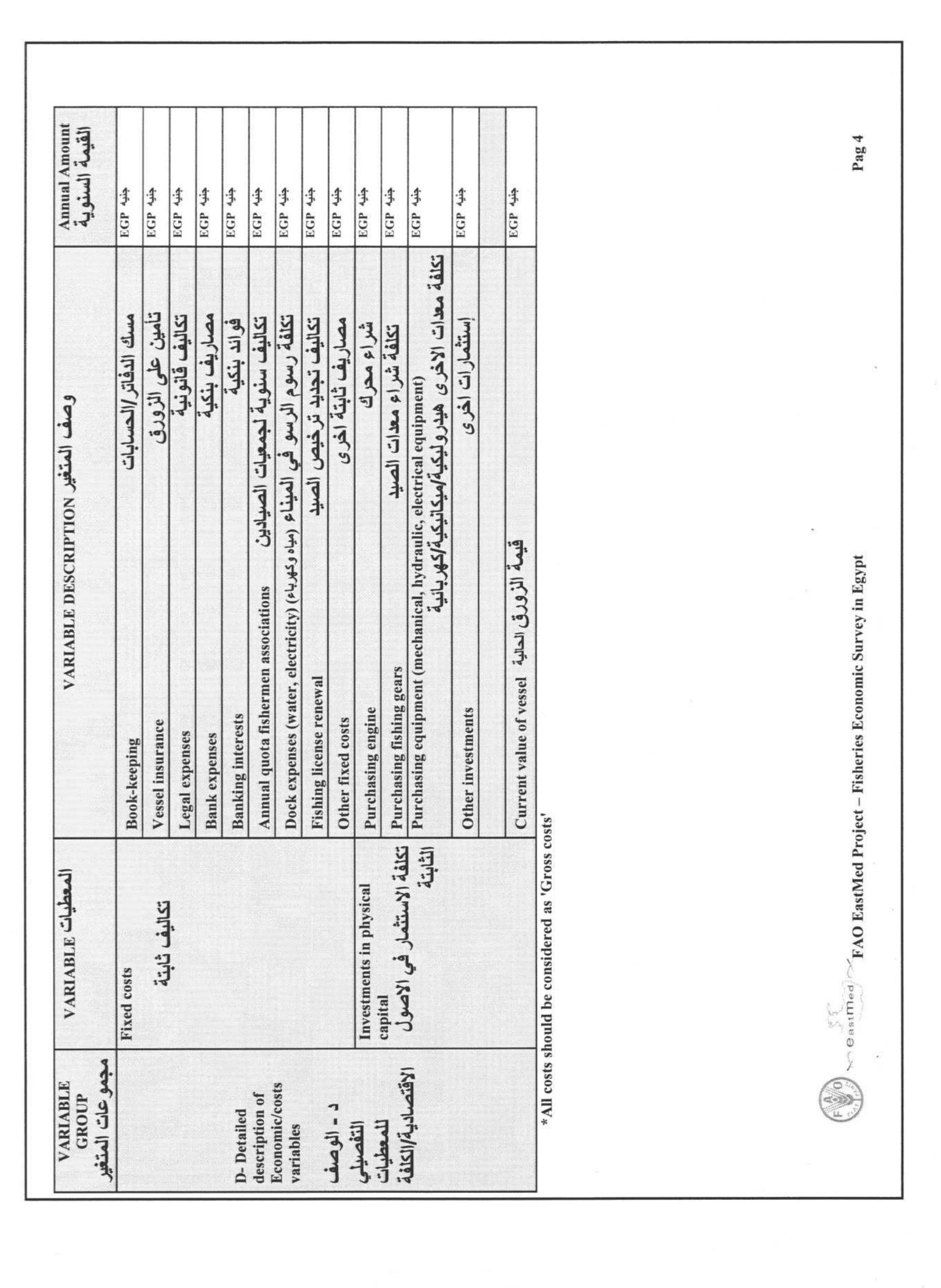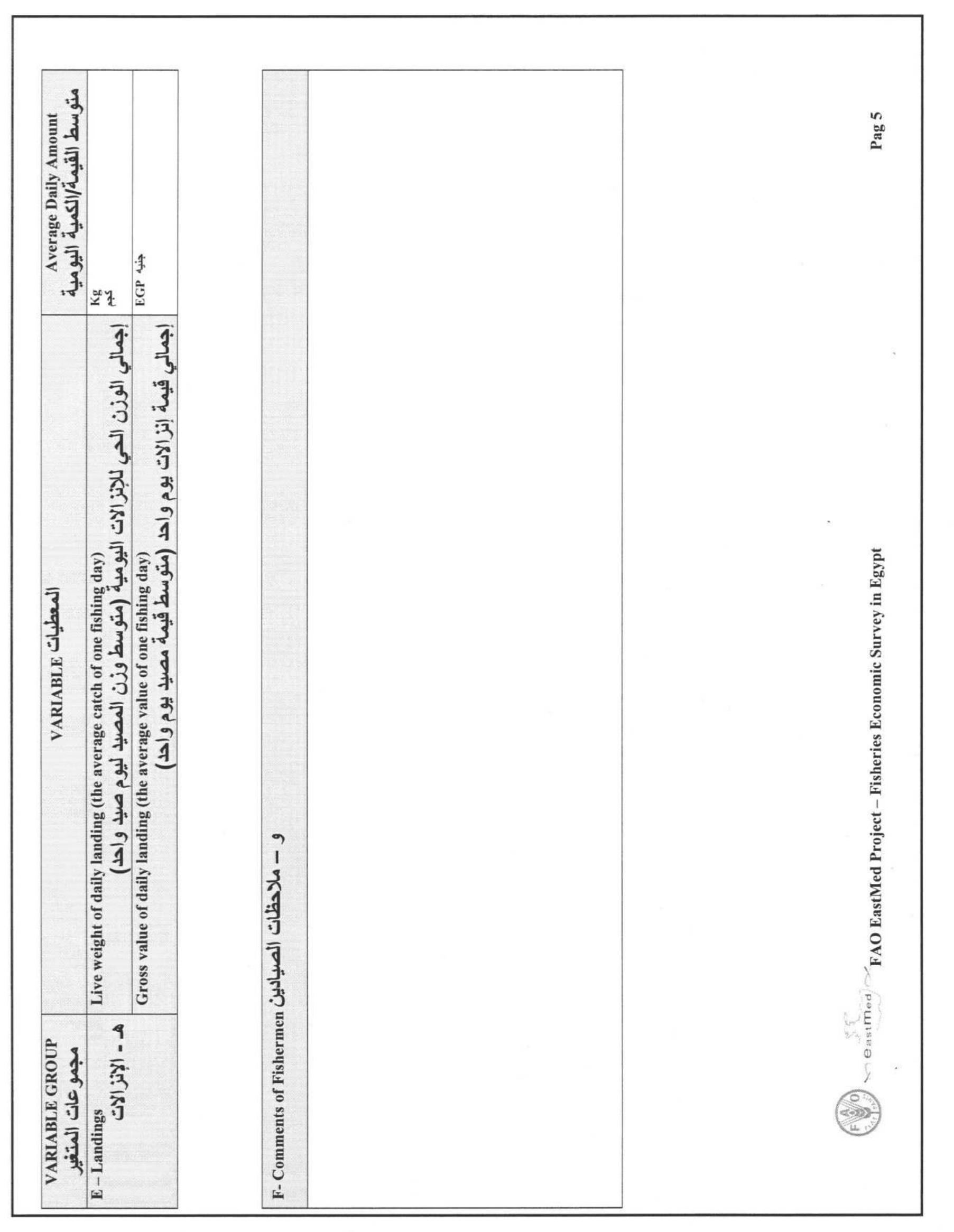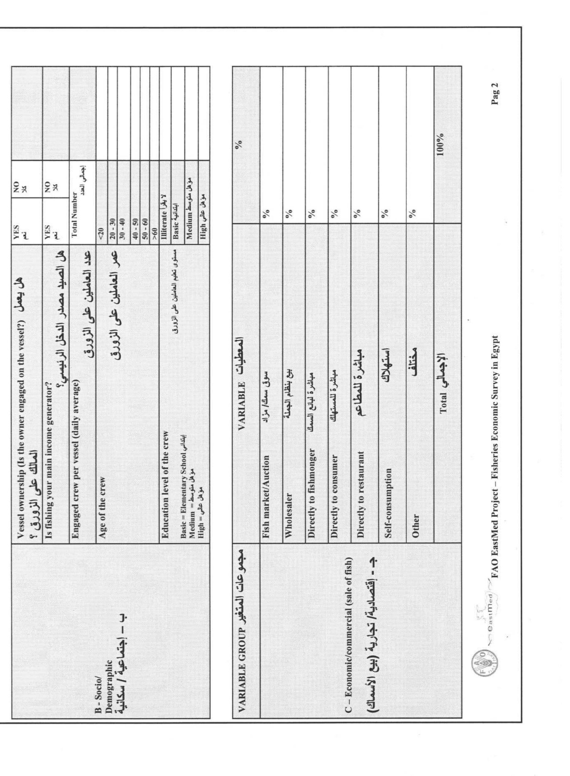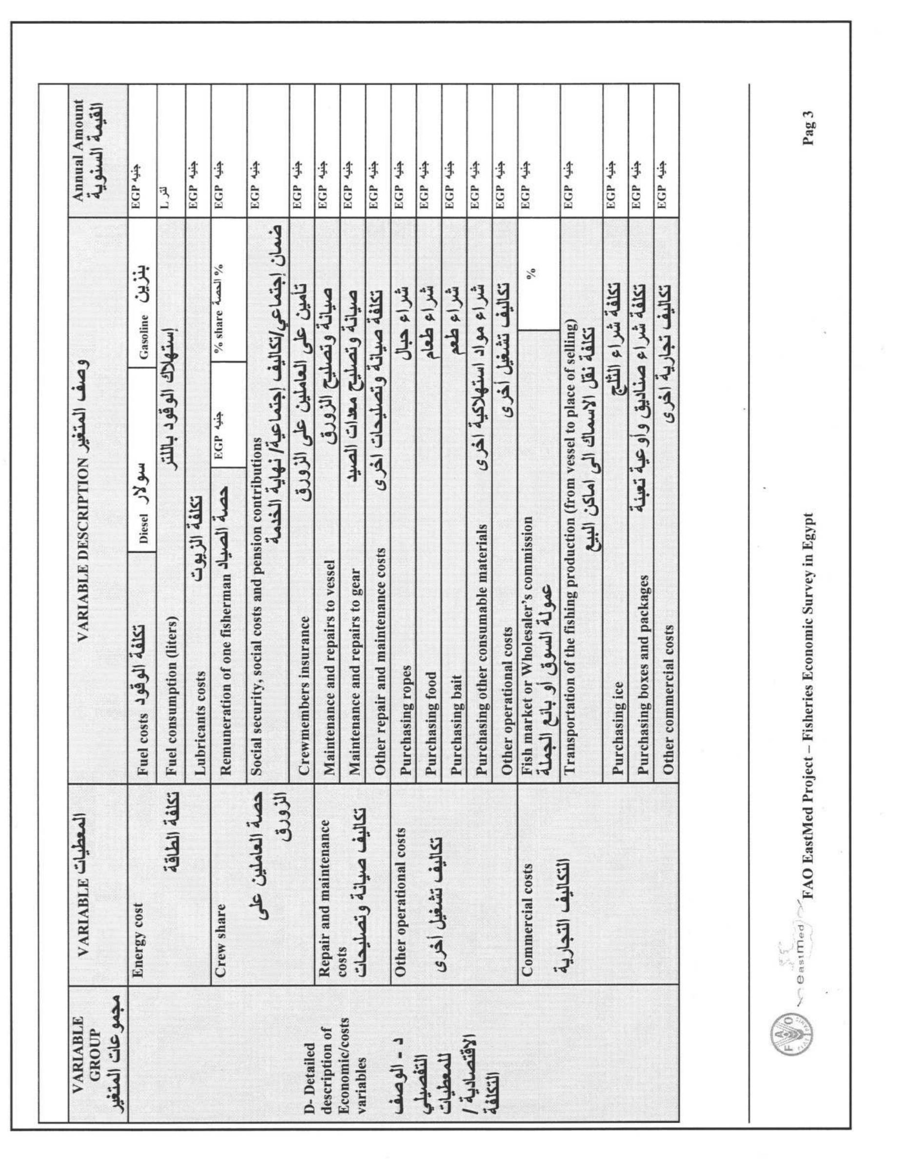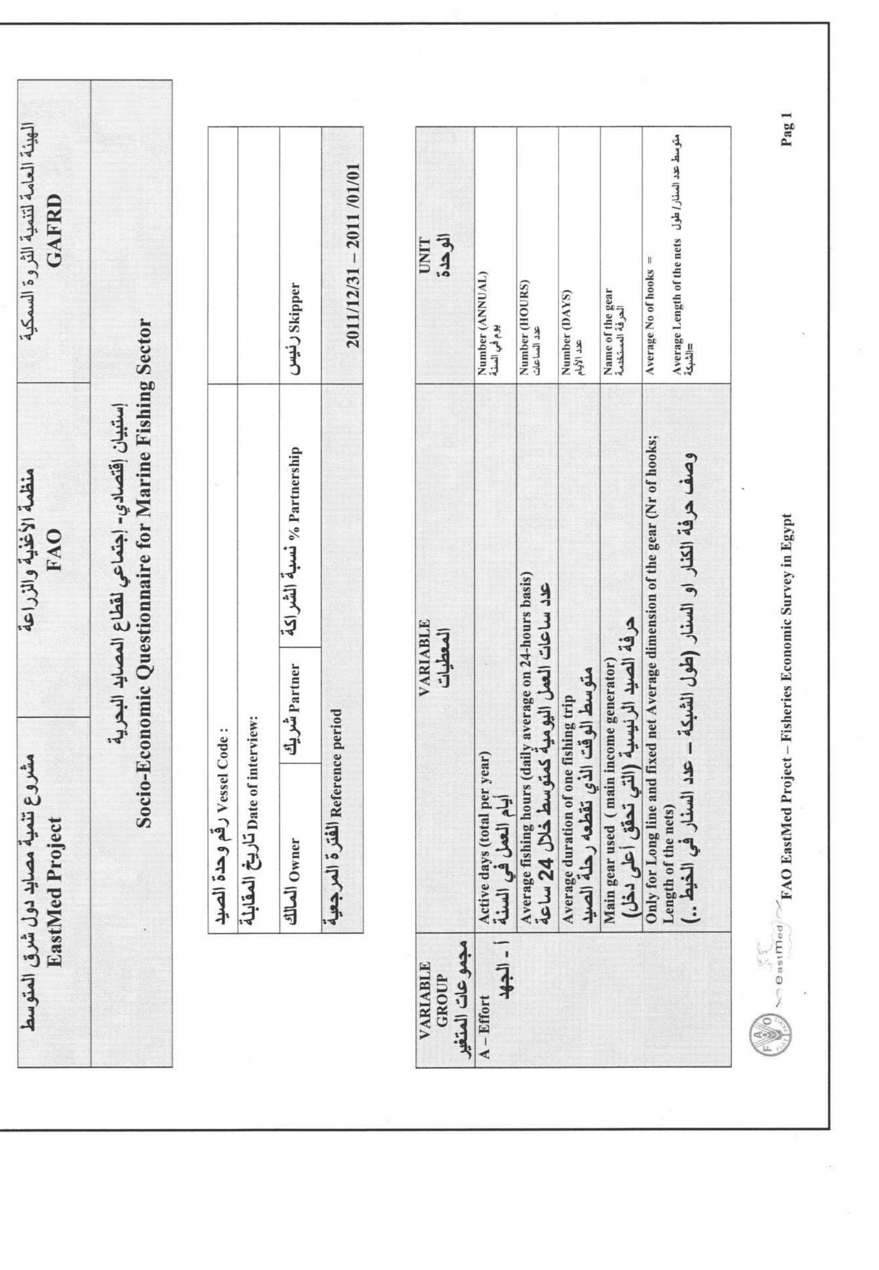 This study was implemented after the EastMed 2nd co-ordination meeting on the 5-6th April, Antaly... more This study was implemented after the EastMed 2nd co-ordination meeting on the 5-6th April, Antalya, Turkey (EastMed 2012), where the participants agreed to have a preliminary assessment of the socio-economic situation of the Egyptian fisheries sector. In order to undertake such an assessment several information was gathered, from literature, from several fishers and other stakeholders, and a sampling survey in order to investigate the main socio-economic characteristics of the motorized fishing vessels by type of fishery. In general the study found that the value of capture fisheries produced by the motorized fleet in the Mediterranean was $182 million generating a net profit of $42.5 million. The ex-vessels prices ranged between $2.4/Kg and $4.3/Kg, and the first sale of seafood products occurred mostly through the auction markets (56%) and through the wholesalers (40%). The revenue of the fleet provided an annual salary of about $2,662 per fisher to about 22,173 fishers, which is ...