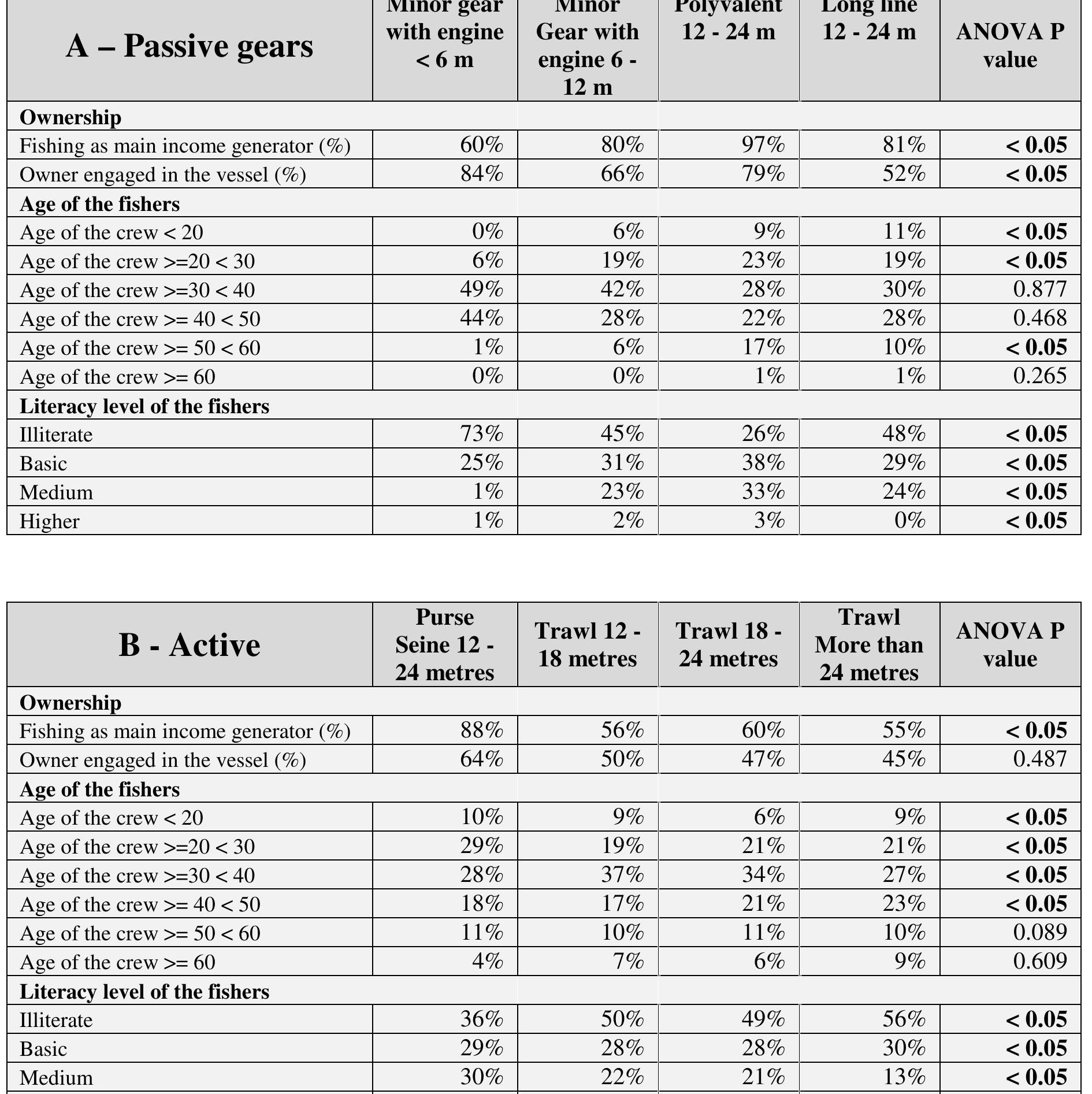aggregation system, traps and hooks) targeting mainly T. zillii. For each gear and