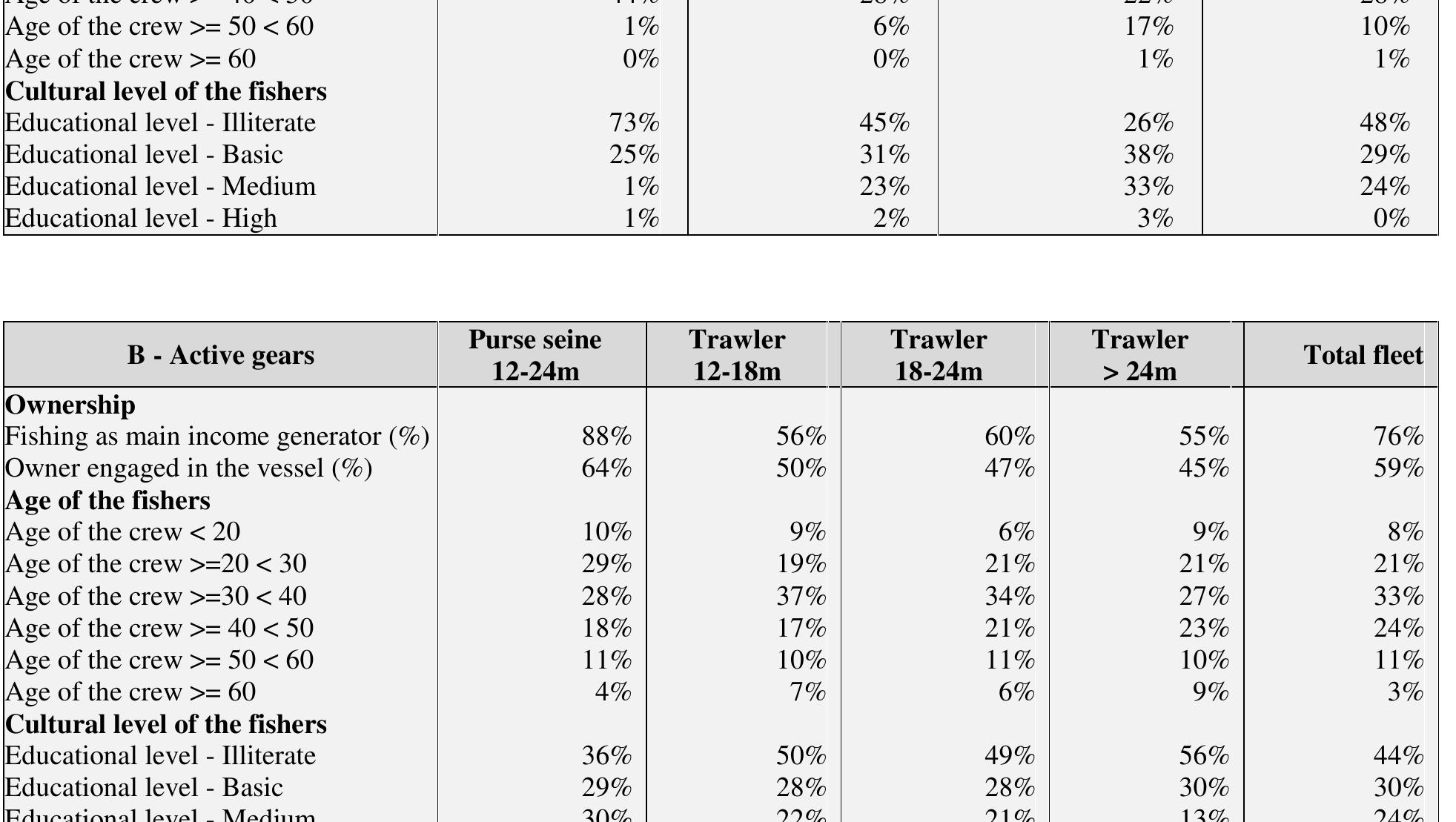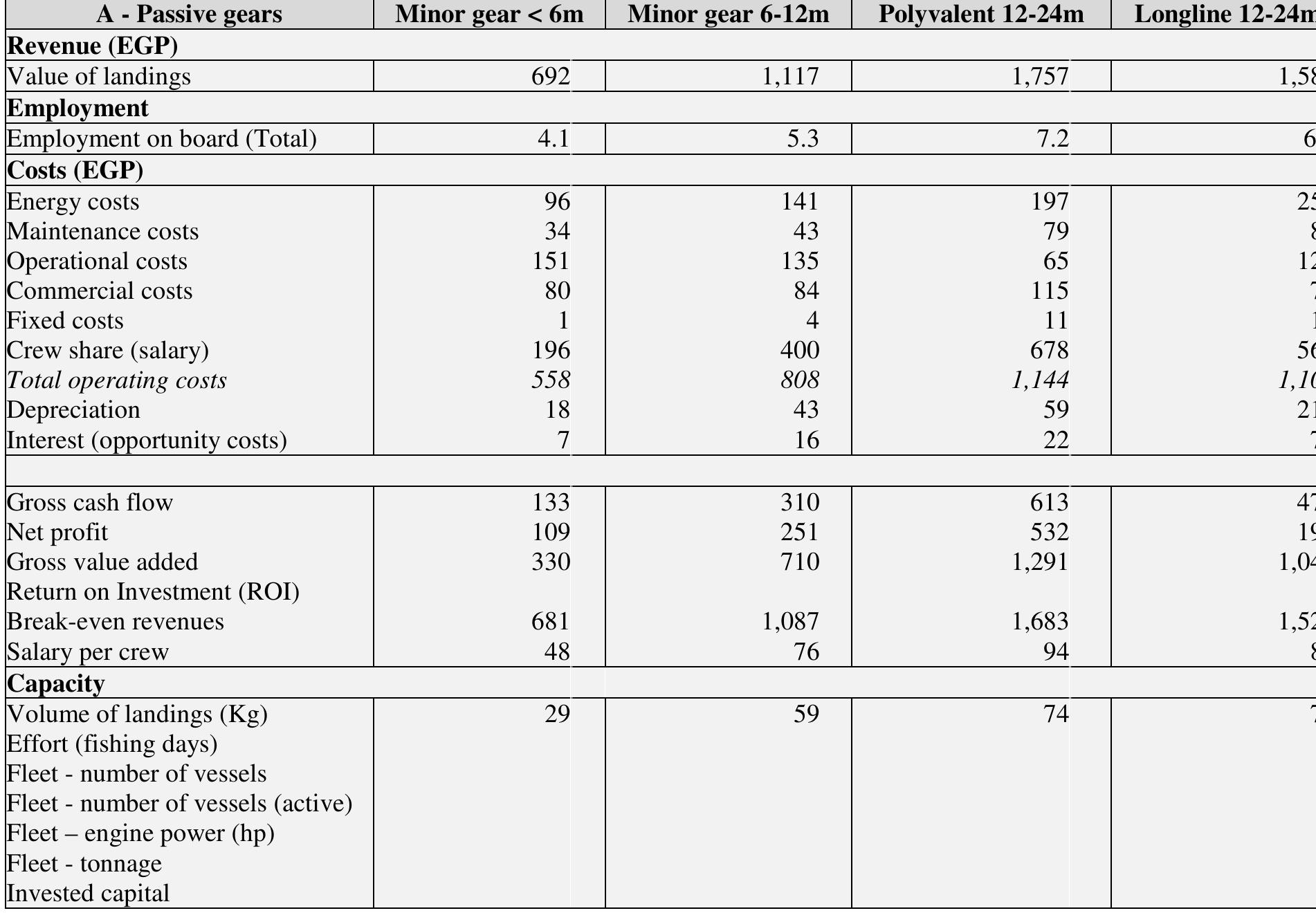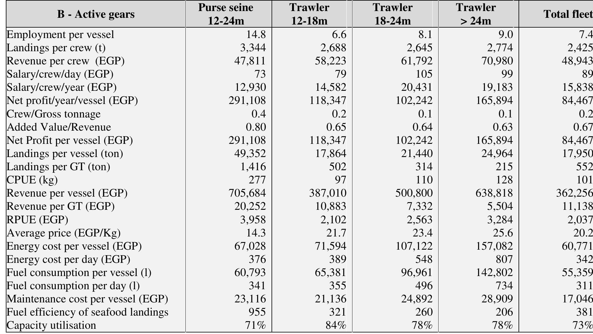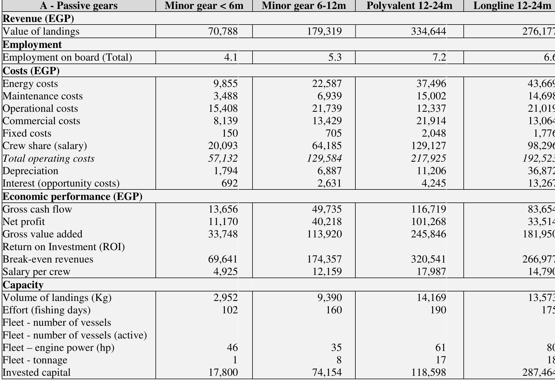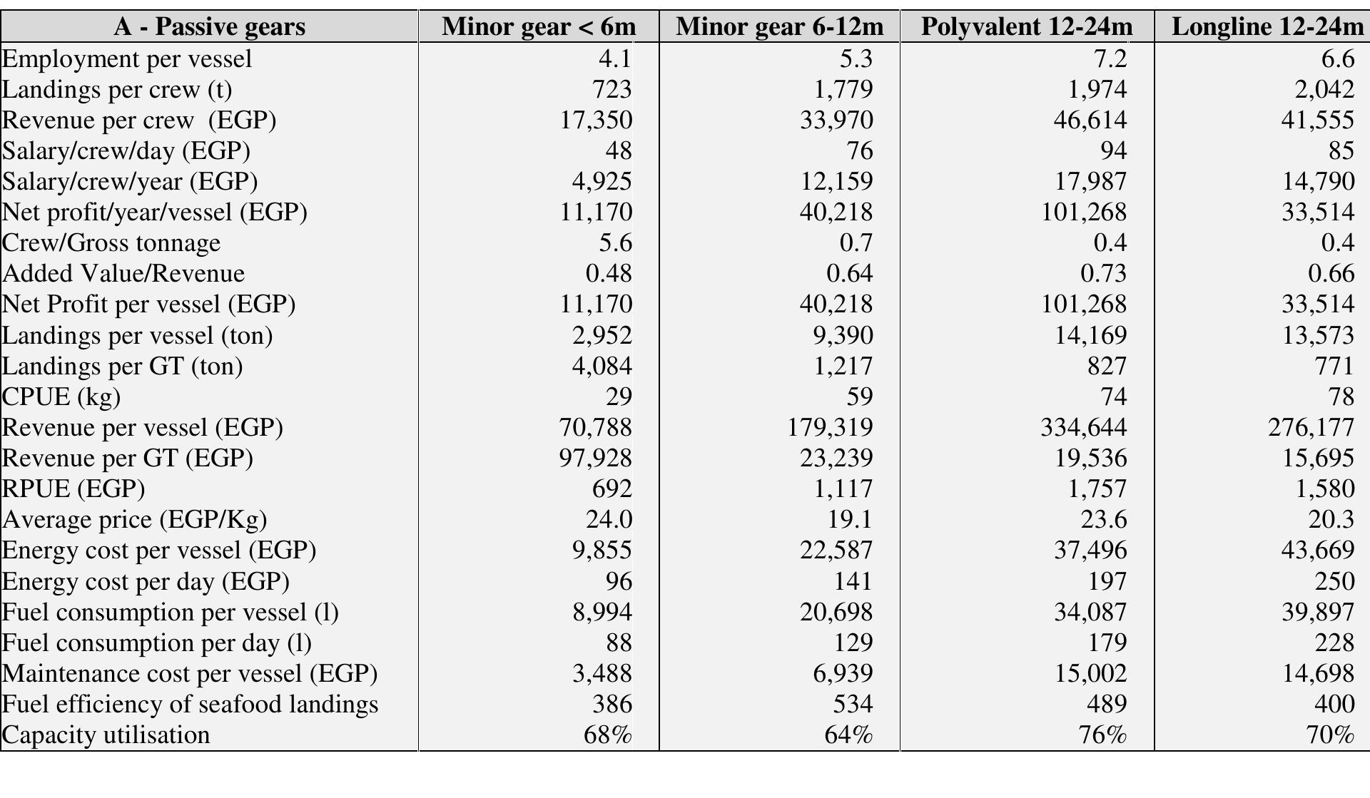 Egyptian fisheries has seen a dramatic change in the last decades, with a considerable expansion ... more Egyptian fisheries has seen a dramatic change in the last decades, with a considerable expansion of the trawl fishery. This study tried to understand the present situation of Egyptian fisheries from the socio-economic perspective. The results show that the fleet is dominated by trawlers which represent the backbone of the fleet both in terms of technical characteristics and activity, making Egypt an exceptional case in the Mediterranean, where the fleets are generally dominated by small-scale fisheries. The fish prices are lower when compared to Europe, however when one considers the macroeconomic structure of the country, seafood is quite expensive for the local population. When one considers the national average, fisheries is a reasonably profitable activity, however it is important to note that this profitability comes from the fact that the industry is heavily subsidized by the low cost of fuel, which is one of the main operating costs. The problem in Egyptian fisheries is the o...