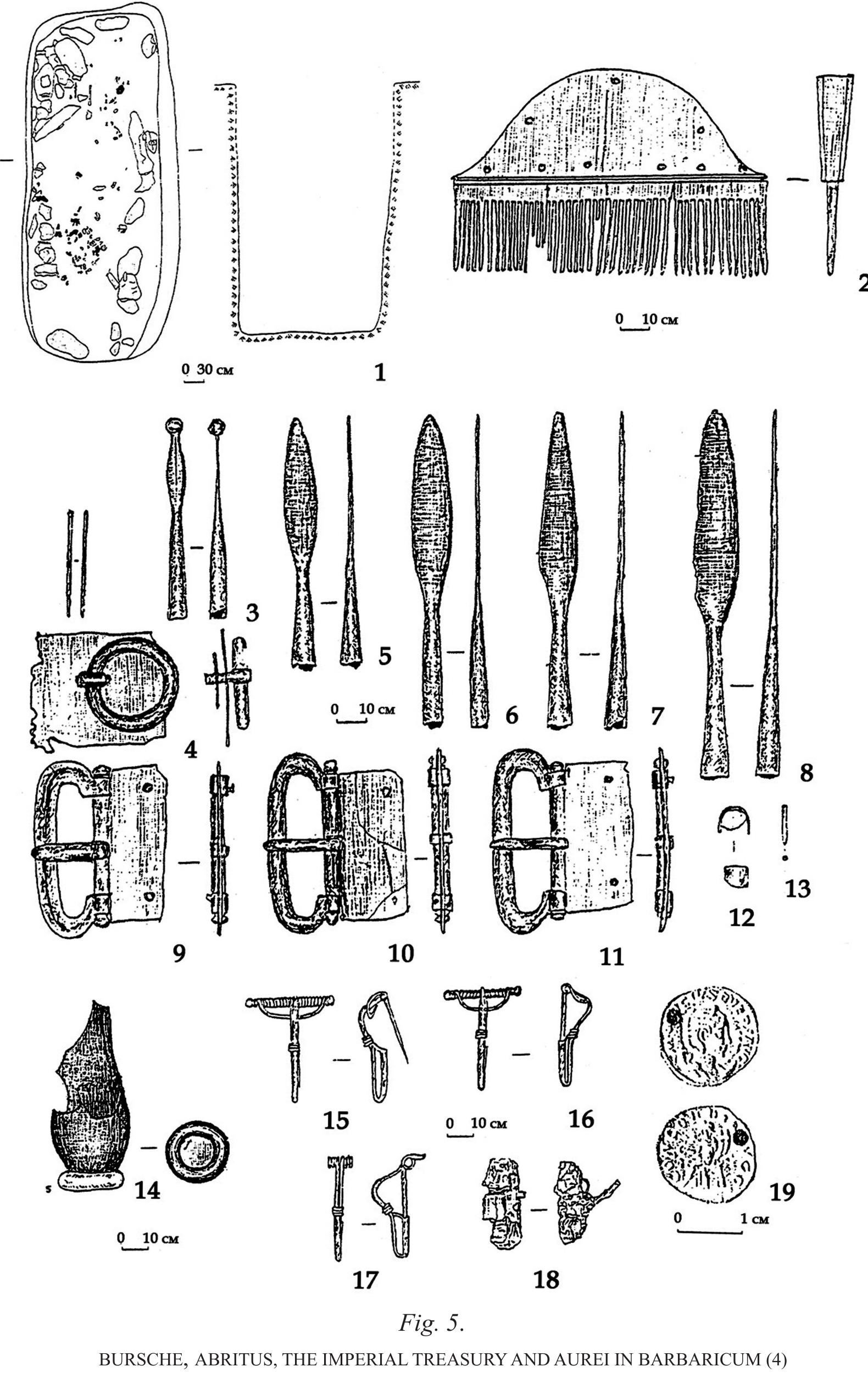 passed to the leader of a troop and next shared out among the warriors. Most of coins had been kept in pouches. The principal use of coins was as a source of metal for making, decorating or repairing elements of equipment. Barbarous imitations struck