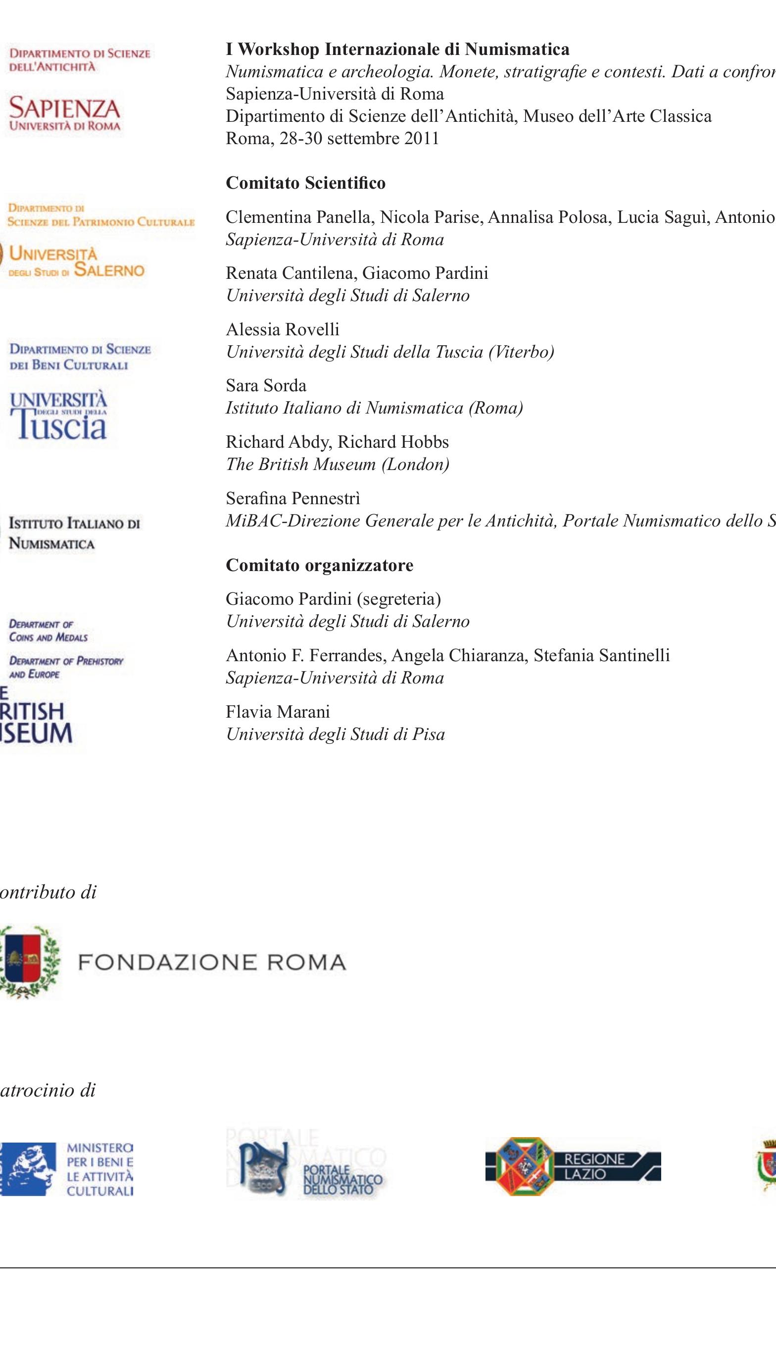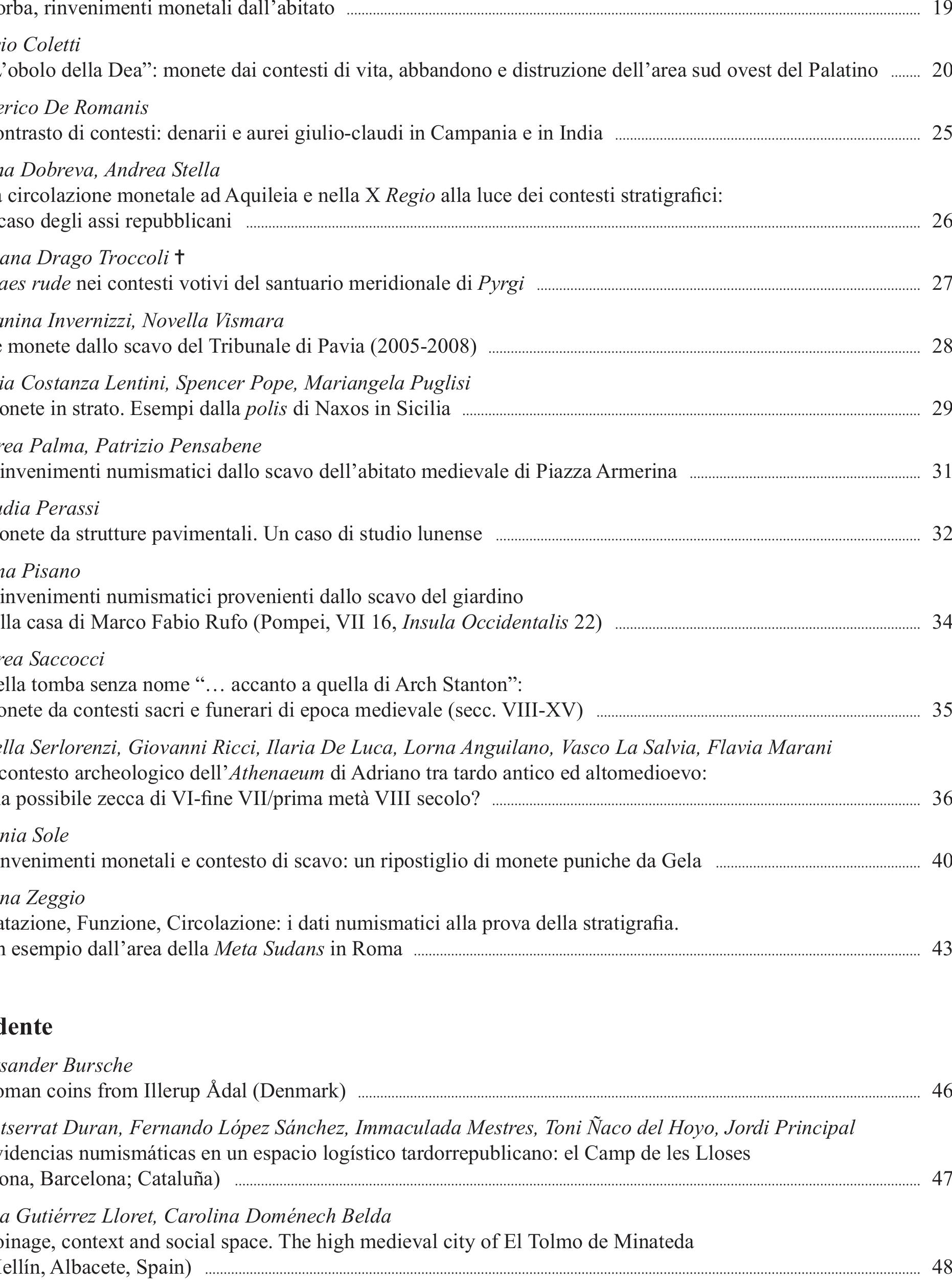 Numismatica e archeologia. Monete, stratigrafie e contesti. Dati a confronto. Workshop Internazionale di Numismatica, (eds. G. Pardini, N. Parise & F. Marani), Roma , 2017