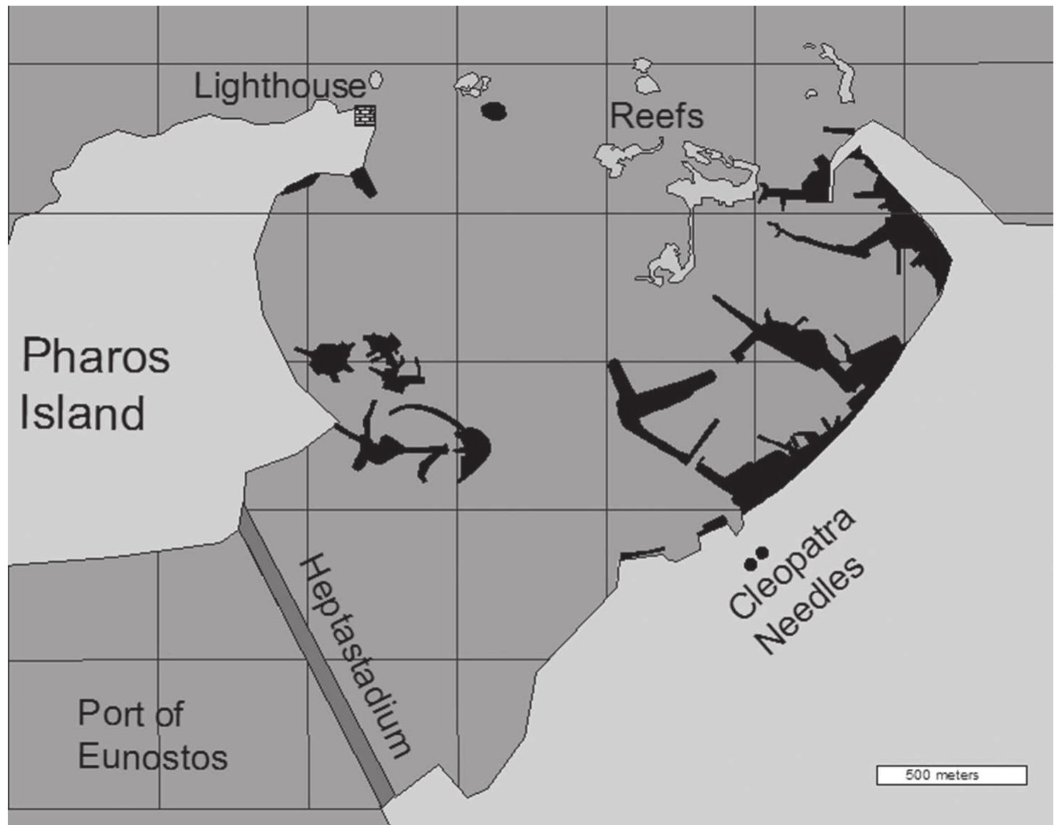 Alexandria was extremely obscure and based mainly on written sources. Despite relative abundance of such reports none of them (including even the most thorough description of Strabo) could be used for creating a reliable chart of port structures that had been disappeared under the waters of the Mediterranean approximately at the late IV AD. Today the application of the most modern archaeological technologies under water allows not only charting the remains of the visible ancient structures but also analyzing their construction peculiarities and gathering lots of valuable archaeological material. It should be pointed out that this data drastically changes the image of the ancient ports that existed in scientific literature only a couple of years ago.