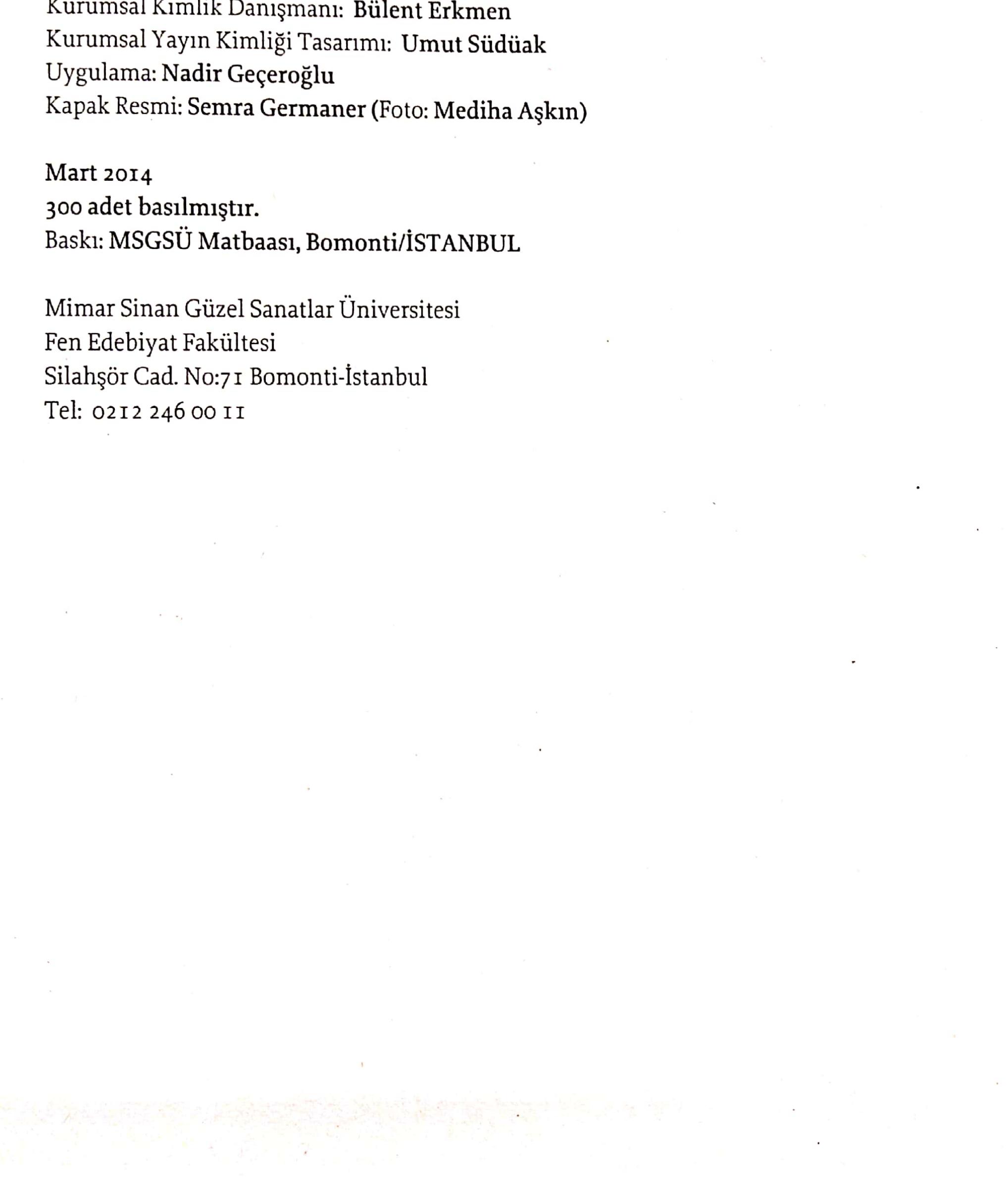 Mimar Sinan Güzel Sanatlar Üniversitesi, Fen Edebiyat Fakültesi Dergisi, Sayı 5, İstanbul, 2006