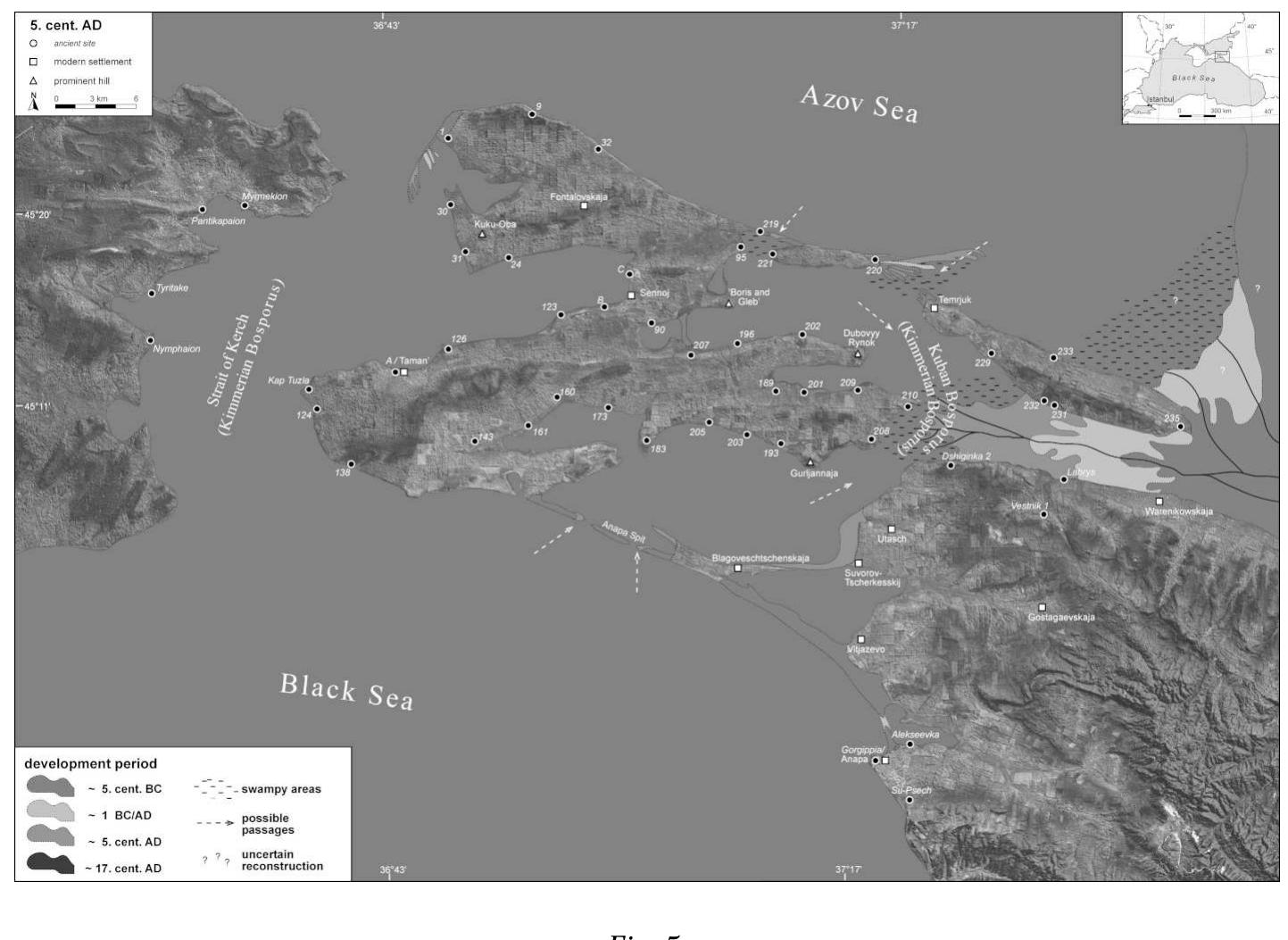 Following on from the geoarchaeological reconstruction of the ancient archipelago and channels of... more Following on from the geoarchaeological reconstruction of the ancient archipelago and channels of the Kerch Straits before the progradation of the Kuban Delta, this paper offers arguments for the identification of Coracanda with the “Kuban Bosporus”, of Korokondamè with Volna 1 and the southern part of the Taman Island, and of Korokondamitis with the Bugaz, Kyzyltash and Zukur Liman. These ancient names could go back to an Old Iranian description of the straits as a “throat, gorge”. They are coherent with other Greek and non-Greek toponyms in the region and could have influenced the local anchoring of the Cimmerian myth.