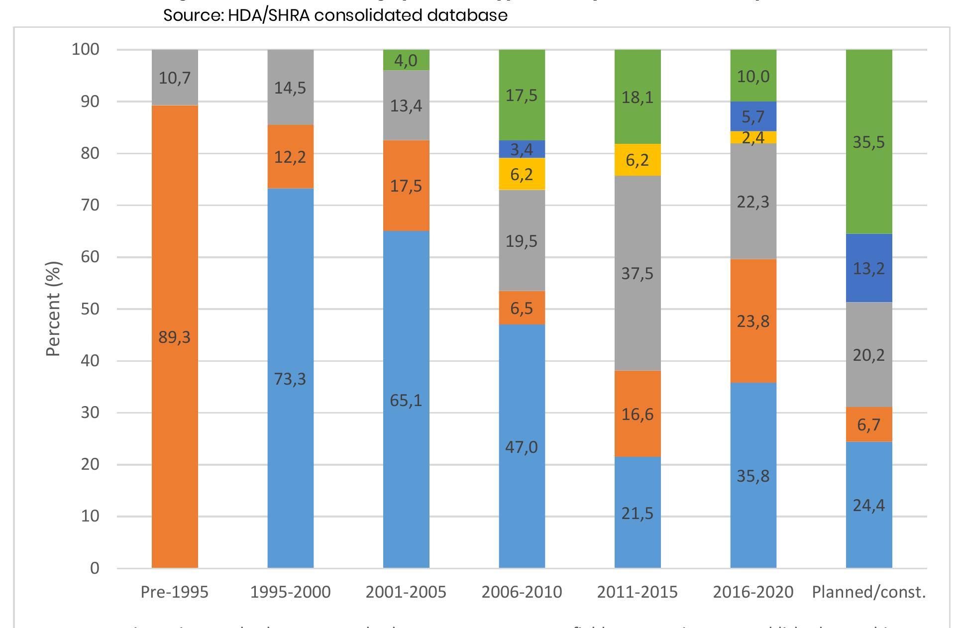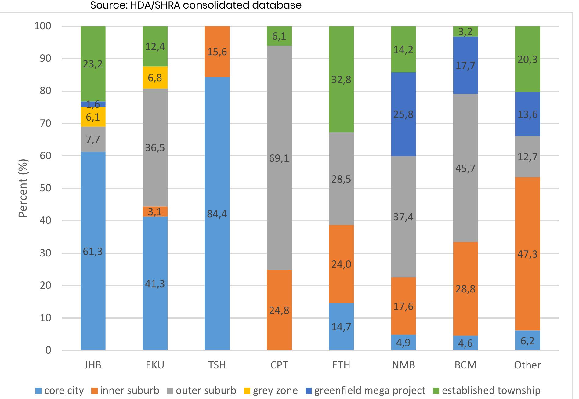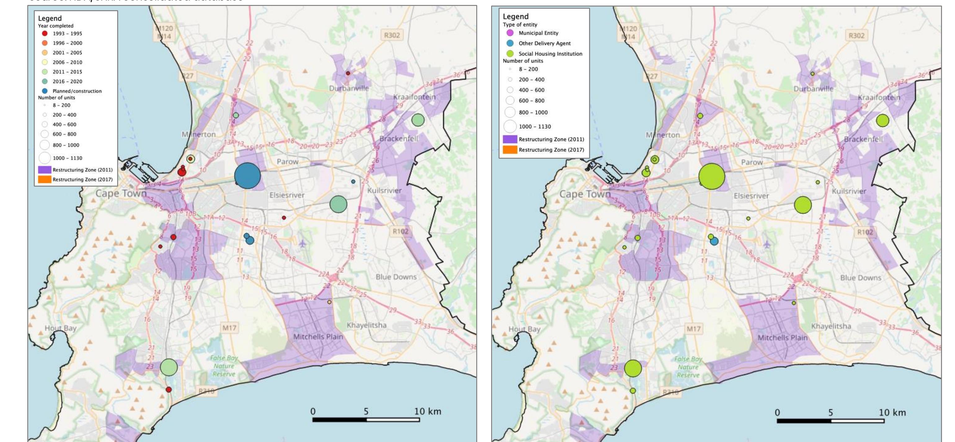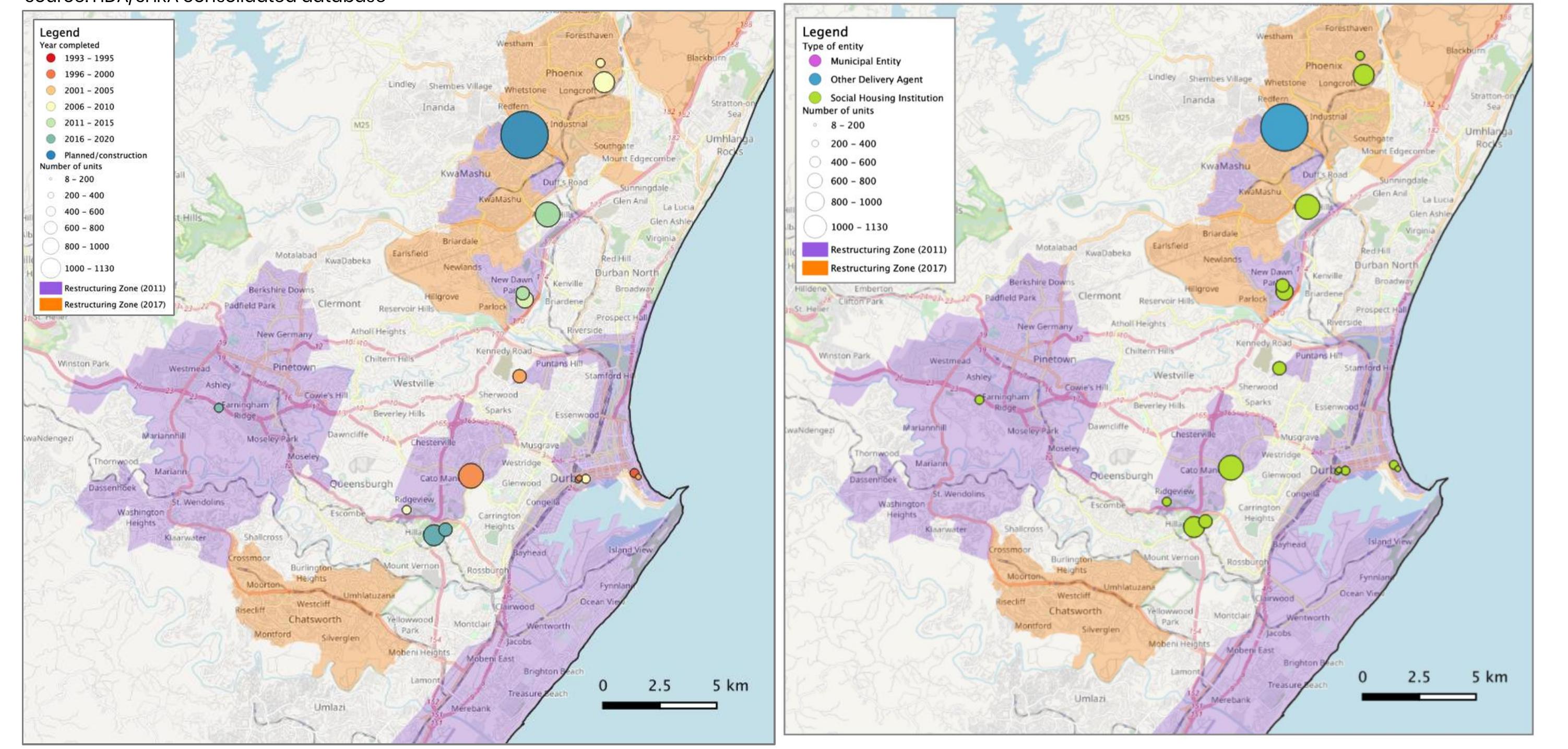 The paper maps the spatial distribution of all social housing projects built in South Africa’s seven largest cities since the 1990s. It reveals a steady ‘spatial drift’ of new projects from inner urban areas towards outlying areas. This contradicts the objectives of urban restructuring and