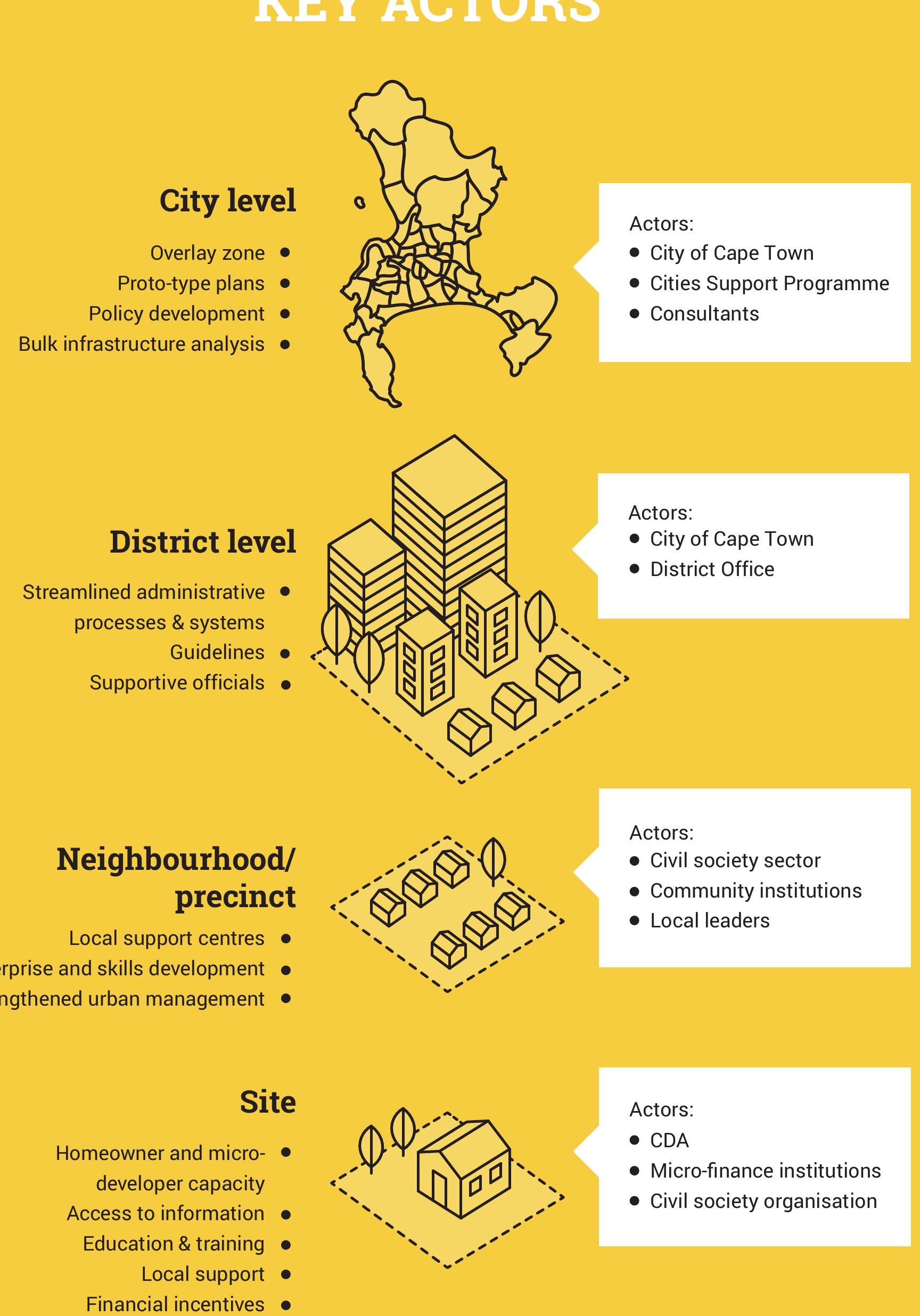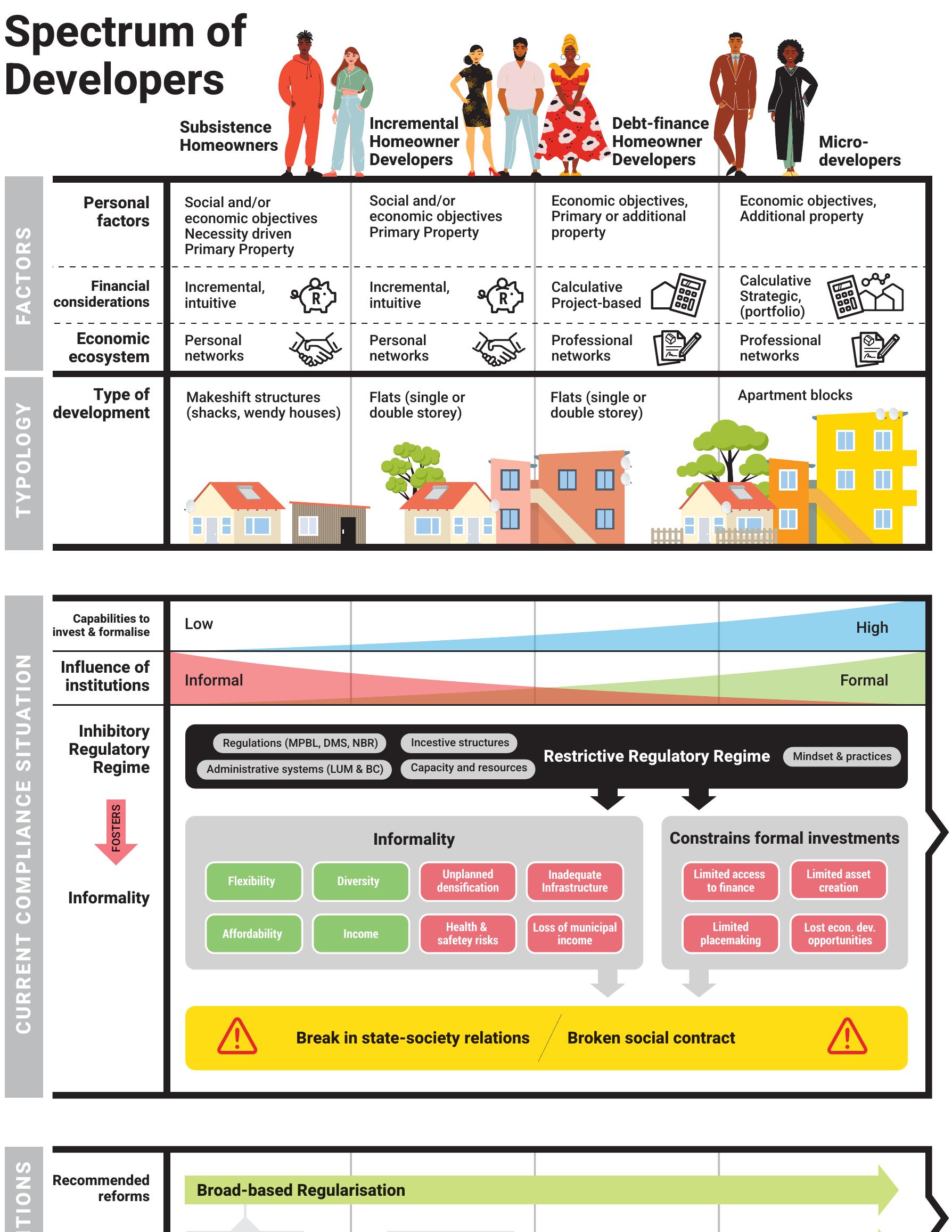 Small-scale Rental Housing ~ 01 GLOSSARY OF TERMS Backyard rental housing Rental housing located ... more Small-scale Rental Housing ~ 01 GLOSSARY OF TERMS Backyard rental housing Rental housing located on another property, usually government subsidised house or council housing, and typically lower-quality, semipermanent dwellings made of timber and iron/zinc sheets. Debt-financed homeowner developer Similar to incremental developers except that they obtain formal funding from a bank or micro-finance institution (MFI) that is tied to the property asset in some way. The MFI is often actively involved in the planning, construction and management of the rental units. Formalisation Under formalisation we refer to public and private efforts to promote full regulatory compliance for rental housing. Incremental homeowner developer Owner of property who typically constructs between one and six rental units on their property, or that of a close family member, using a mix of informal and formal financing, none of which is formally tied to the property. Their main motivation is to supplement their household income. Land value capture Land value capture refers to a concept that describes several land-based finance tools. The concept is rooted in the premise that public actions drive up real estate values, which are usually accrued by private landowners through no efforts of their own. Land value capture offers an array of policy tools and instruments that recover the publicly generated value increases. Micro-developers Micro-developers usually build multiple rental units in the form of medium-density apartment blocks, often on properties bought specifically for this purpose where the previous structures are demolished. Compared to homeowner developers, they invest larger amounts of funding, drawn together from various sources, as part of a growing property development portfolio. They are more entrepreneurial and driven more by the pursuit of profit and wealth. Overlay zone A zoning, in addition to the base zoning, stipulating the purposes for which land may be used and the development rules which may be more or less restrictive than the base zoning. Regularisation Under broad-based regularisation we refer to public and private awareness raising, training, skills development, knowledge sharing and local support to improve basic conditions within rental units, specifically regarding health and safety, structural integrity, encroachments and landlordtenant relations. Regulatory regime Regulatory regime refers to system of rules in which homeowners and developers operate. We use the term regulatory regime in a holistic sense to refer to formal (local) government regulations, procedures and frameworks but also bureaucratic norms, practices and capacities that influence small-scale rental housing. It includes the legislation and regulations governing small-scale rental flats, specifically land-use management and building regulations, but also the administrative systems and processes required to obtain regulatory approvals, the capacity of district offices and front-line officials to implement the regulations, their values, mindsets and the internal incentives that influence their everyday practices. Small-scale rental housing Backyard rental housing but specifically single and multi-storey brick and mortar rental units or flats .