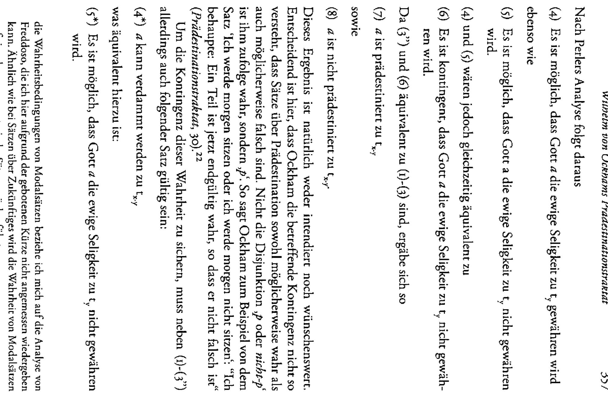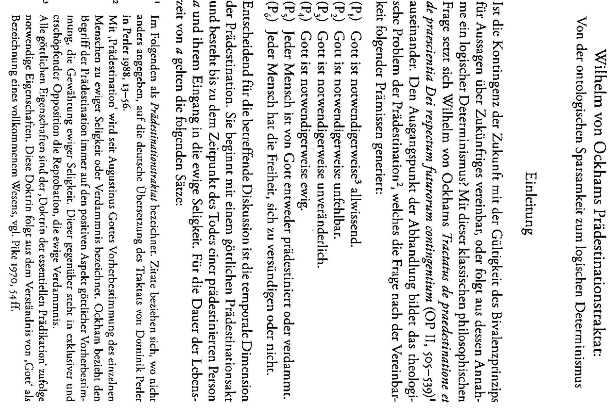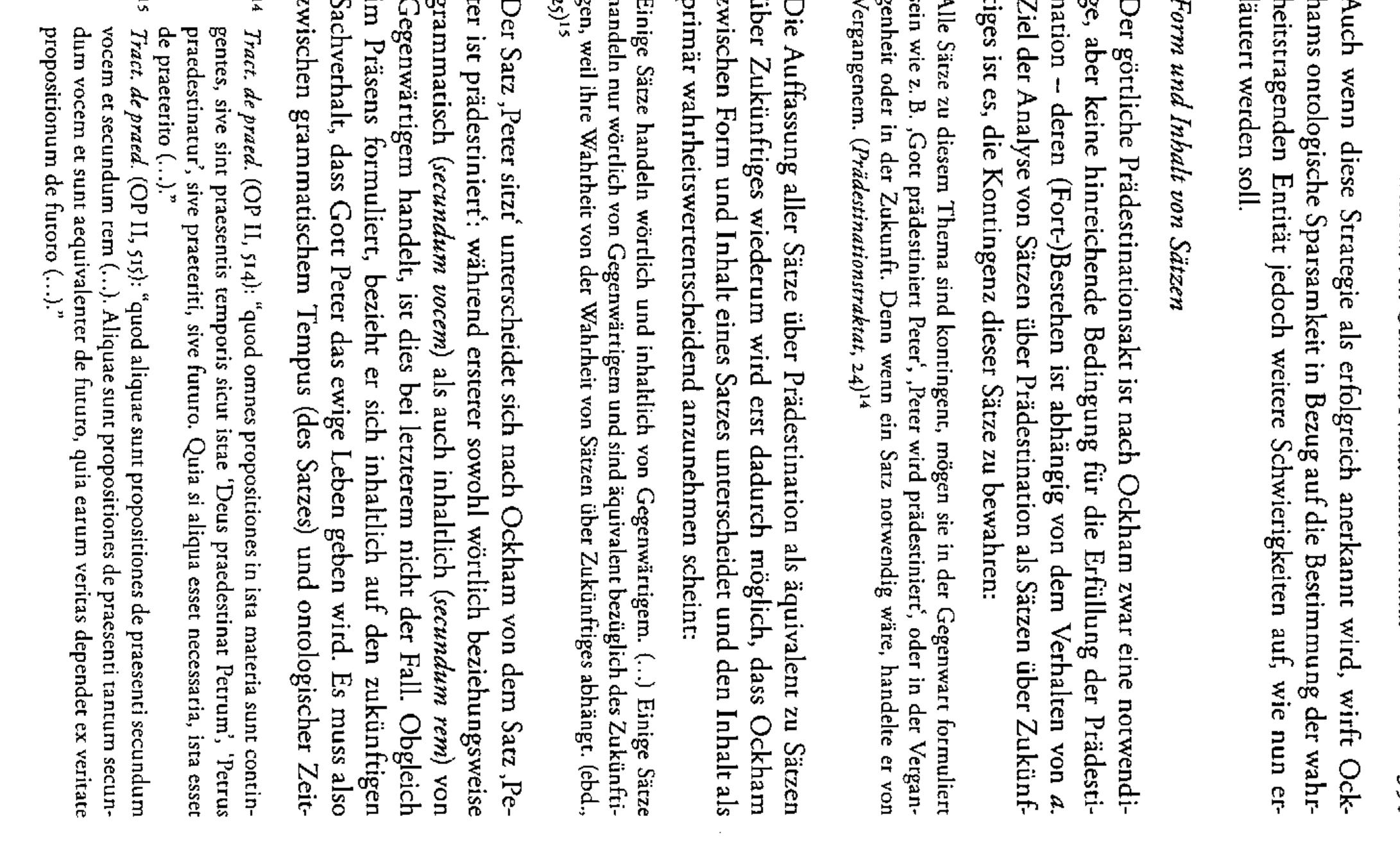 In his treatise on predestination, Ockham discusses the philosophical riddles caused by this Chri... more In his treatise on predestination, Ockham discusses the philosophical riddles caused by this Christian dogma as a specific case of the problem of logical determinism. Ockham does not succeed in solving this problem, which is due to his semantic notion of truth as well as to a missing differentiation between an ontological and logical interpretation of contingency. These points lead to a number of ambivalences in his argumentation, which suggest that Ockham has the conditions of a possible solution available but his ontological parsimony inhibits their coherent implementation.