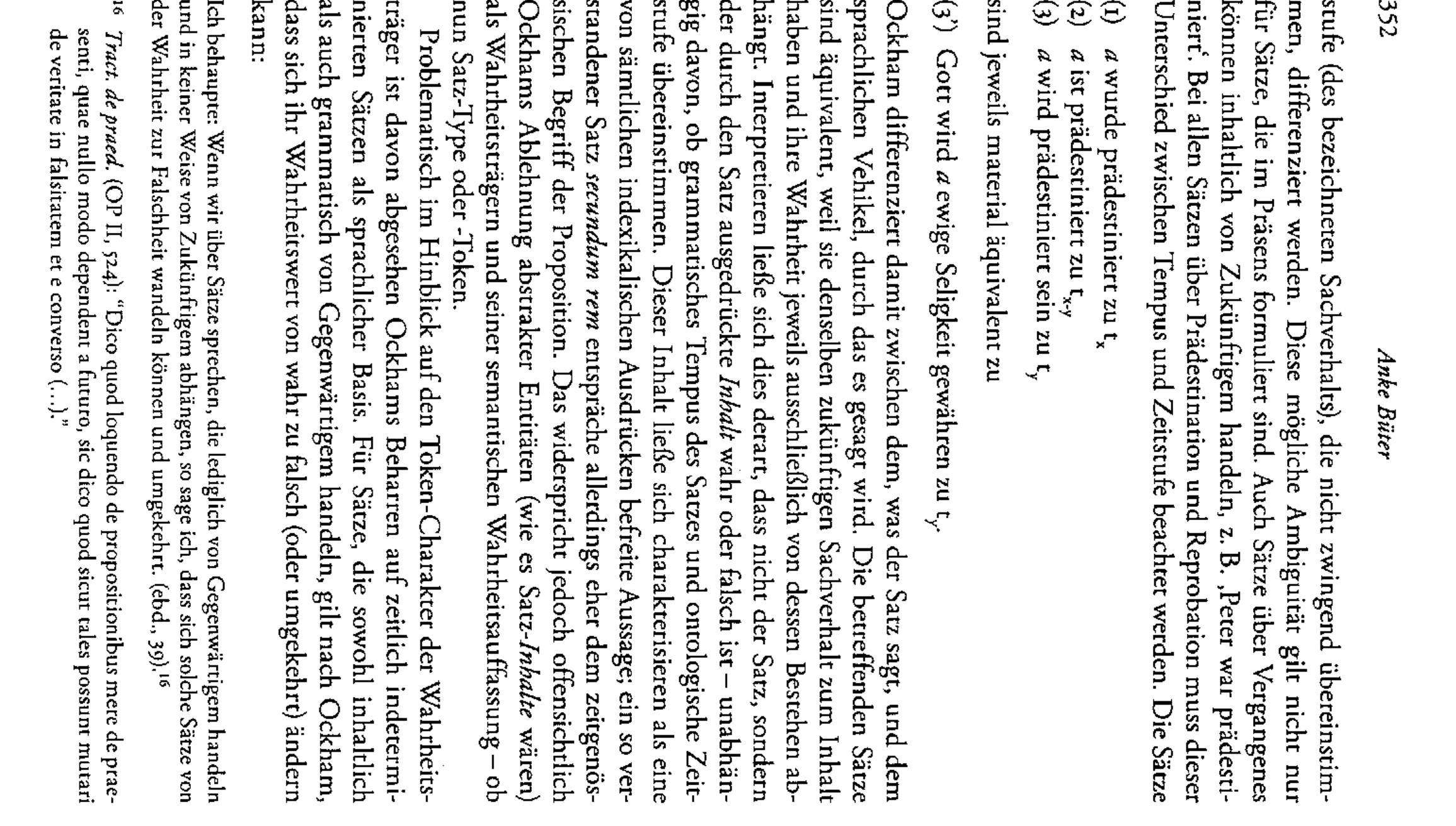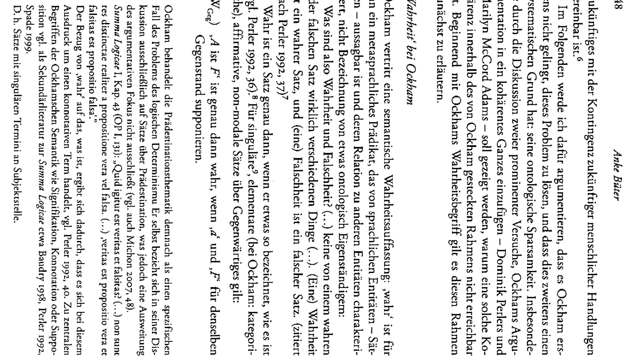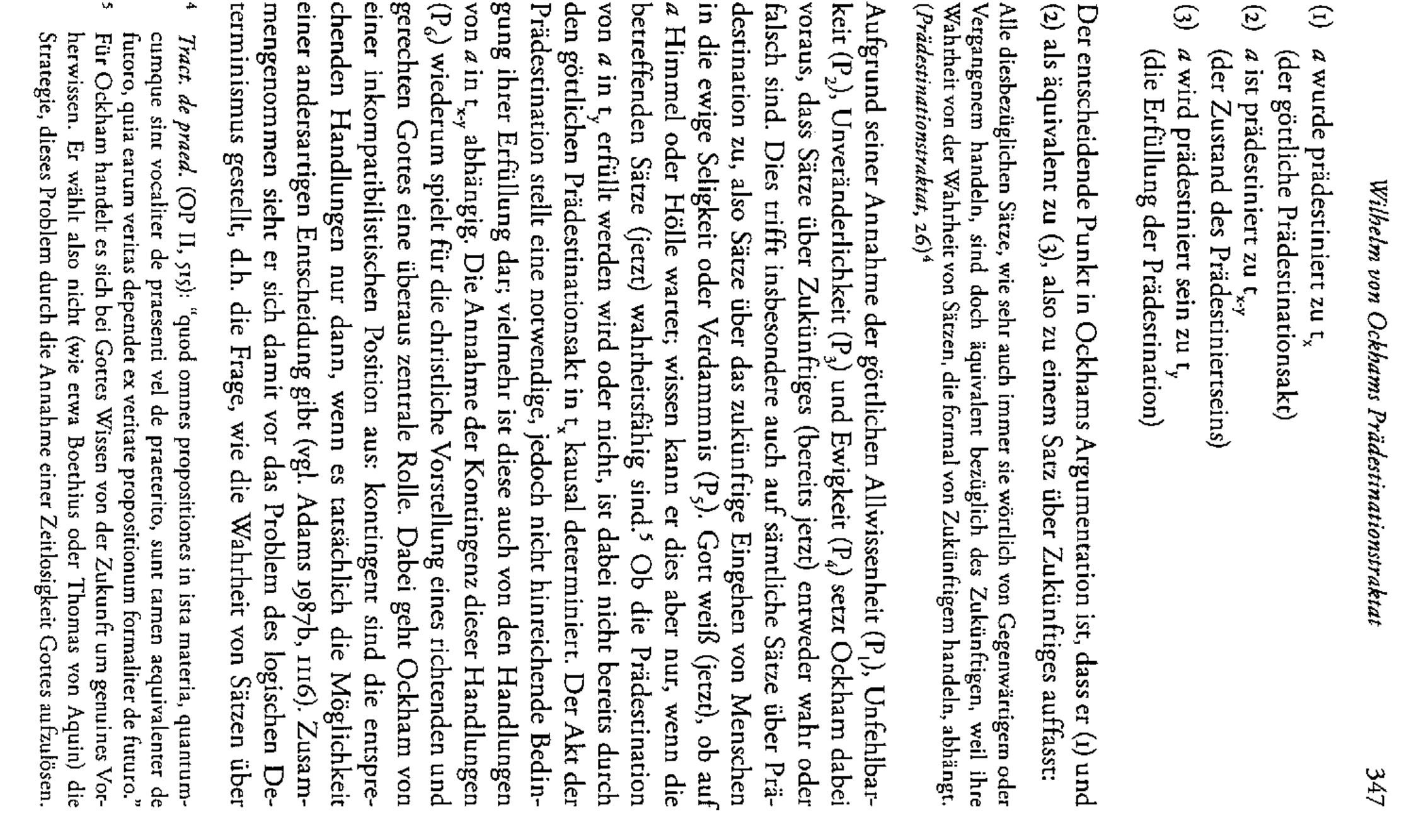 In his treatise on predestination, Ockham discusses the philosophical riddles caused by this Chri... more In his treatise on predestination, Ockham discusses the philosophical riddles caused by this Christian dogma as a specific case of the problem of logical determinism. Ockham does not succeed in solving this problem, which is due to his semantic notion of truth as well as to a missing differentiation between an ontological and logical interpretation of contingency. These points lead to a number of ambivalences in his argumentation, which suggest that Ockham has the conditions of a possible solution available but his ontological parsimony inhibits their coherent implementation.