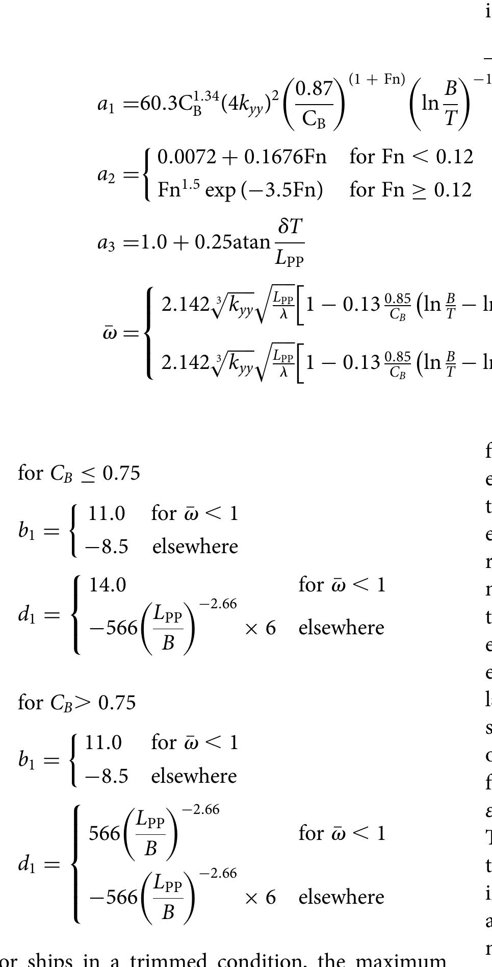 Abstract In this paper, we first conduct an extensive review of published experimental studies on... more Abstract In this paper, we first conduct an extensive review of published experimental studies on the added resistance of a ship in waves to establish a common database. The data was enhanced by unpublished data from joint industry projects. Using this newly established database consisting of about 3,000 data points for 130 ships of different type and size, we develop an empirical formula for approximating the added resistance in regular waves of arbitrary heading. For the added resistance due to diffraction effect, we updated Faltinsen et al.'s (1980) asymptotic approach and introduced several semi-empirical parameters to approximate the added resistance in waves of various headings. The limited ship draft effect is examined analytically, while the hull form effects are taken into account empirically by regression of available data. For the radiation effect, the maximum value of added resistance and the corresponding wavelength for the various wave headings are determined by regression analysis of the experimental data. The developed formula is verified by application to typical ship types and sizes, both in the design and ballast conditions, at both design and low speeds. An error analysis for the various tested scenarios shows that the performance of the developed formula is satisfactory.