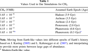 | CH4 (VMR) | Assumed Earth Epoch (Age) |