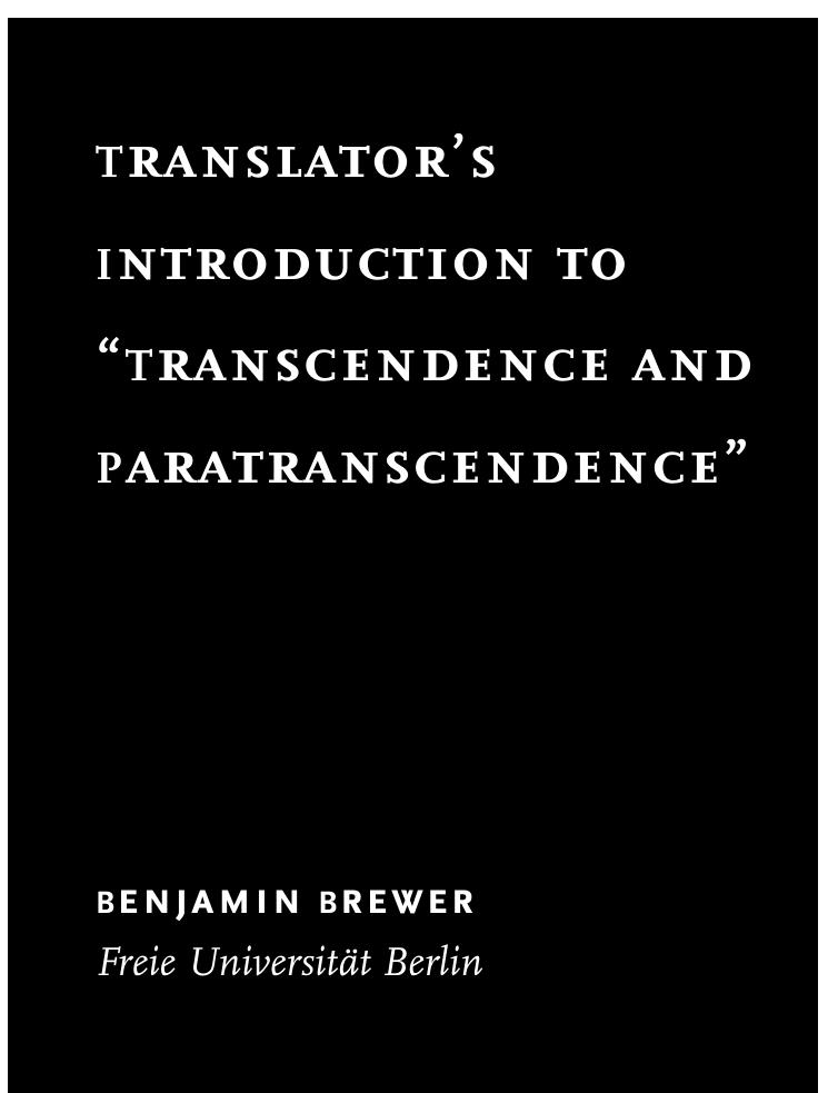 Please note that due to a hiccup in the publishing process, the translator's introduction and the... more Please note that due to a hiccup in the publishing process, the translator's introduction and the translation itself were published under a single table of contents item titled "Translator's Introduction to 'Transcendence and Paratranscendence.'" What is provided here is the translator's introduction alone.
