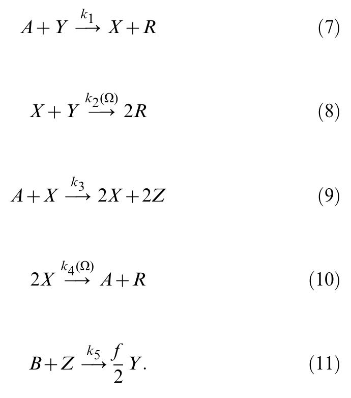 We present a method for mesoscopic, dynamic Monte Carlo simulations of pattern formation in excit... more We present a method for mesoscopic, dynamic Monte Carlo simulations of pattern formation in excitable reaction–diffusion systems. Using a two-level parallelization approach, our simulations cover the whole range of the parameter space, from the noise-dominated low-particle number regime to the quasi-deterministic high-particle number limit. Three qualitatively different case studies are performed that stand exemplary for the wide variety of excitable systems. We present mesoscopic stochastic simulations of the Gray-Scott model, of a simplified model for intracellular Ca2+ oscillations and, for the first time, of the Oregonator model. We achieve simulations with up to 10^10 particles. The software and the model files are freely available and researchers can use the models to reproduce our results or adapt and refine them for further exploration