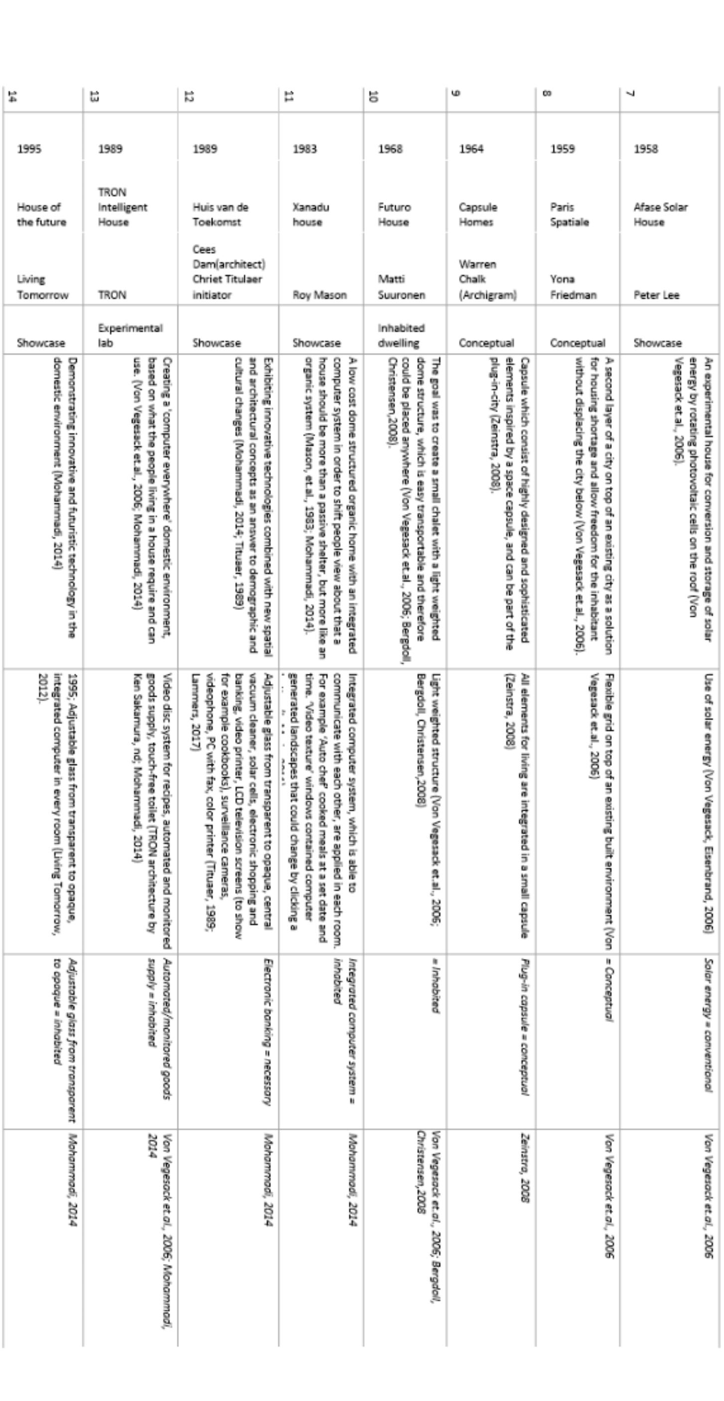 based on their following factors: ‘date’, ‘typology’, ‘goal’, 'initiator/designer' and 'prominent technological