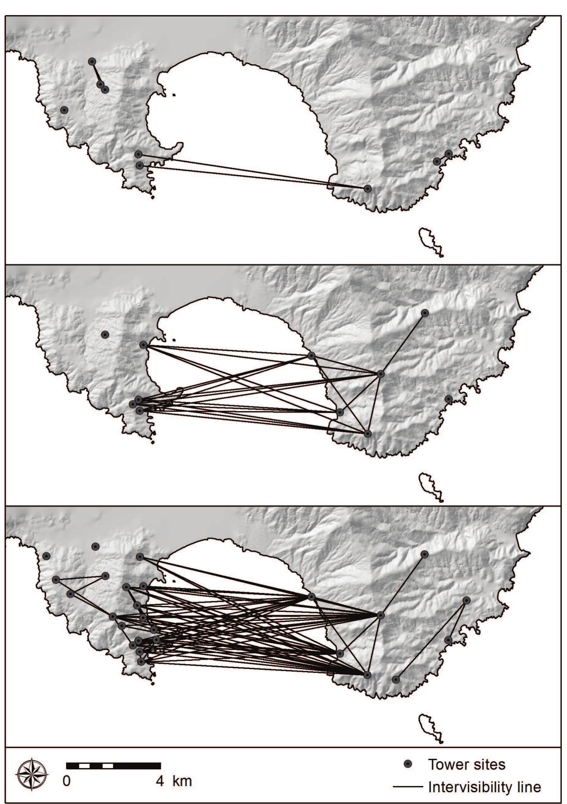 This paper builds upon recent research on the towers of the Paximadi peninsula (Seifried and Parkinson, forthcoming, Hesperia), which is located just west of ancient Karystos. New data from the eastern peninsula, including the site of Kastri, is included in order to gain a more comprehensive view of the role that Karystos and its hinterland played in Aegean maritime affairs. Geographic information systems (GIS) software is employed to measure the physical and visual connections between contemporaneous towers, non-tower sites, and other identifiable features within the region. Specifically, line-of-sight, viewshed, and cost-path analyses are used to identify the interconnections that may have existed during the Classical, Hellenistic, and Roman periods. The interspatial patterns that emerge from these results have important implications for our understanding of Karystos as an Athenian cleruchy, as well as our interpretation of Euboea's capacity in social and political contexts beyond her shores.