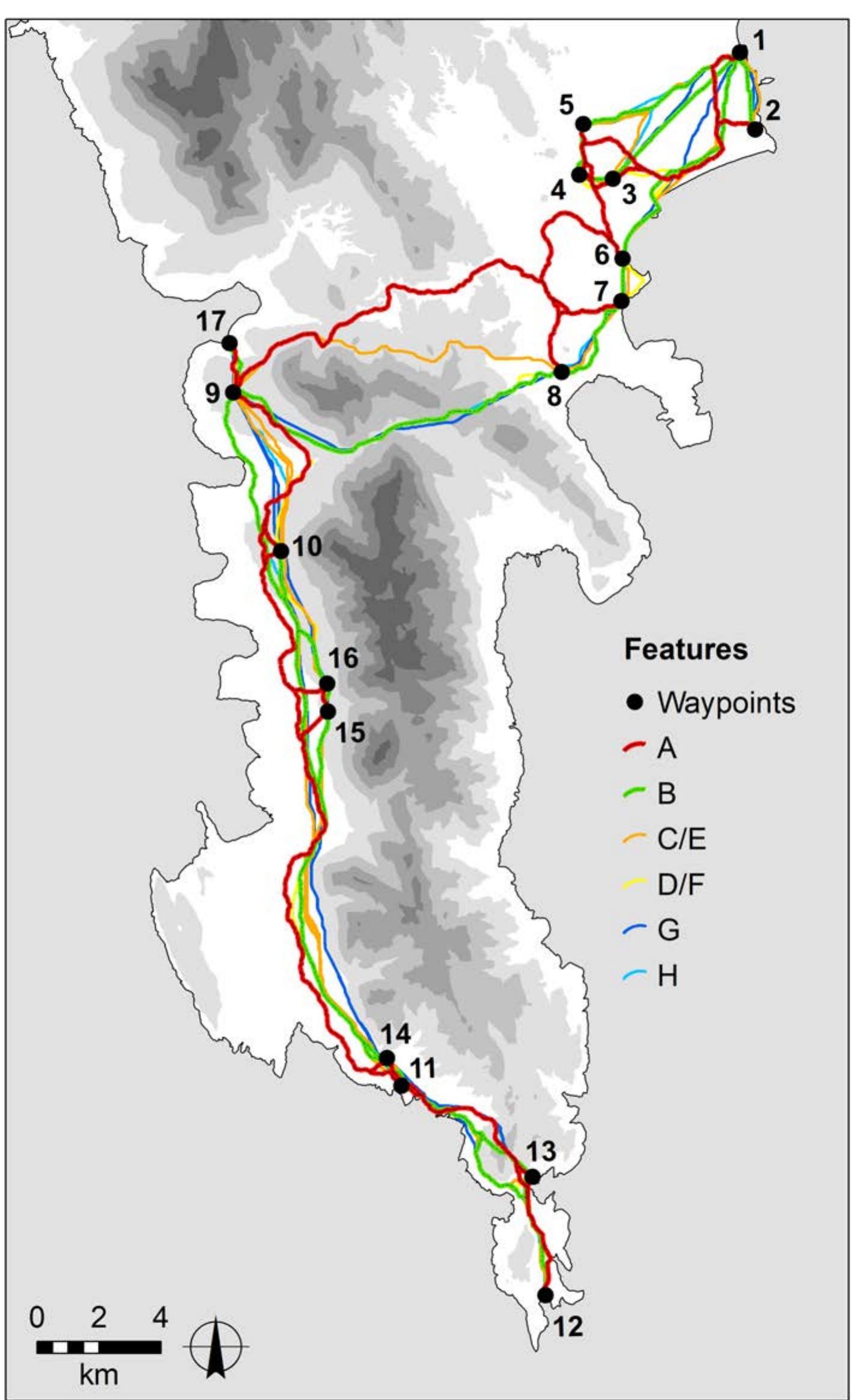 GIS data created by mapping Patrick (Paddy) and Joan Leigh Fermor's journey through the Mani ... more GIS data created by mapping Patrick (Paddy) and Joan Leigh Fermor's journey through the Mani peninsula in 1951. The zip file contains 6 layers (in GeoJSON format) that can be used to display least-cost models of portions of their route, the hikes we carried out to recreate them, and our final interpretation of their route from start to finish.