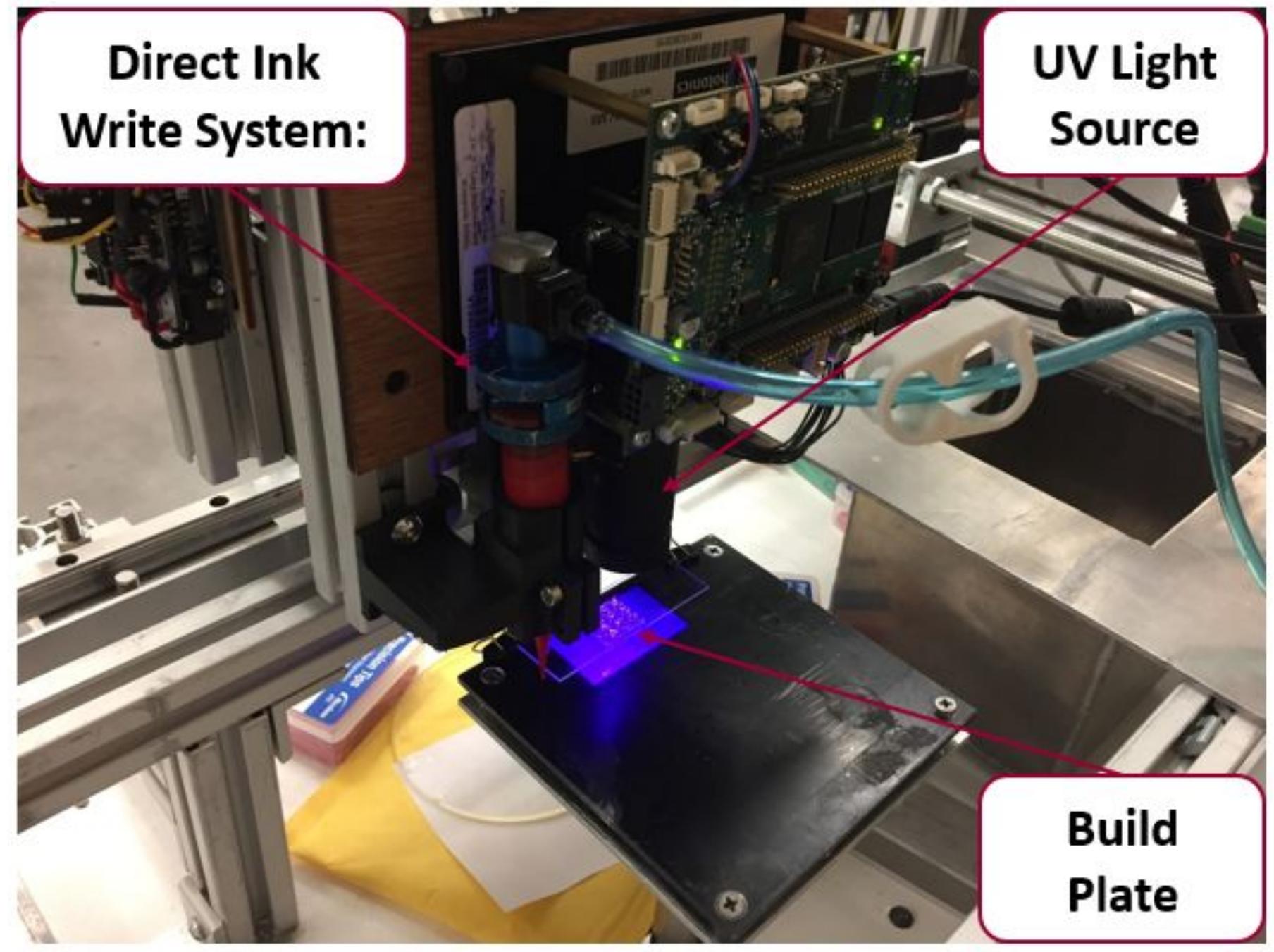 All-aromatic polyimides have degradation temperatures above 500 °C, excellent mechanical strength... more All-aromatic polyimides have degradation temperatures above 500 °C, excellent mechanical strength, and chemical resistance, and are thus ideal polymers for high-temperature applications. However, their all-aromatic structure impedes additive manufacturing (AM) because of the lack of melt processability and insolubility in organic solvents. Recently, our group demonstrated the design of UV-curable polyamic acids (PAA), the precursor of polyimides, to enable their processing using vat photopolymerization AM. This work leverages our previous synthetic strategy and combines it with the high solution viscosity of nonisolated PAA to yield suitable UV-curable inks for UV-assisted direct ink write (UV-DIW). UV-DIW enabled the design of complex three-dimensional structures comprising of thin features, such as truss structures. Dynamic mechanical analysis of printed and imidized specimens confirmed the thermomechanical properties typical of all-aromatic polyimides, showing a storage modulus a...