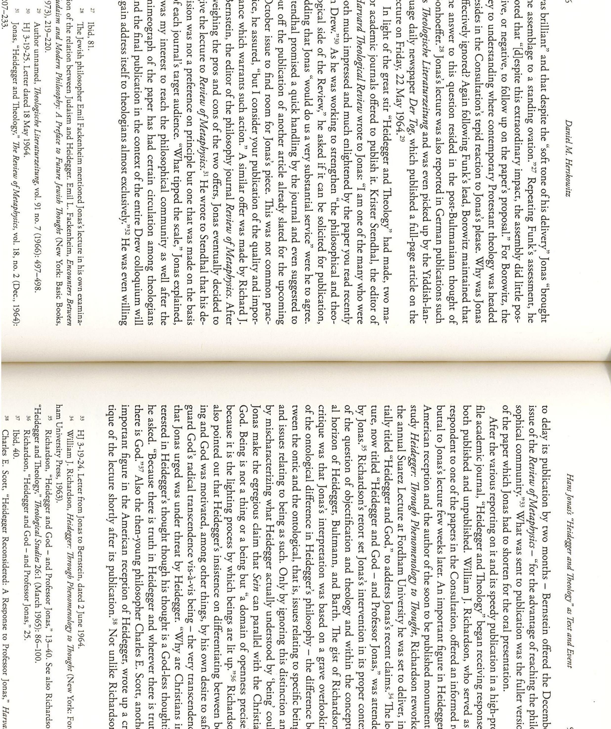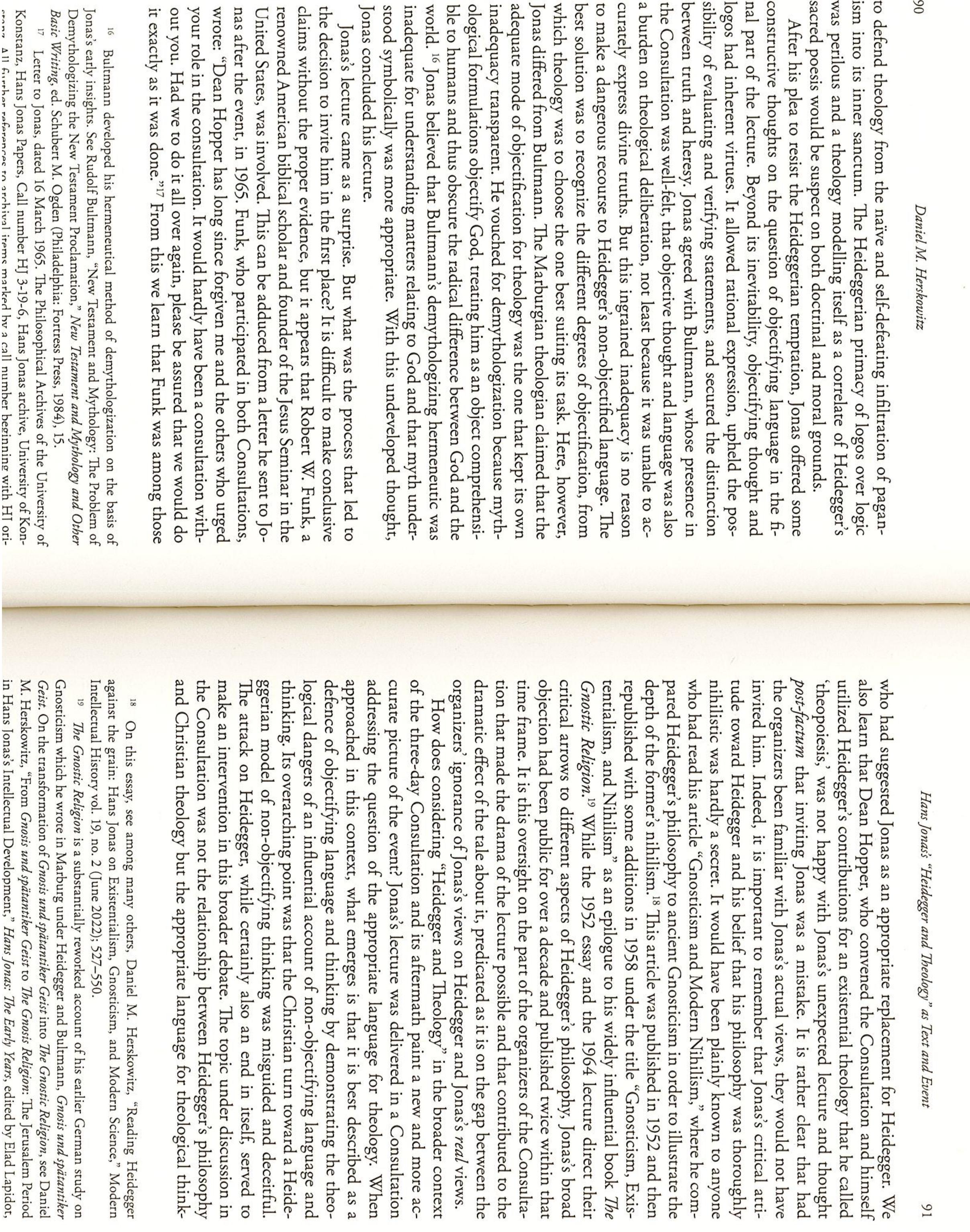 This article argues that the link Hans Jonas drew between Martin Heidegger’s philosophy and Gnost... more This article argues that the link Hans Jonas drew between Martin Heidegger’s philosophy and Gnosticism cannot be properly understood without taking into consideration his philosophical interpretation of modern science. It claims that Jonas saw Heideggerian existentialism not as a modern instantiation of Gnosticism but as a specific experiential reaction to the new cosmological outlook that emerged from the seventeenth-century scientific revolution, which negated the conceptual world that made Gnosticism possible. Jonas’ s interpretation is against the grain”: by claiming that Heidegger’s thought is a product of the reduction of nature to measurable, manipulatable, and calculable extension governing the modern scientific mind, Jonas attributed to Heidegger the very flaws Heidegger critiqued in others. It is further claimed that Jonas’s original contribution to Heidegger’s reception history is not in proposing the link to Gnosticism but in reading him as the philosophical outcome of the instrumental reasoning of modern science.