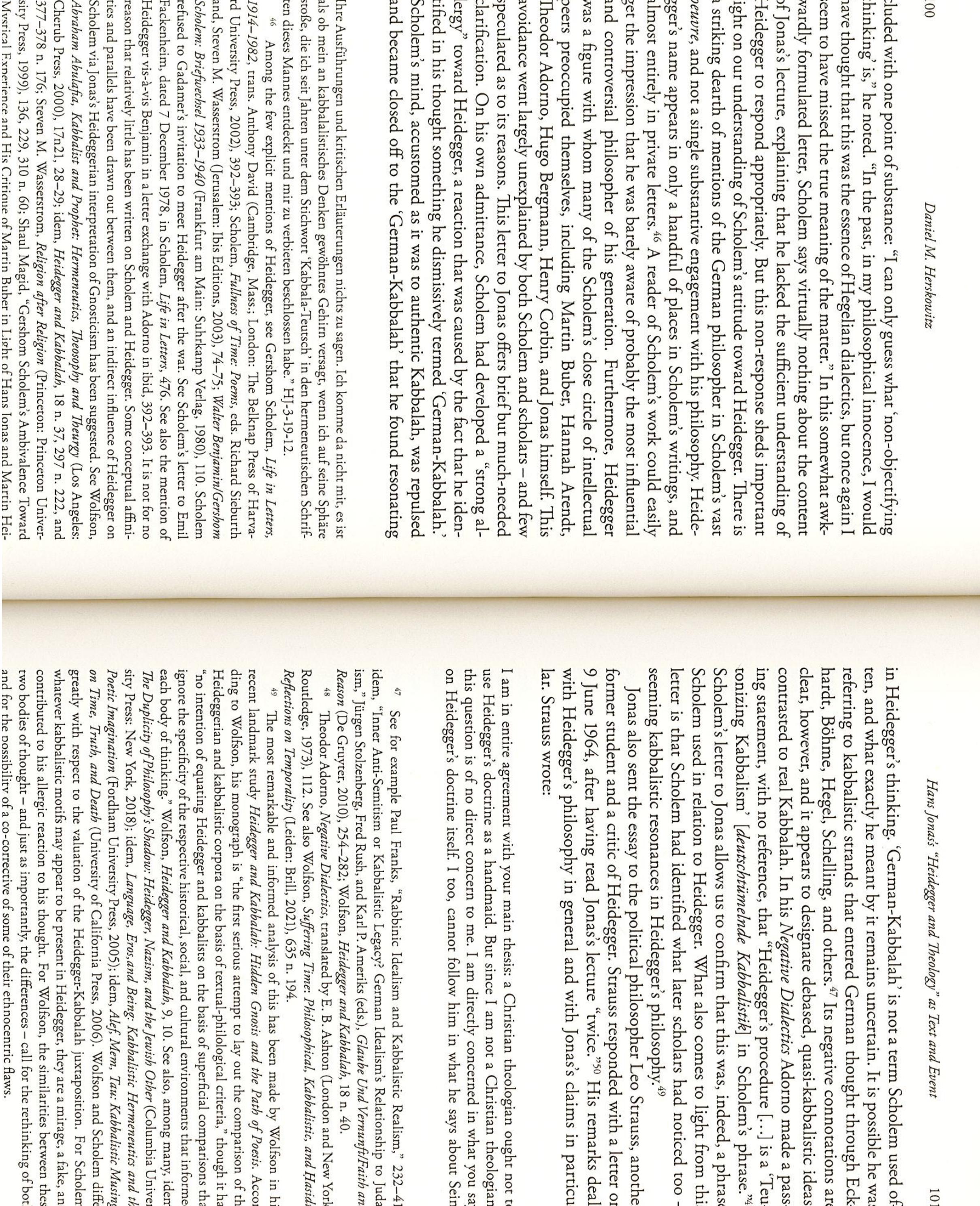 This article discusses three contemporary cases of Jewish engagements with Martin Heidegger, thre... more This article discusses three contemporary cases of Jewish engagements with Martin Heidegger, three examples of ‘thinking with antisemites’ for the sake of Jewish thought. Neither ignoring the ever increasing ‘proofs’ of his disrepute nor making it the alpha and omega of his philosophy, they take Heidegger as a crucial interlocutor for contemporary Jewish thought – not despite but because of his antisemitism. It argues that these three cases provide us with three models for approaching Heidegger and Judaism together and for constructively ‘thinking with antisemites’: through, with, and against. The first model can be found in the work of Elliot R. Wolfson, the second in the work of Elad Lapidot, and the third in the work of Michael Chighel. It further demonstrates that in each case Heidegger is affiliated with a particular rendition of a biblical figure that encapsulates their respective understanding of the Judaism-Heidegger relationship and serves as a model and justification for thinking with antisemites. In Wolfson and Chighel, this figure is Balaam, the Moabite biblical prophet, and in Lapidot, it is Nebuzaradan, the Babylonian commander in charge of the destruction of the first Temple.