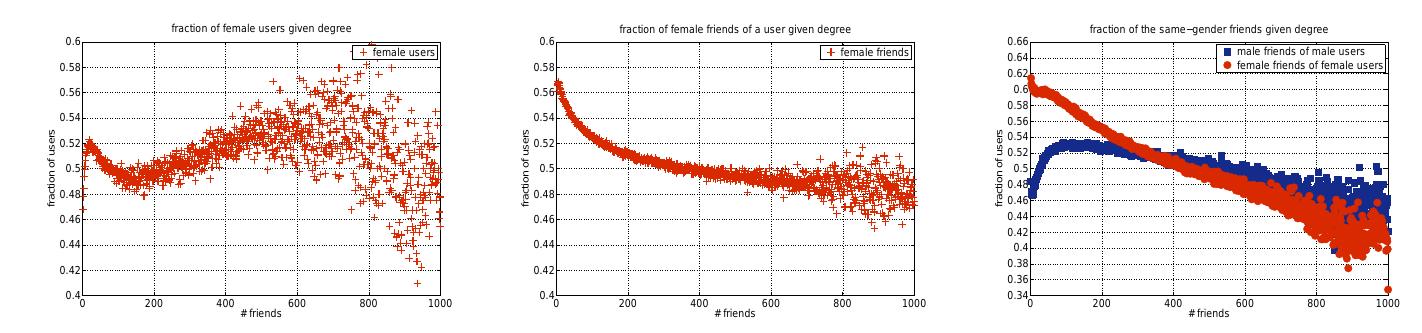 Gender differences in human social and communication behavior have long been observed in various ... more Gender differences in human social and communication behavior have long been observed in various contexts. This study investigates such differences in the case of online social networking. We find a general tendency towards gender homophily, more marked for women, however users having a large circle of friends tend to have more connections with users of the opposite gender. We also inspect the temporal sequences of adding new friends and find that females are much more likely to connect with other females as their initial friends. Through studying triangle motifs broken down by gender we detect a marked tendency of users to gender segregation, i.e. to form single gender groups; this phenomenon is more accentuated for male users.