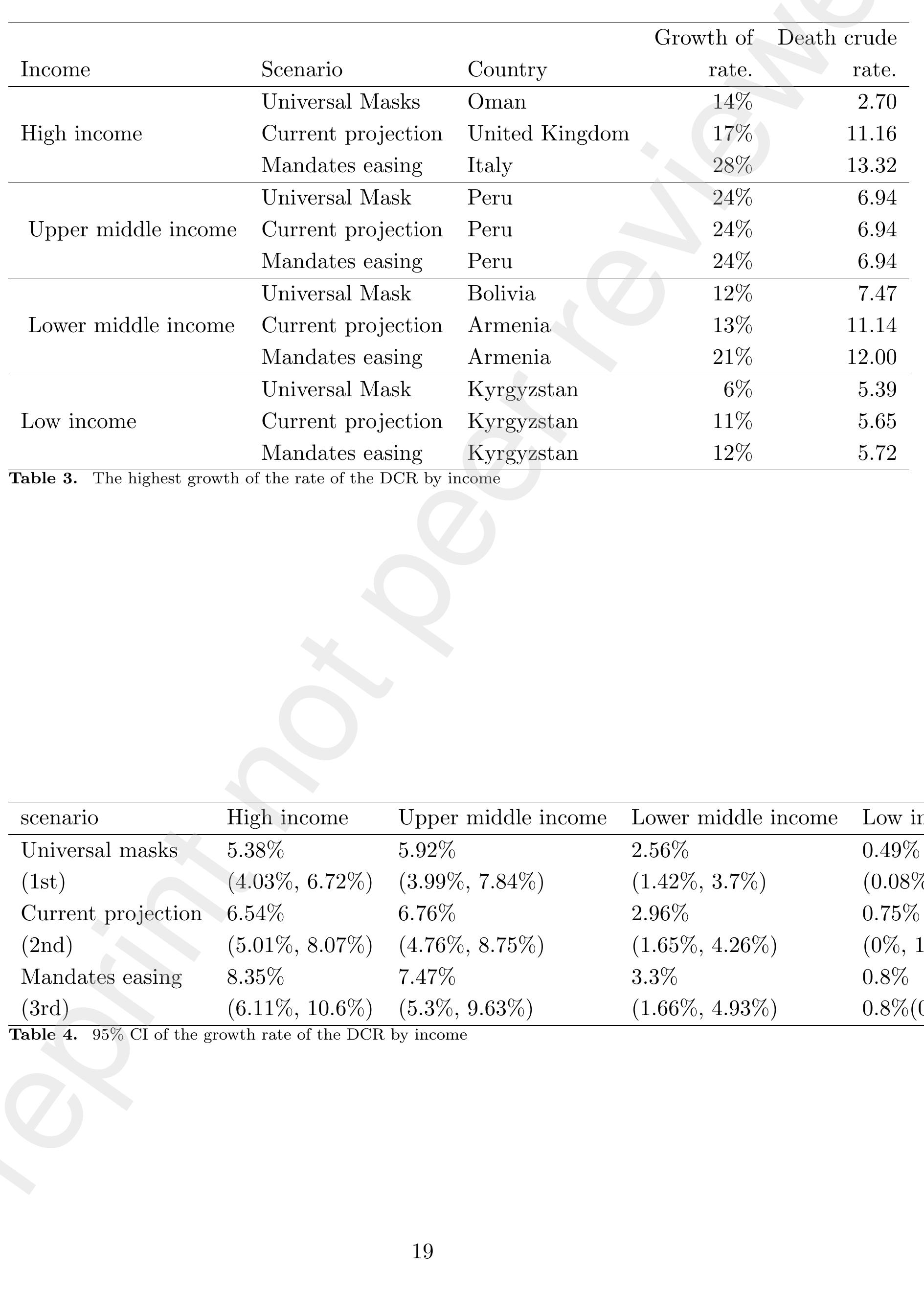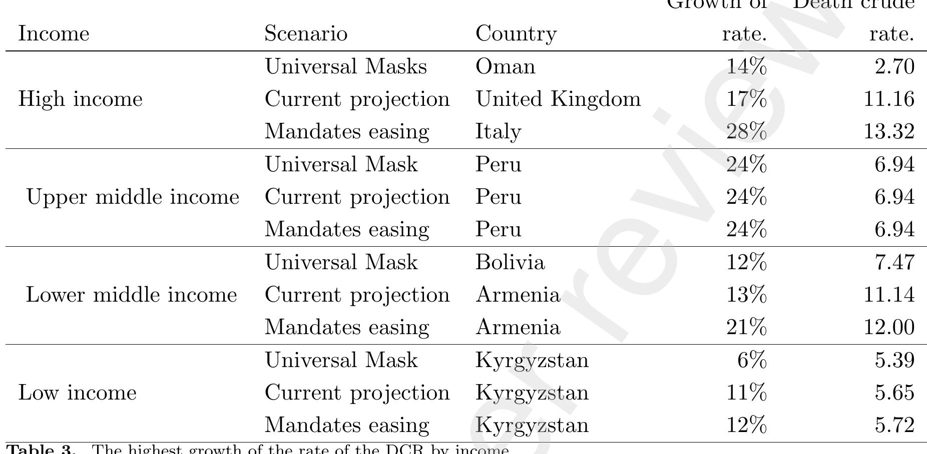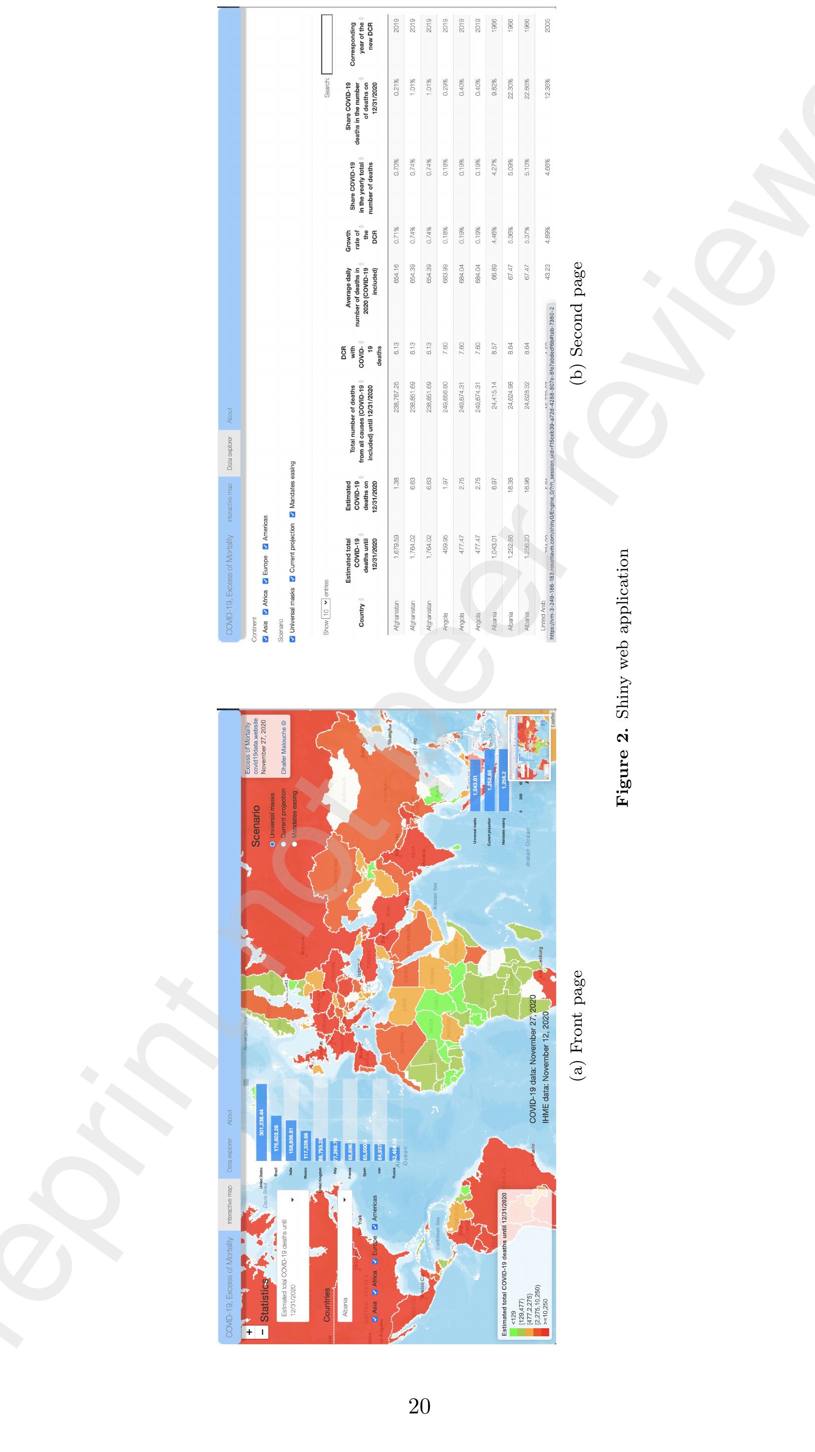 In this paper, we aim to estimate the excess of mortality associated with the severe acute respir... more In this paper, we aim to estimate the excess of mortality associated with the severe acute respiratory syndrome coronavirus 2 (SARS-CoV-2/COVID-19) pandemic. For this analysis, we merged population data and deaths number provided by the World Bank database and the projections of COVID-19 deaths of 151 countries published by the Institute for Health Metrics and Evaluation (IHME). These projections are computed using a deterministic SEIR model according to the effects of non-pharmaceutical interventions. We had predicted on 12/31/2020 the new death crude rate (DCR) associated with COVID-19, its growth rate, the share of this cause of deaths in the yearly total number of deaths, and in the daily number of deaths on 12/31/2020. Excess of mortality (vs baseline growth of DCR) is varying markedly across countries. Regardless of the Scenario, Peru would be the country with the highest increase in its DCR. Many European countries, like Belgium, Italy, United Kingdom would also know a significant increase in their DCR. Tunisia would have the highest in Africa regardless of the scenario. Since the data used for this paper is dynamic and regularly updated, we had built a Shiny web application to keep the results of this paper up to date.