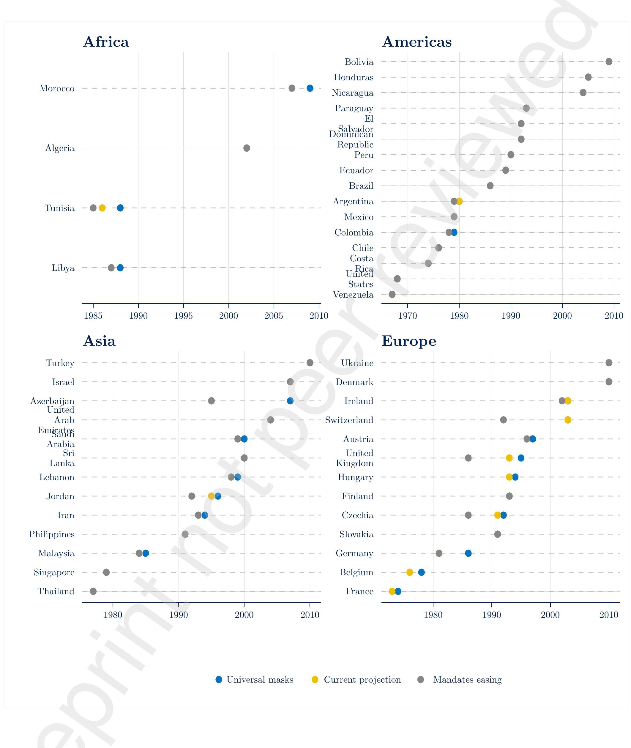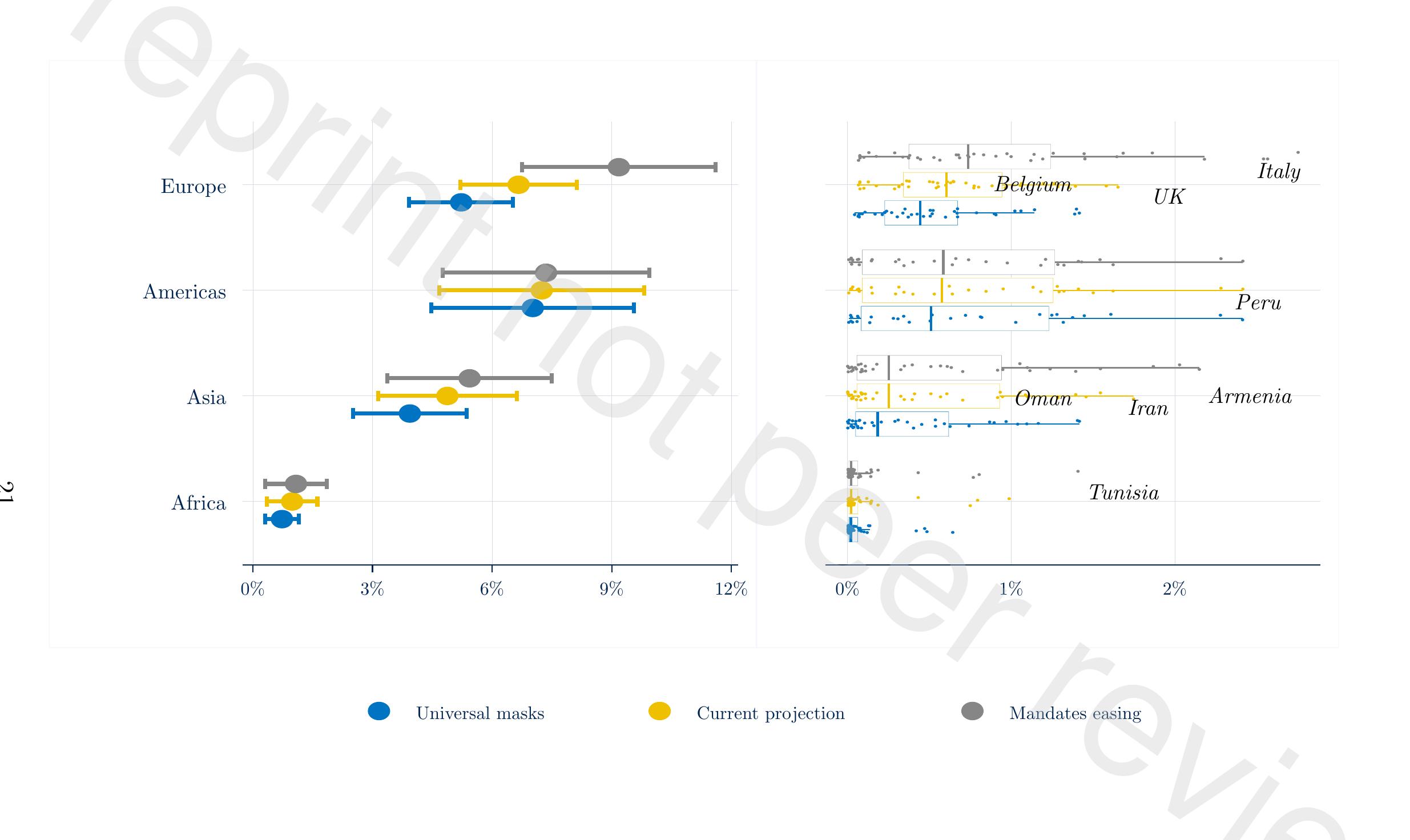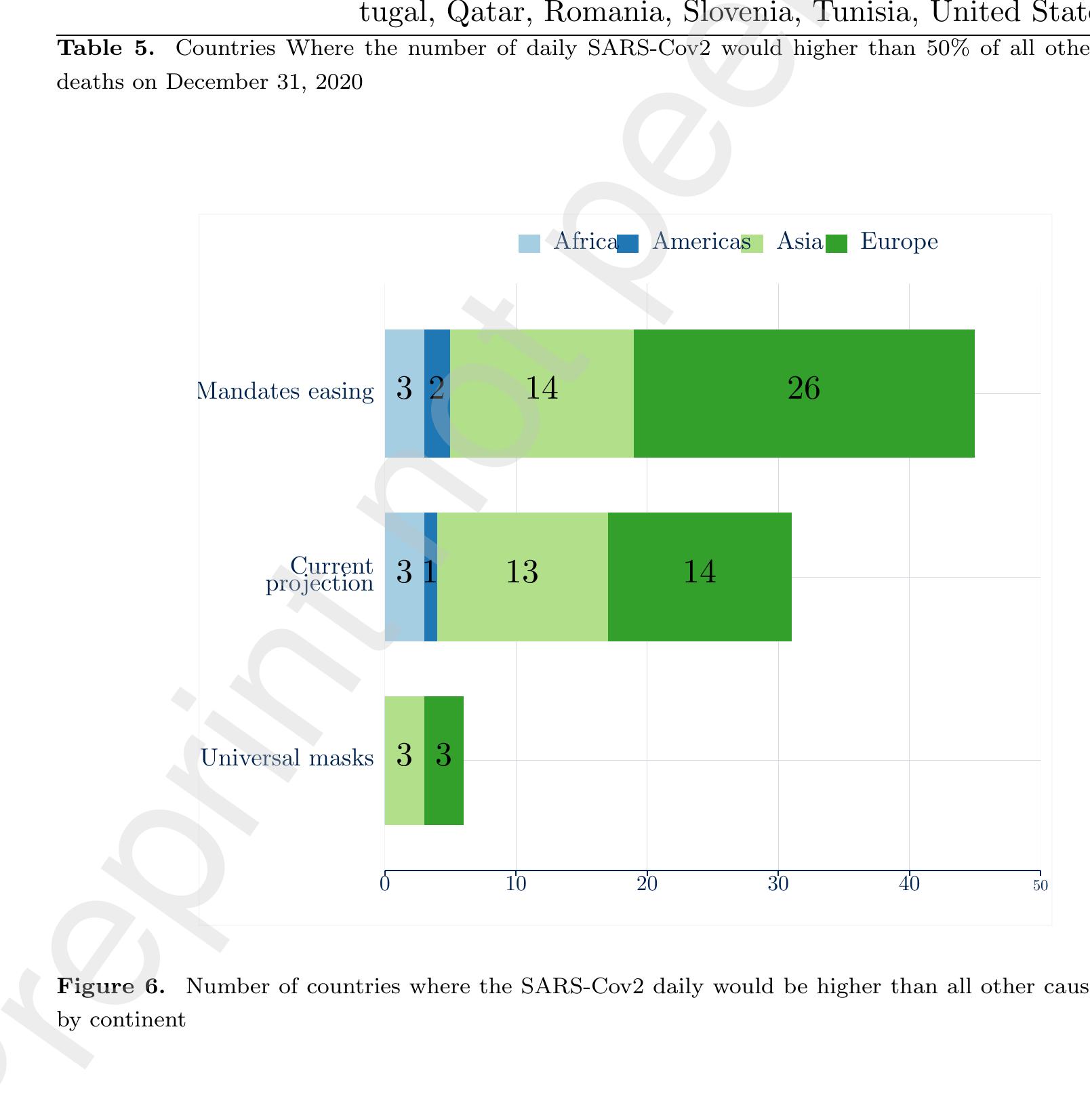 In this paper, we aim to estimate the excess of mortality associated with the severe acute respir... more In this paper, we aim to estimate the excess of mortality associated with the severe acute respiratory syndrome coronavirus 2 (SARS-CoV-2/COVID-19) pandemic. For this analysis, we merged population data and deaths number provided by the World Bank database and the projections of COVID-19 deaths of 151 countries published by the Institute for Health Metrics and Evaluation (IHME). These projections are computed using a deterministic SEIR model according to the effects of non-pharmaceutical interventions. We had predicted on 12/31/2020 the new death crude rate (DCR) associated with COVID-19, its growth rate, the share of this cause of deaths in the yearly total number of deaths, and in the daily number of deaths on 12/31/2020. Excess of mortality (vs baseline growth of DCR) is varying markedly across countries. Regardless of the Scenario, Peru would be the country with the highest increase in its DCR. Many European countries, like Belgium, Italy, United Kingdom would also know a significant increase in their DCR. Tunisia would have the highest in Africa regardless of the scenario. Since the data used for this paper is dynamic and regularly updated, we had built a Shiny web application to keep the results of this paper up to date.