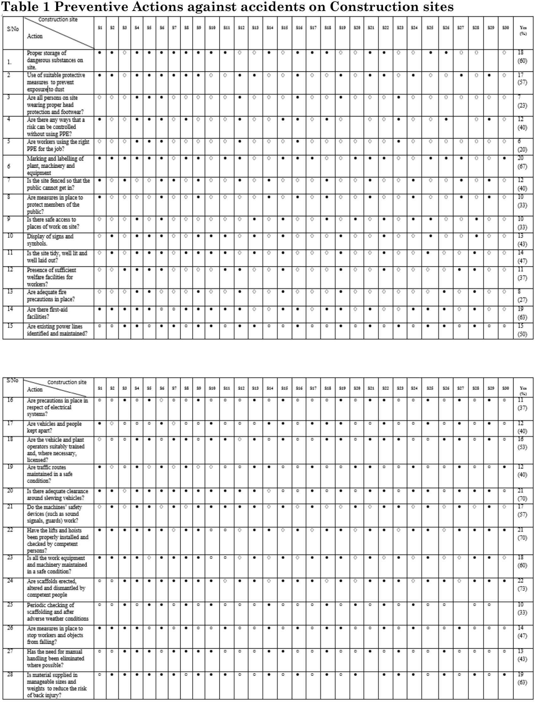 Globally, construction industry has poor safety records indicating that, construction workers are... more Globally, construction industry has poor safety records indicating that, construction workers are three times more likely to be killed and twice as likely to be injured as workers in other occupations. The costs of these accidents which usually amount to considerable share of the contract price are usually borne by the sponsors of the projects. Many of such accidents in the Nigerian construction industry could be attributed to poor safety measures resulting from weak regulations and low level of compliances. This study attempts to investigate the implementation of accident preventive actions on some selected construction sites based on requirements compiled by the European Agency for Safety and Health at work. Data for analysis were obtained through field observations and direct interviews of operatives and personnel from the selected sites in the six geographical zones of Nigeria via purposive sampling technique. Descriptive statistics was used with the aid of Origin 5.0 software for windows for analysis. Results of the study indicate an average compliance of 45% to the preventive actions by the sites investigated. Two construction sites had the highest percentage of compliance of 71% while the lowest compliance of 17.9% was recorded on one construction site. These poor results could be attributed to the low level of awareness among stakeholders, non existence and/or weak regulations, poor compliance and poor health and safety plans and programmes. It is recommended that effective health and safety standards and guidelines be enforced to reduce accidents on construction sites with the view to ensuring safe working conditions.