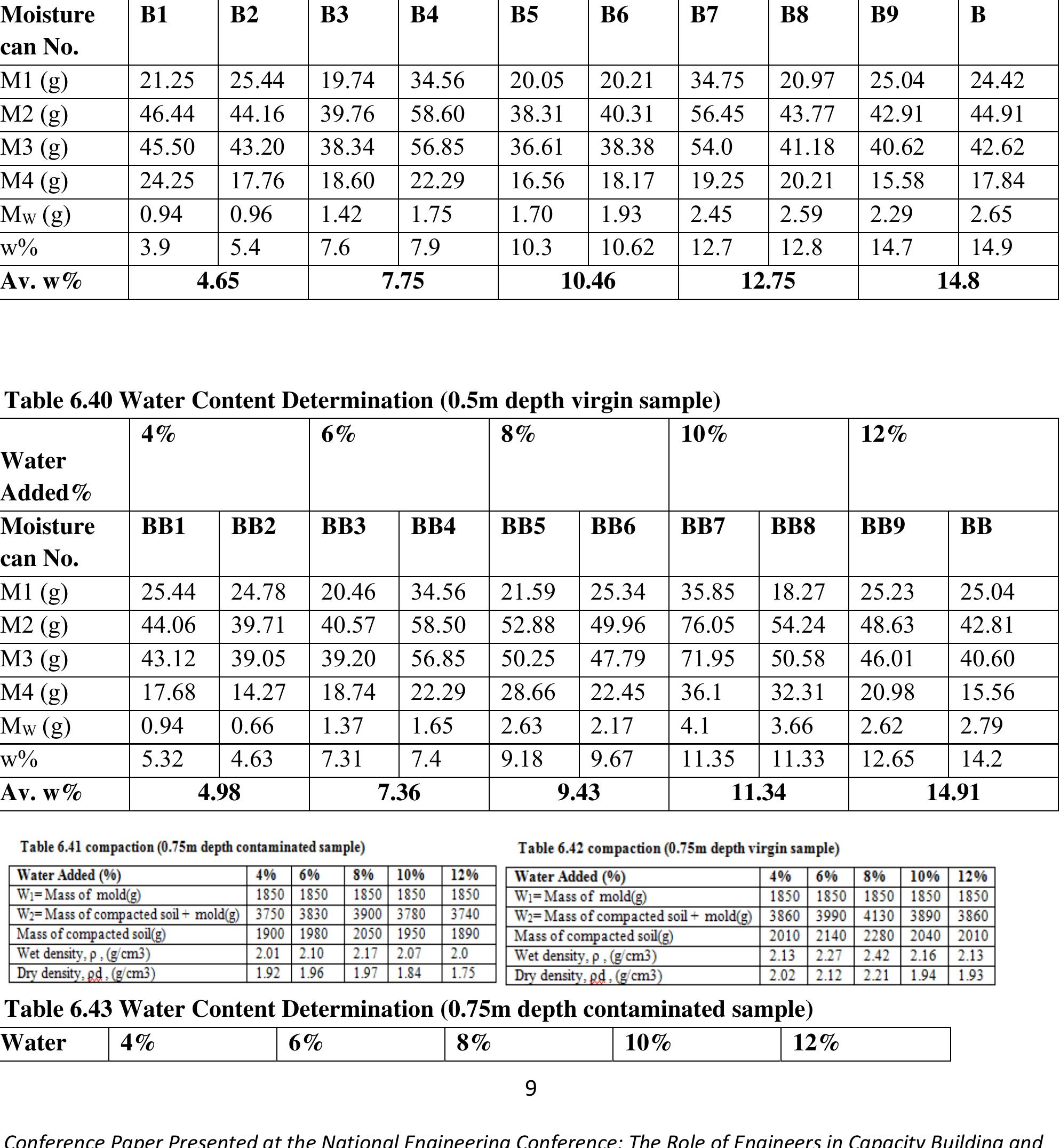 This study presents the effect of petroleum product contamination on bearing pressure of soil. So... more This study presents the effect of petroleum product contamination on bearing pressure of soil. Soil samples were obtained at different depths of 0.25, 0.5, 0.75 and 1.0m each from two different points (contaminated and virgin site). Atterberge limit, particle size distribution, compaction as well as shear test were carried out. The results revealed that, Atterberge limit of the soil is getting lower with increase in contamination; it was also observed that the maximum dry density and optimum moisture content dropped with an increase in oil content while cohesion dropped. Subsequently an increase in inter-slippage of the soil particles reduces the shear strength of the soil; hence these drop the soil bearing pressure.