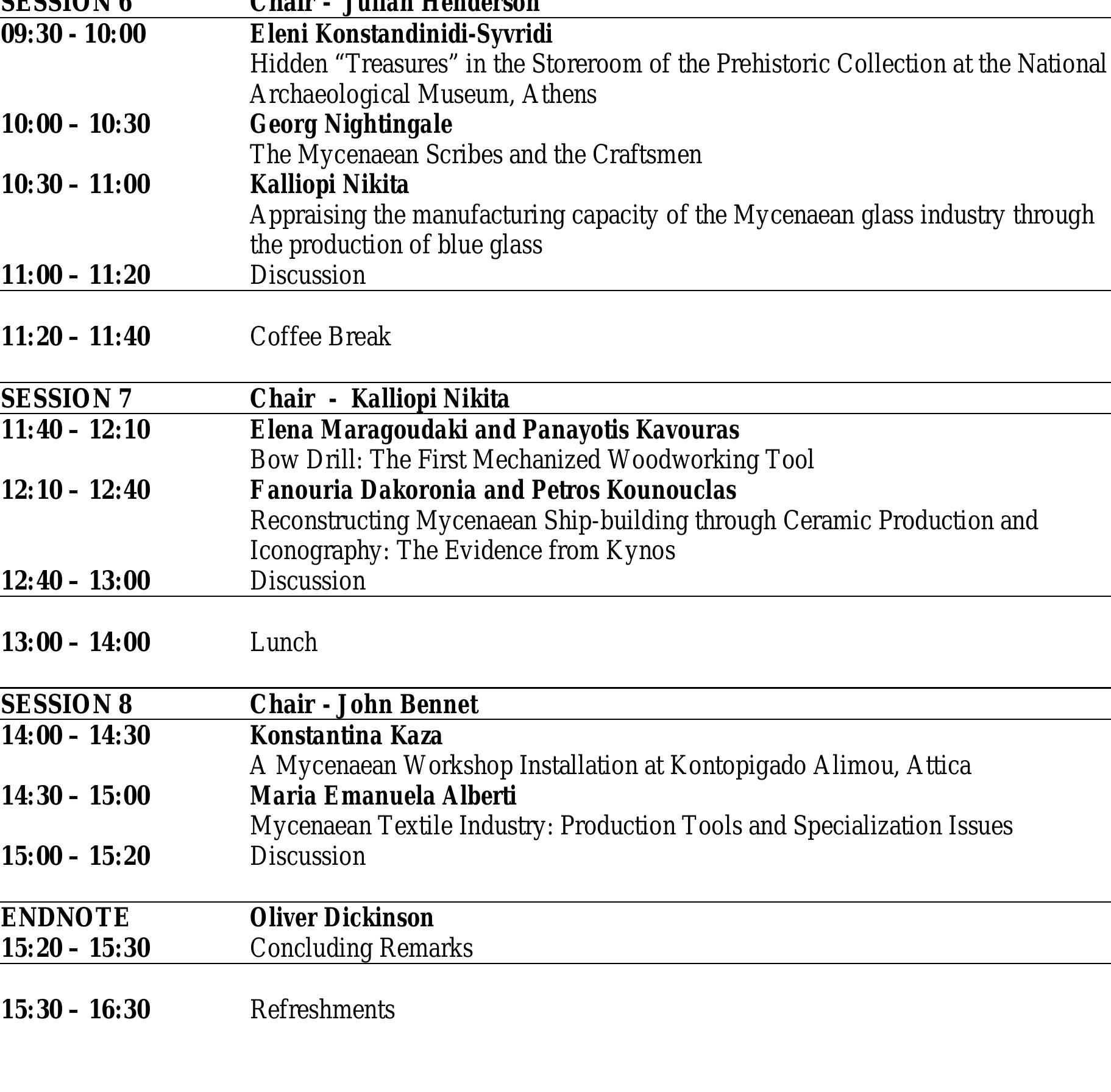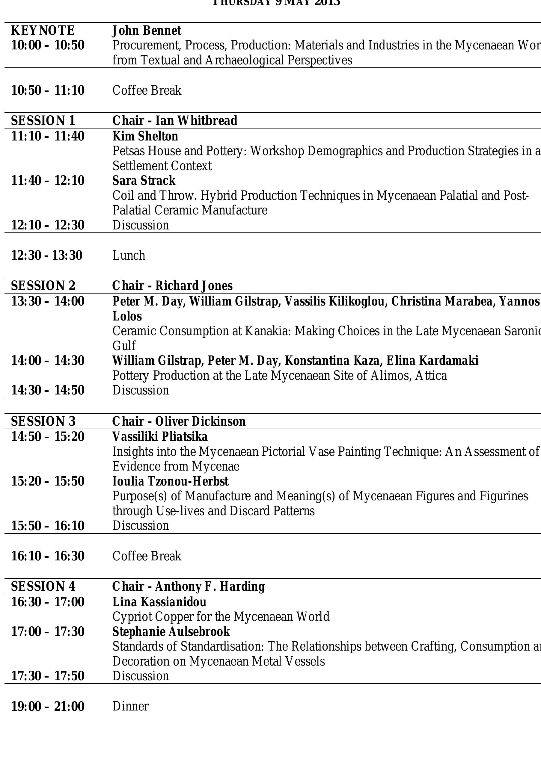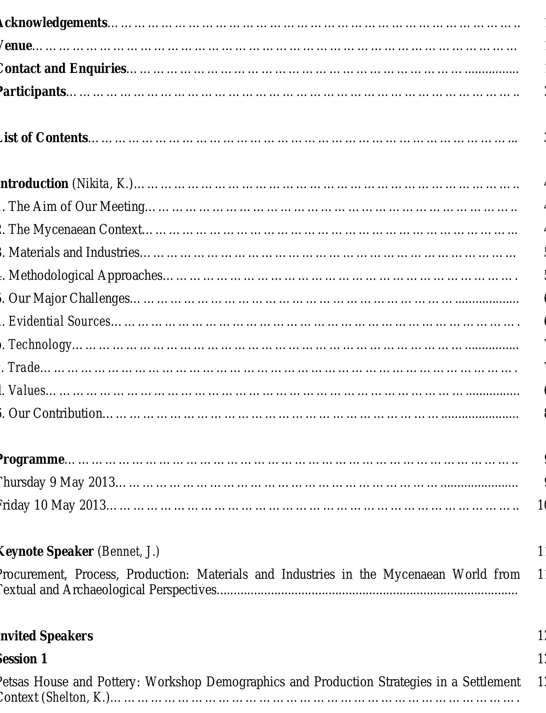This international conference - part of the research project From Thebes to Mycenae funded by the... more This international conference - part of the research project From Thebes to Mycenae funded by the Arts and Humanities Research Council - considers production technologies of materials, artefacts and their industries in the Mycenaean World.