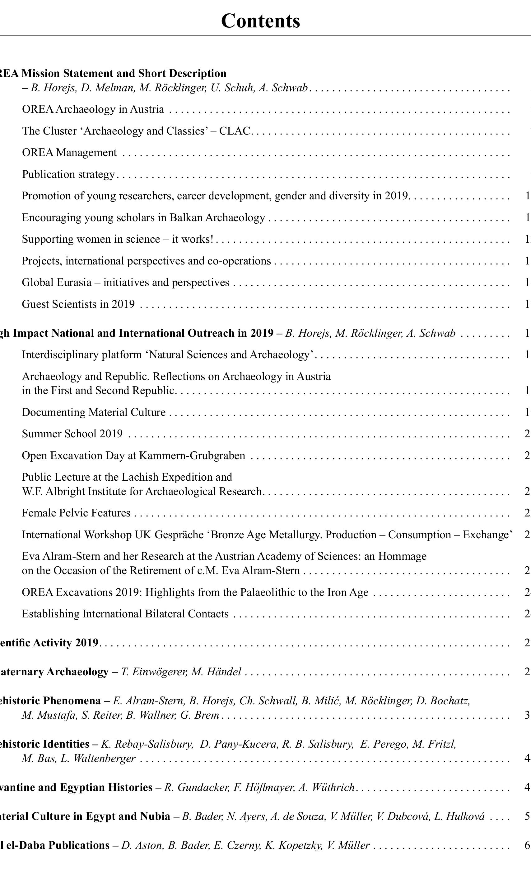 by Barbara Horejs, Christoph Schwall, Bogdana Milic, Dominik Bochatz, Katharina Rebay-Salisbury, Roman Gundacker, Felix Höflmayer, Annik Wüthrich, Bettina Bader, Natasha Ayers, Aaron de Souza, David Aston, Reinhard Jung, Teresa Bürge, Laura Burkhardt, Jasmin Huber, Elina Kardamaki, Mario Gavranovic, Benedikt Biederer, Julia Budka, and Holger Kockelmann OREA Annual Report, 2019