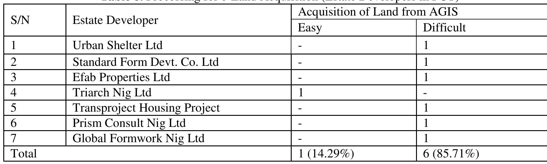 Land administration in Abuja includes processes of land registration, cadastre, valuation and lan... more Land administration in Abuja includes processes of land registration, cadastre, valuation and land inventory. Every country in the world pursues these activities in one form or another irrespective of the stage of development. Developing countries particularly, Nigeria are overwhelmed by challenges of land management and administration. Recent efforts to secure tenure and enhance real property markets are under pressure from increasing demand and competition for land. Effort at implementing land administration reform in the Federal Capital Territory (FCT) have led to inefficiency, incoherent and poor land management. This has undermined the huge potentials and global competitiveness in the sector. This study assesses the effectiveness of Abuja Geographic Information Systems (AGIS) on the implementation of electronic land administration in the FCT. Descriptive survey method was adopted in carrying out this study. Data collection involved sample of 150 applicants/beneficiaries of land...