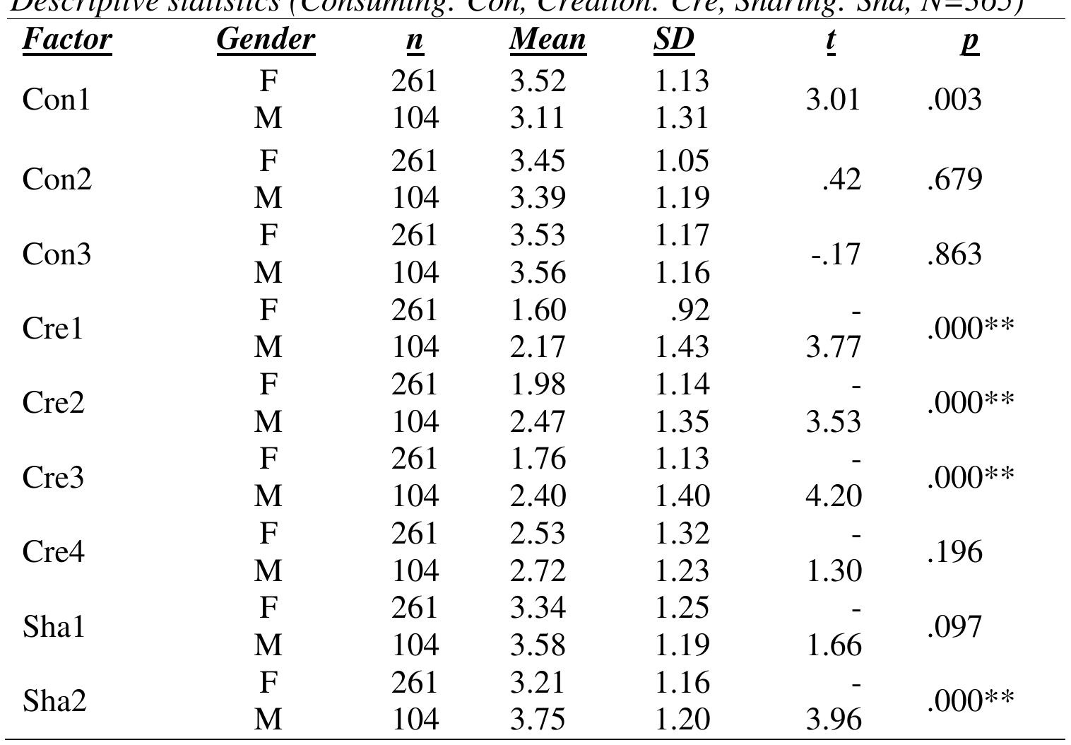 Introduction: This study investigates the influence of gender and social networking sites (SNSs) ... more Introduction: This study investigates the influence of gender and social networking sites (SNSs) such as Instagram, YouTube, WhatsApp, Facebook, and Twitter on consuming, creating, and sharing content within the educational social media usage behaviors of higher education students. The survey method is applied to measure students’ social media usage for educational purposes. So that a more effective use of social media in education can be provided, it is important to understand how university students vary in their educational use of social media. The aim of this study is to examine how higher education students use social media for their educational purposes based on the content and activities with which the students engage. The aim of the research is to determine the correlations, if any, between gender, preferred SNS type, and educational social media in regard to consuming, creating and sharing content. Methods: The derived scale is administered in Turkey with the participation ...