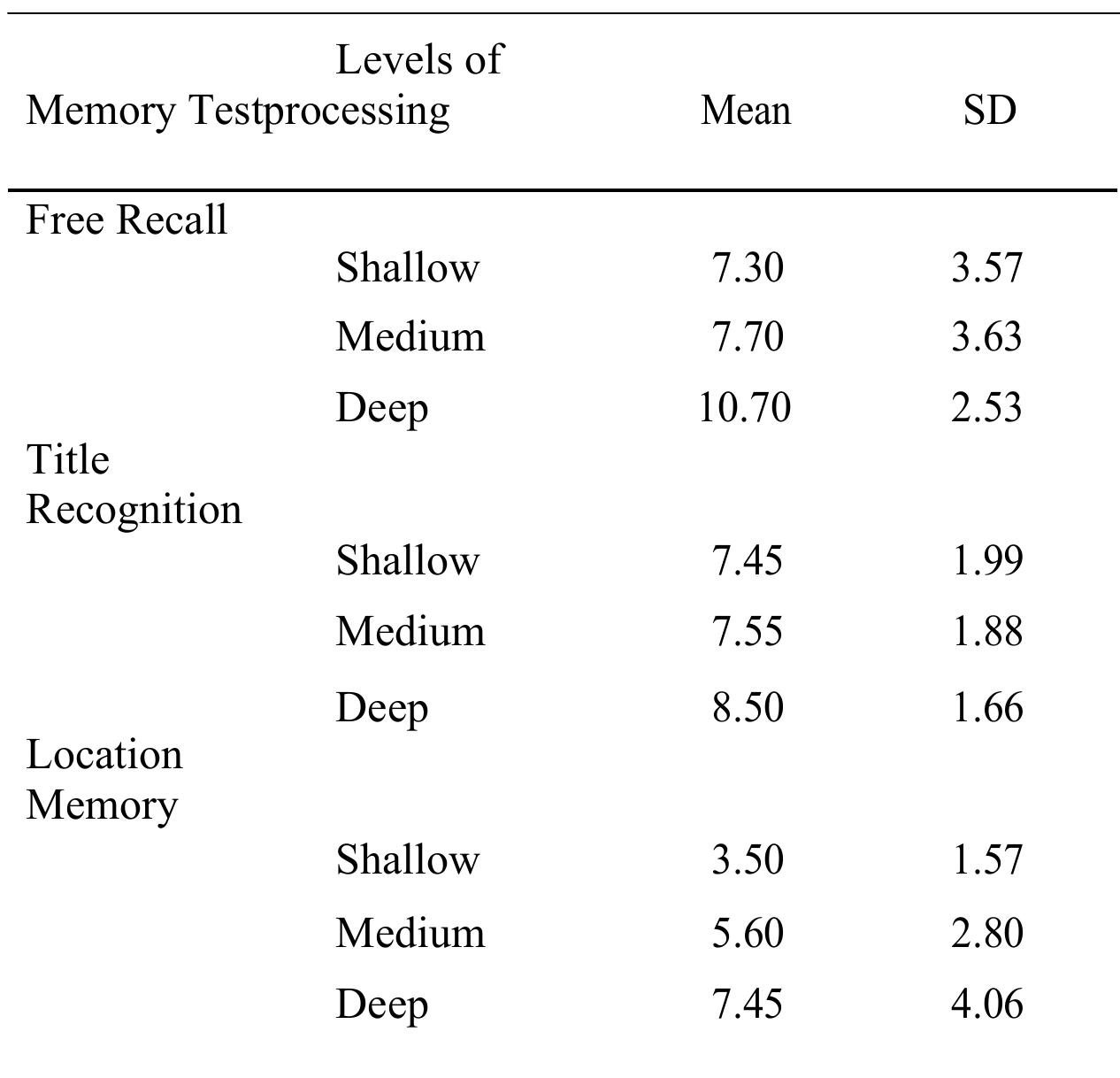 This study investigates the participants' recall performances during reading a context-free story... more This study investigates the participants' recall performances during reading a context-free story from a computer screen in the framework of Levels of Processing. The immediate recall test was used to determine participants' performance on free recall, title recognition and location memory with an online memory performance determination and measurement instrument. Results are in accordance with the main argument of Levels of Processing; deeply processed elements are remembered better and the strength of the encoded memory trace depends on the mental processes carried out with different types of tasks. Results show that the main effects of levels of processing on memory performance during on-screen reading are significant. The way of encoding, storing and retrieving during on-screen reading by implementing instructional tasks determine the level of memory performance in online interaction.