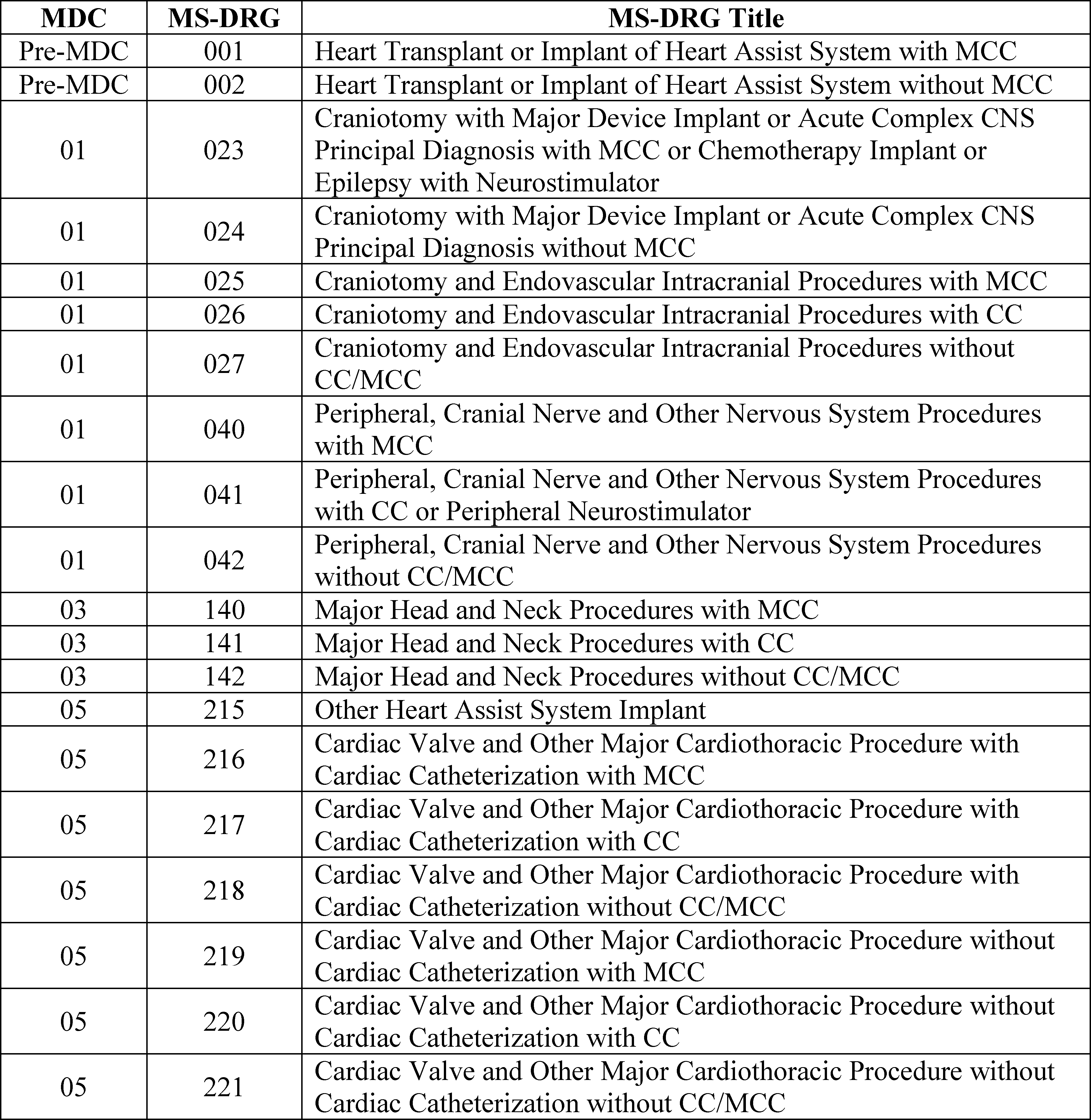 D. Changes to Specific MS-DRG Classifications