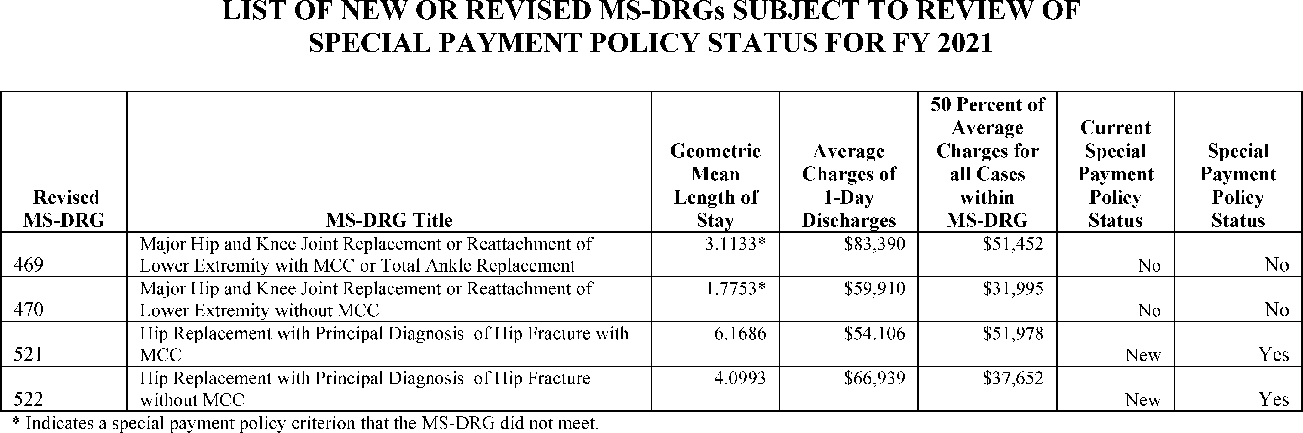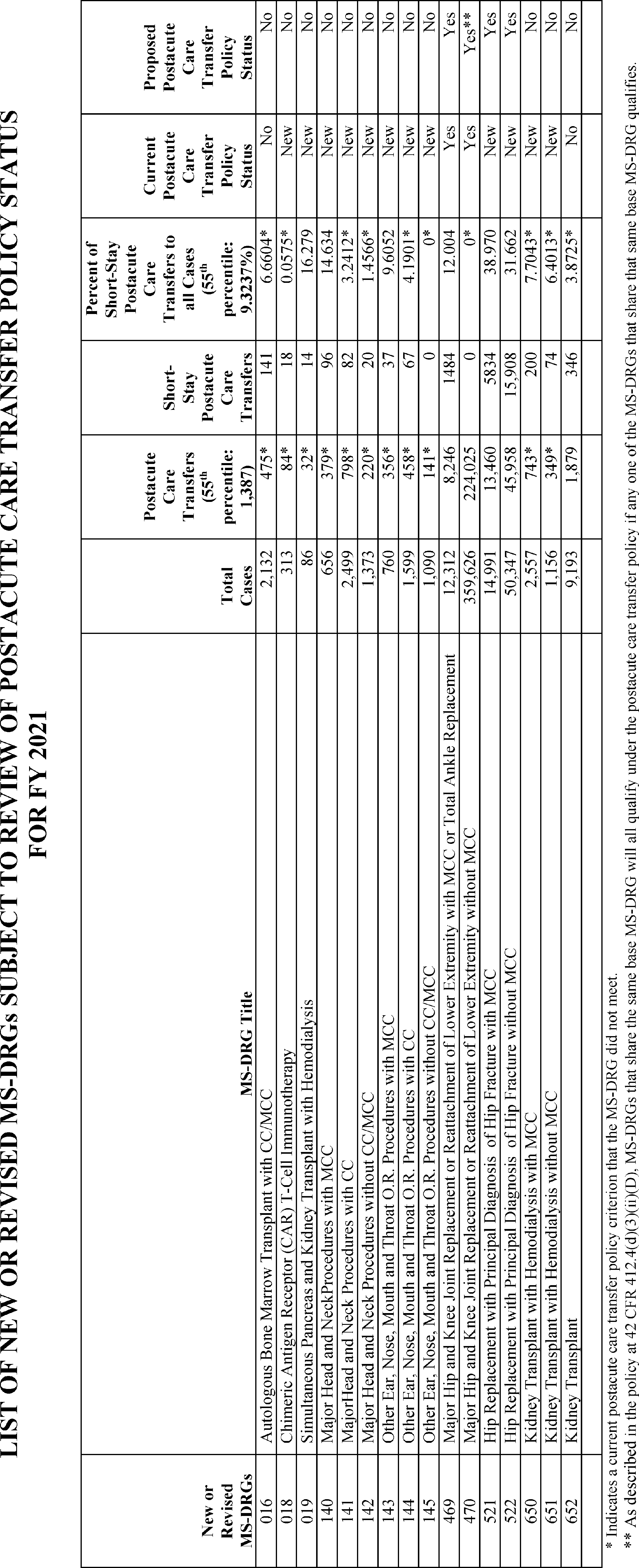 A. Changes to MS-DRGs Subject to Postacute Care Transfer Policy and MS-DRG Special Payments Policies (§ 412.4)