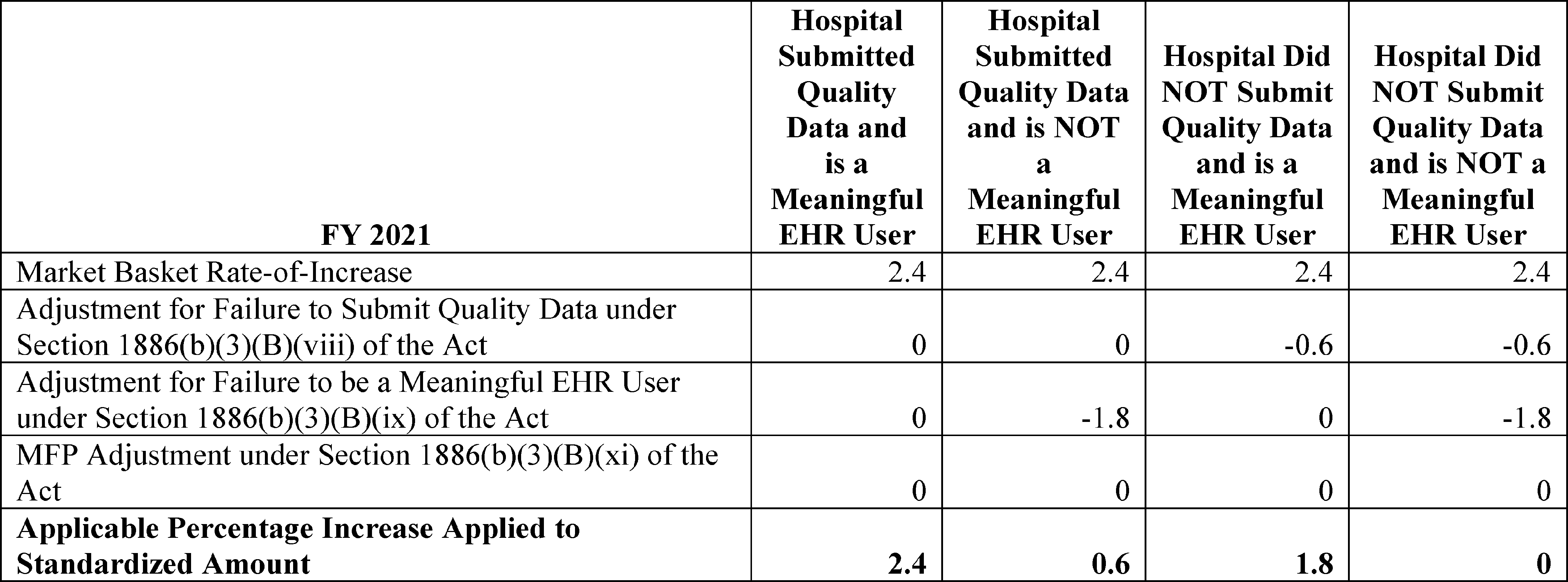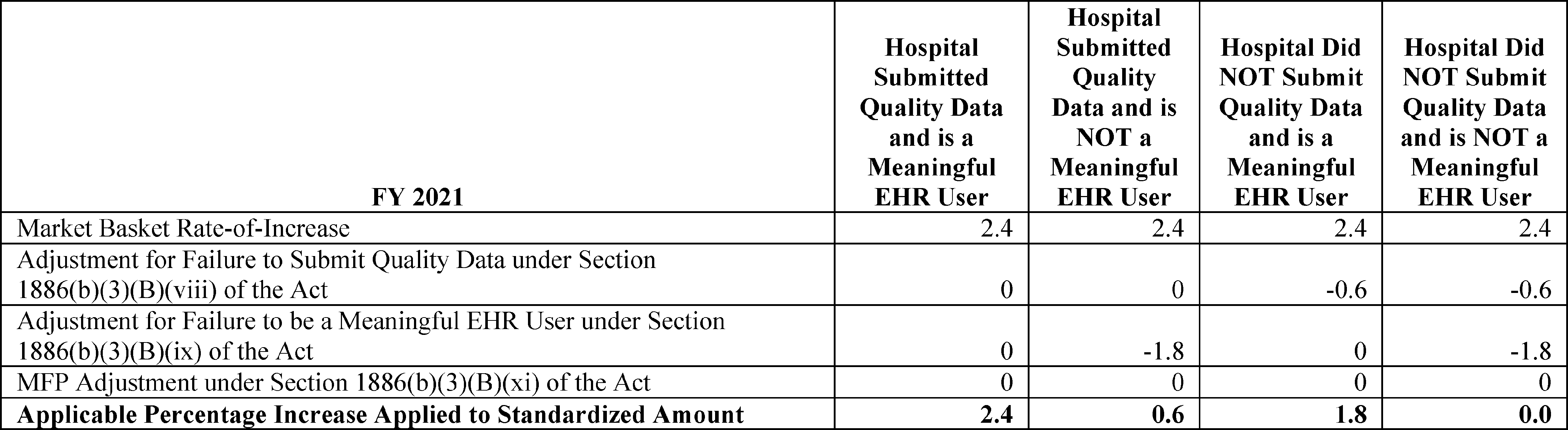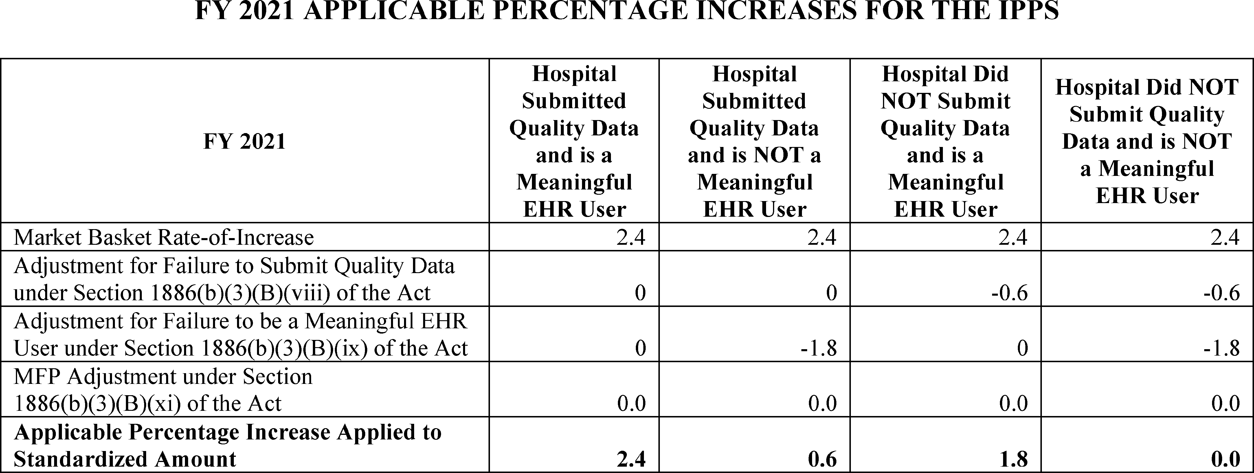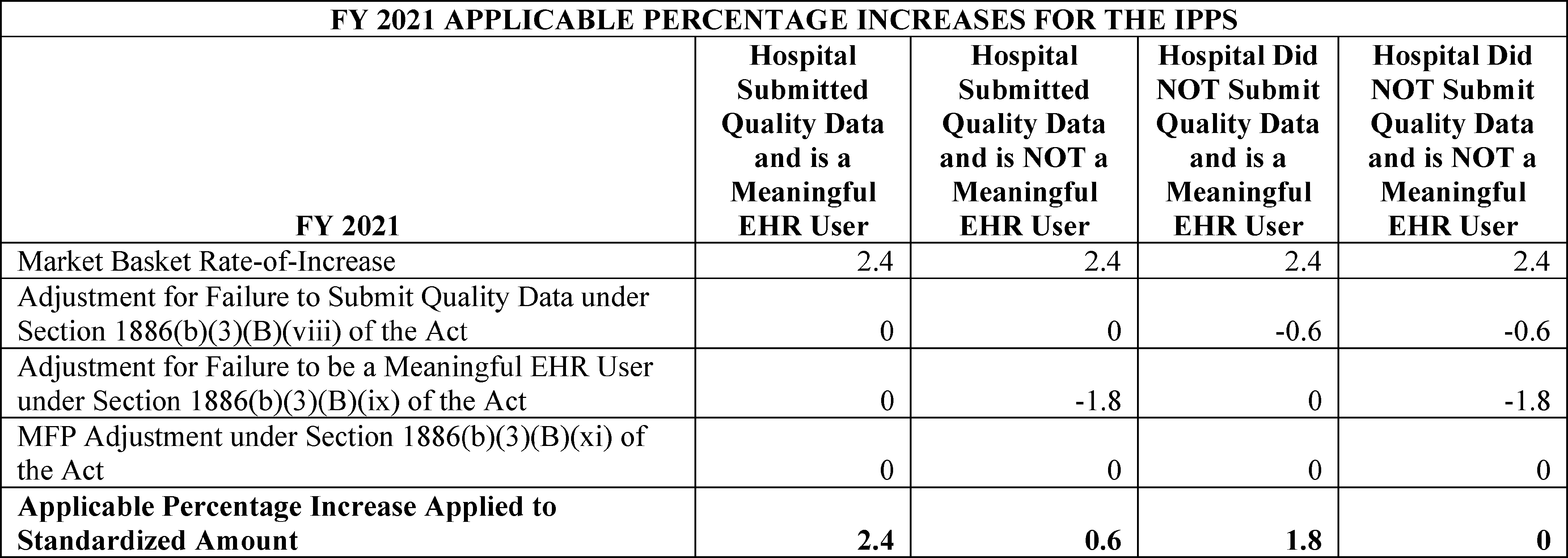 We are revising the Medicare hospital inpatient prospective payment systems (IPPS) for operating and capital-related costs of acute care hospitals to implement changes arising from our continuing experience with these systems for FY 2021 and to implement certain recent legislation. We are also making changes relating to Medicare graduate medical education (GME) for teaching hospitals. In addition, we are providing the market basket update that will apply to the rate-of-increase limits for certain hospitals excluded from the IPPS that are paid on a reasonable cost basis, subject to these limits for FY 2021. We are updating the payment policies and the annual payment rates for the Medicare prospective payment system (PPS) for inpatient hospital services provided by long-term care hospitals (LTCHs) for FY 2021. In this FY 2021 IPPS/LTCH PPS final rule, we are finalizing changes to the new technology add-on payment pathway for certain antimicrobial products and other changes to new technology add-on payment policies, and the collection of market-based rate information on the Medicare cost report for cost reporting periods ending on or after January 1, 2021 and finalizing the adoption of a market-based MS-DRG relative weight methodology beginning in FY 2024. We are establishing new requirements or revising existing requirements for quality reporting by acute care hospitals and PPS-exempt cancer hospitals. We also established new requirements and revised existing requirements for eligible hospitals and critical access hospitals (CAHs) participating in the Medicare and Medicaid Promoting Interoperability Programs. We are also establishing performance standards for the Hospital Value-Based Purchasing (VBP) Program, and updating policies for the Hospital Readmissions Reduction Program and the Hospital-Acquired Condition (HAC) Reduction Program.