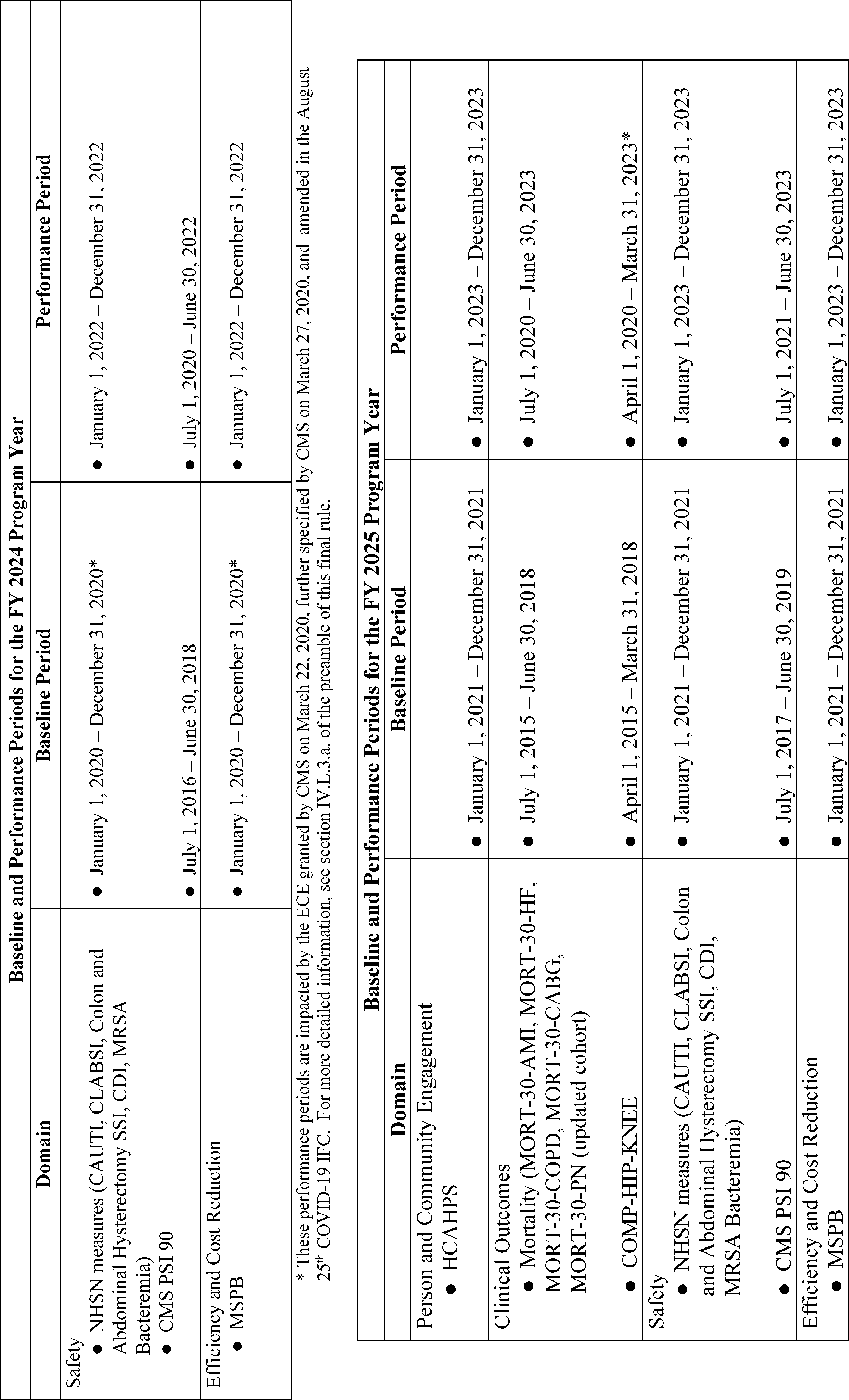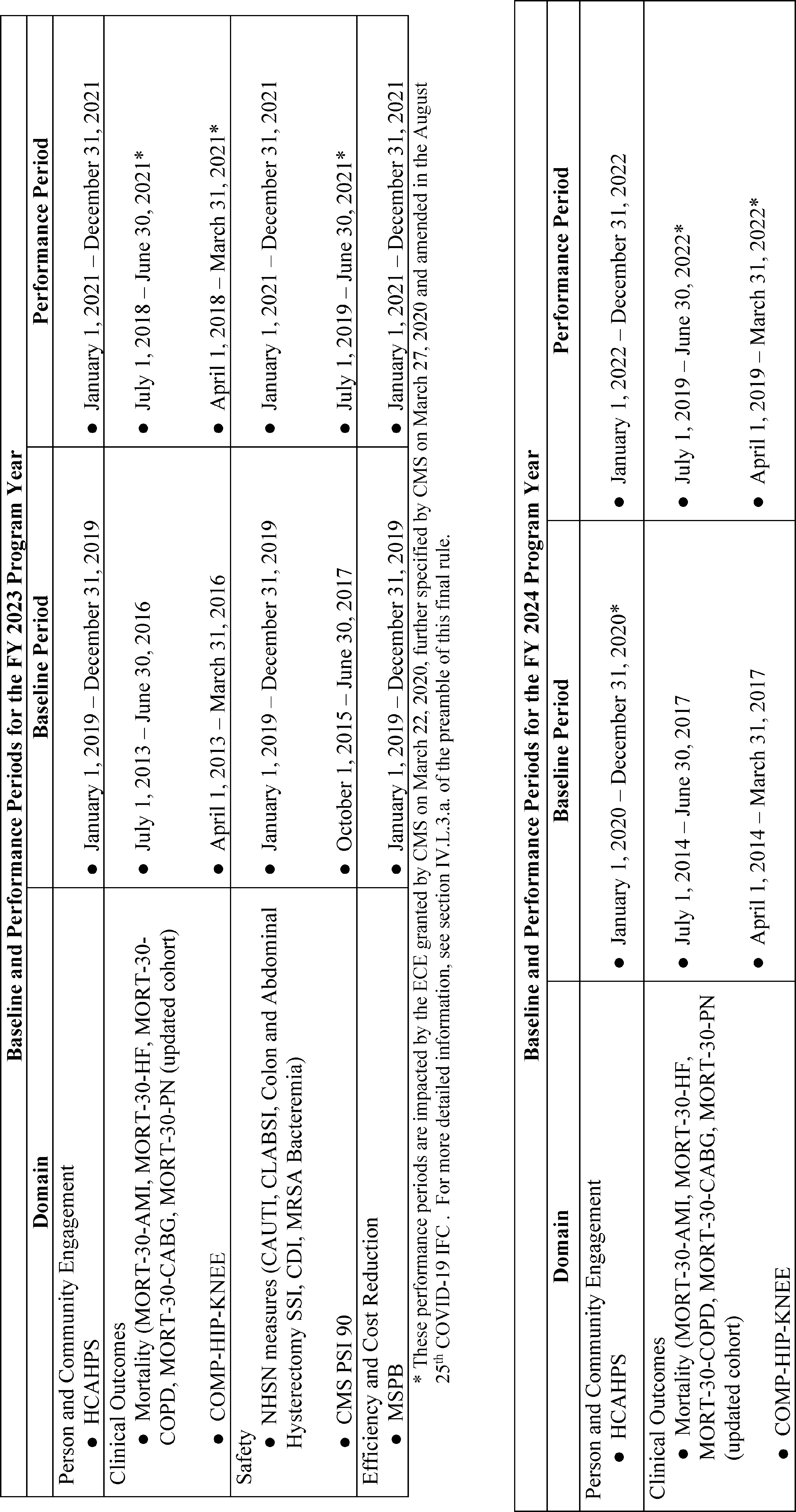 Back to Citation437. Pursuant to the August 25th COVID-19 IFC, no claims data or chart-abstracted data reflecting services provided January 1, 2020-June 30, 2020 will be used in calculations for the Hospital Value-Based Purchasing Program among other Medicare quality reporting and value-based purchasing programs due to the COVID-19 Public Health Emergency. Please refer to the August 25th COVID-19 IFC for more details.