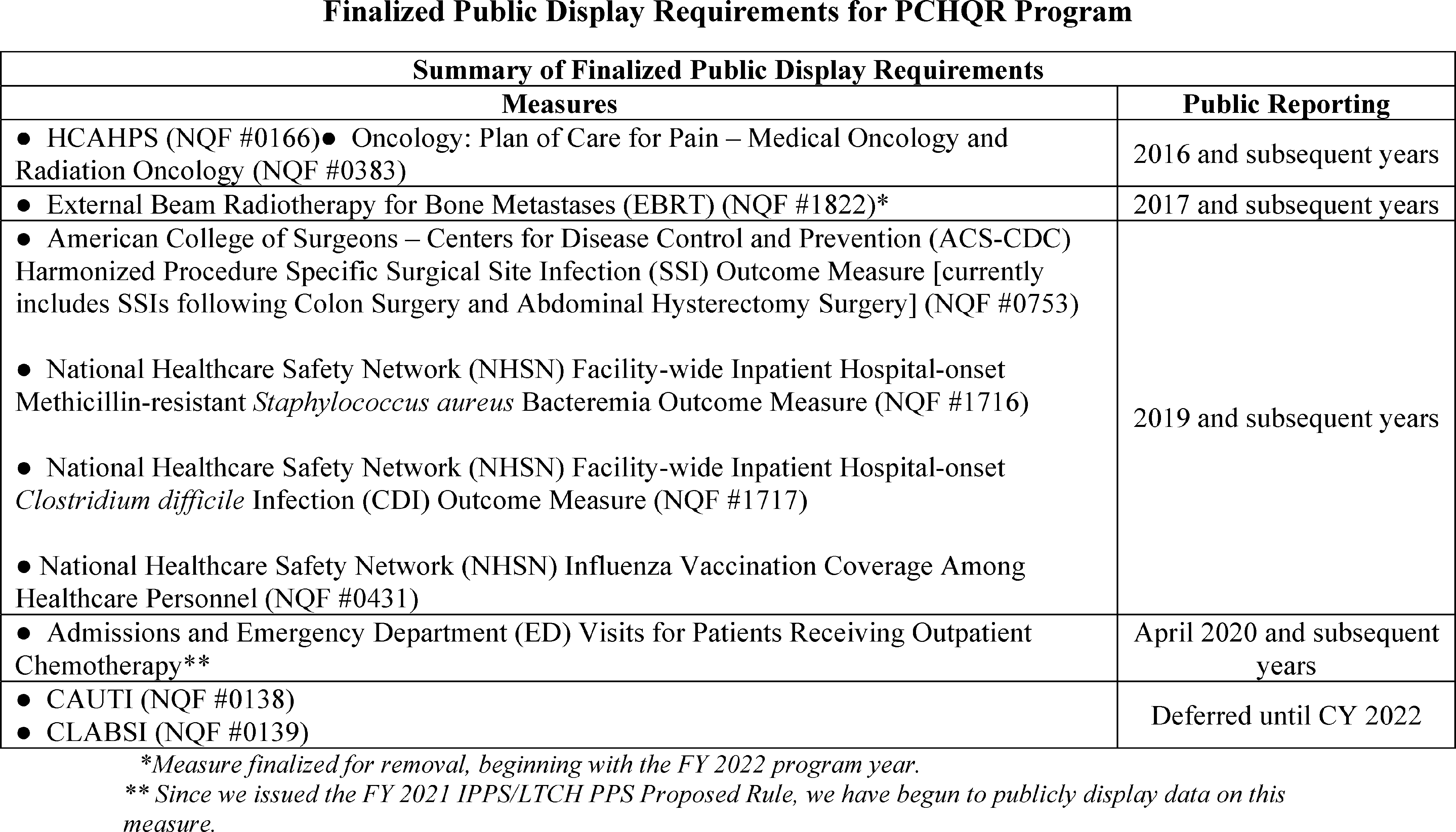 B. Changes to the PPS-Exempt Cancer Hospital Quality Reporting (PCHQR) Program
