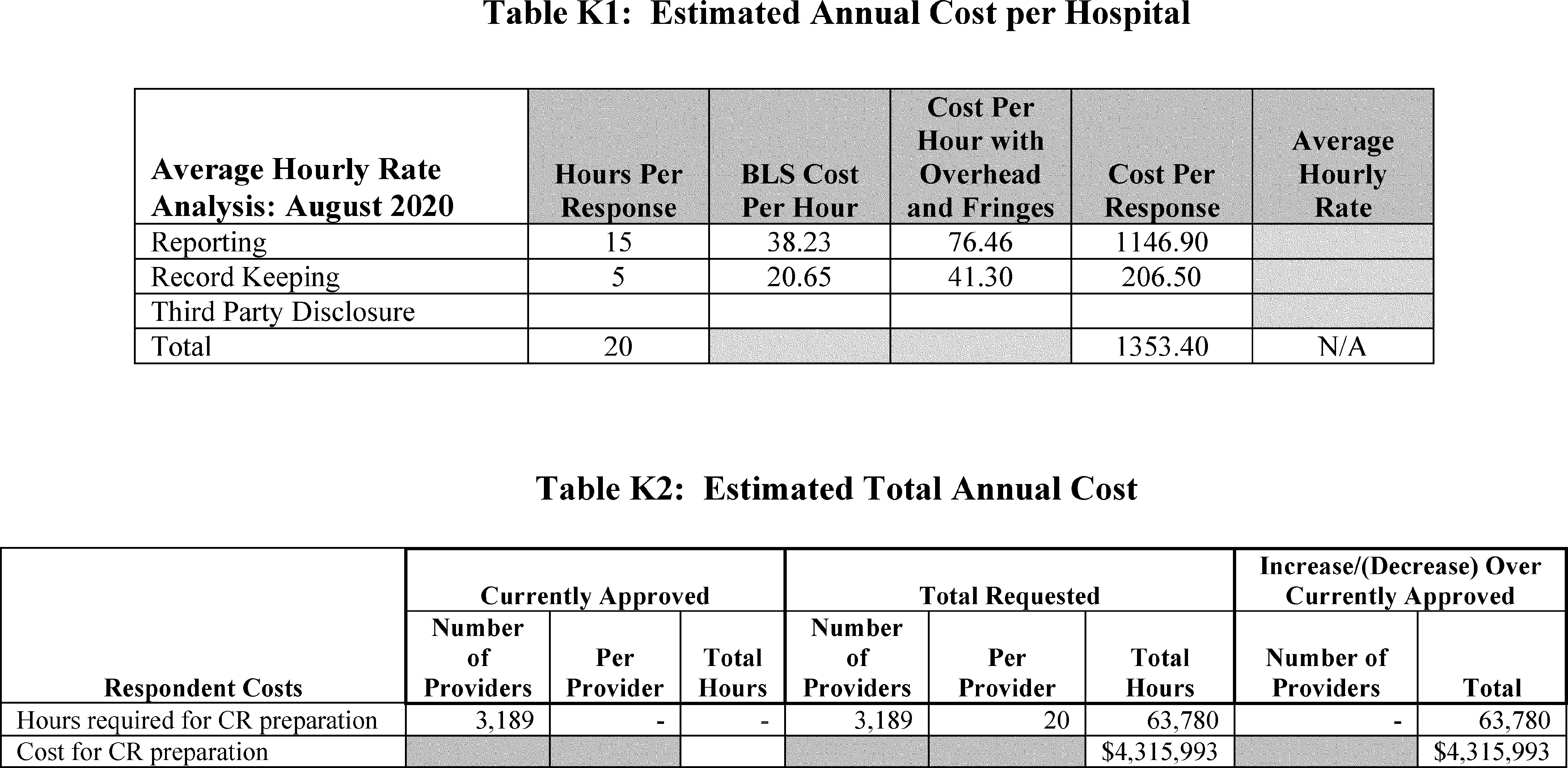 Back to Citation530. The estimated hourly cost for each labor category used in this analysis were referencing the Bureau of Labor Statistics report on Occupational Employment and Wages, May 2018 (Bureau of Labor Statistics report on Occupational Employment and Wages, May 2018 Available at: https://www.bls.gov/oes/2018/may/oes_nat.htm). We also have calculated the cost of overhead at 100 percent of the mean hourly wage, in line with the Hospital Inpatient and Hospital Outpatient Quality Reporting programs (81 FR 57260 and 82 FR 59477, respectively).
