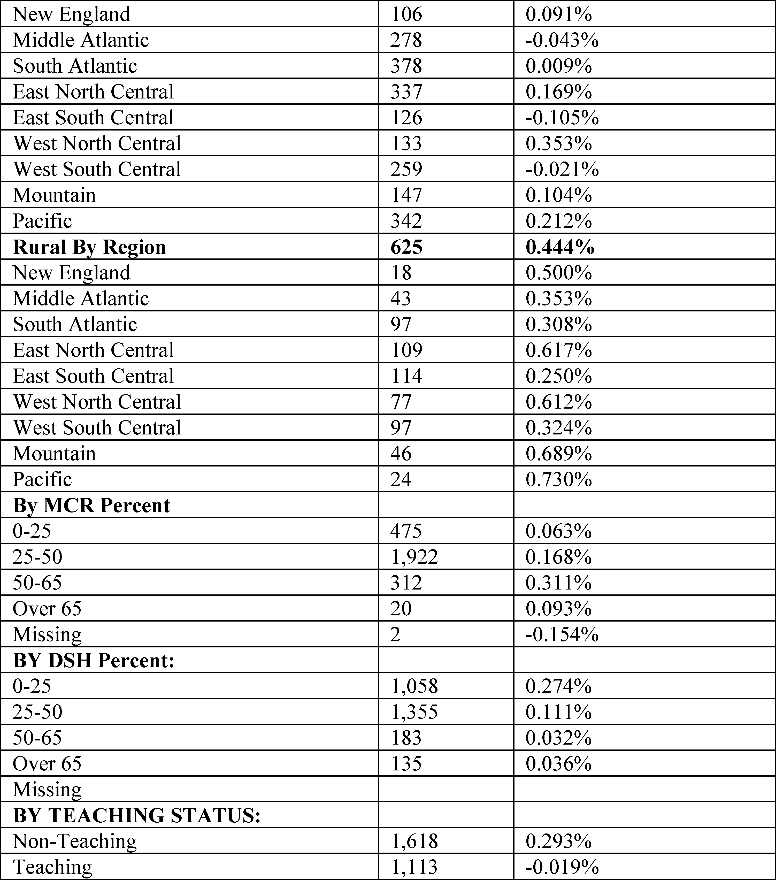 VI. Changes for Hospitals Excluded From the IPPS