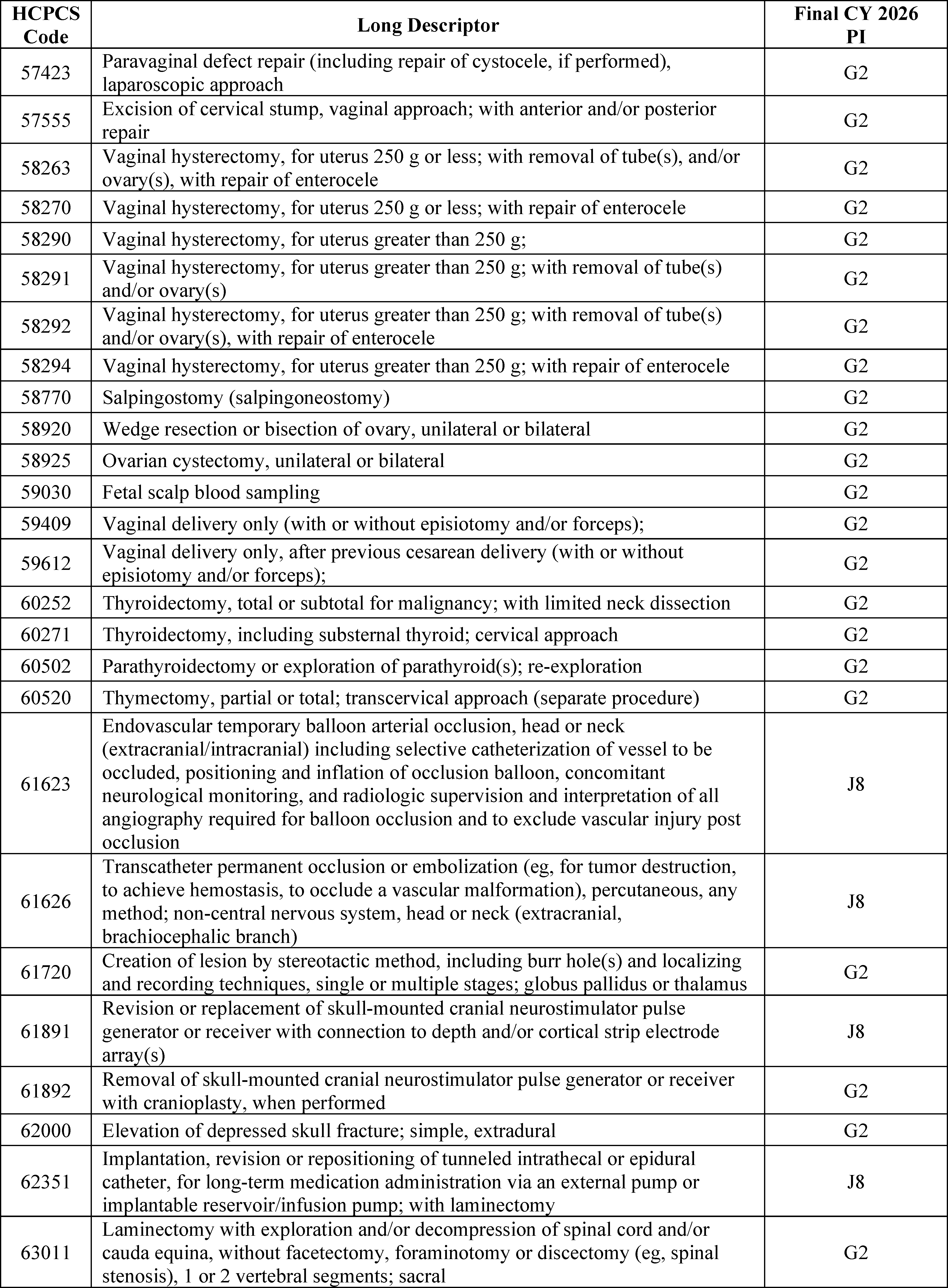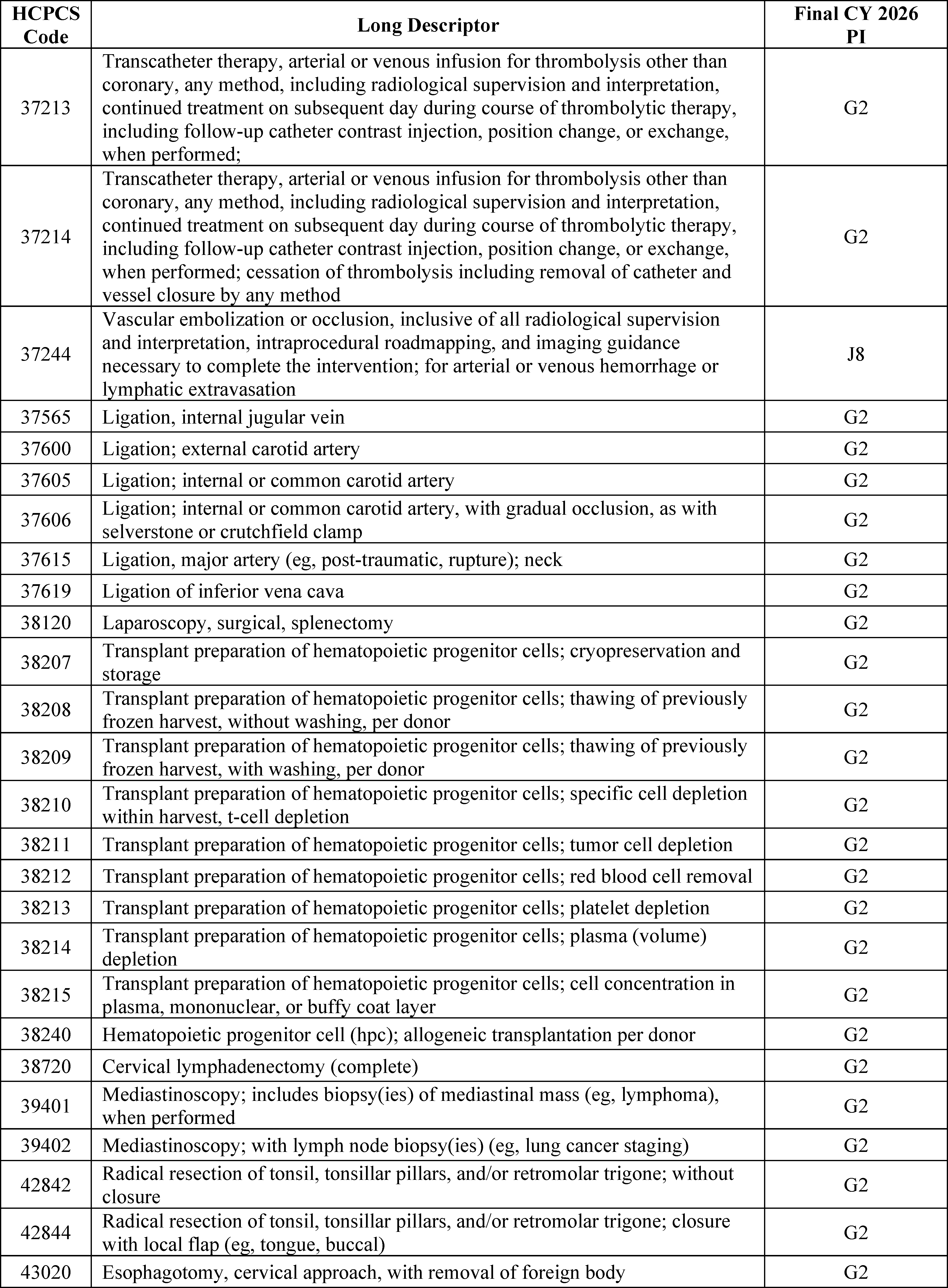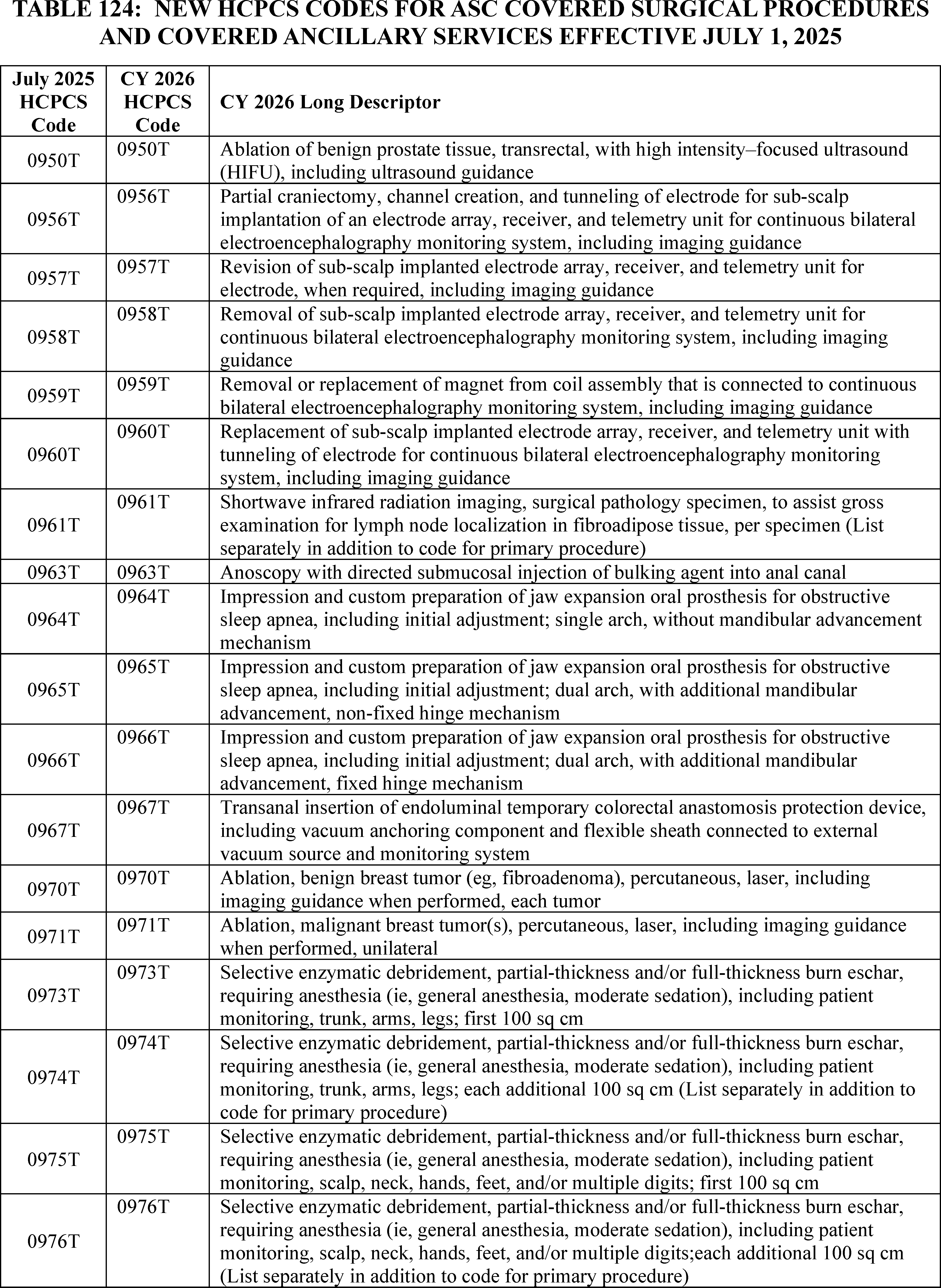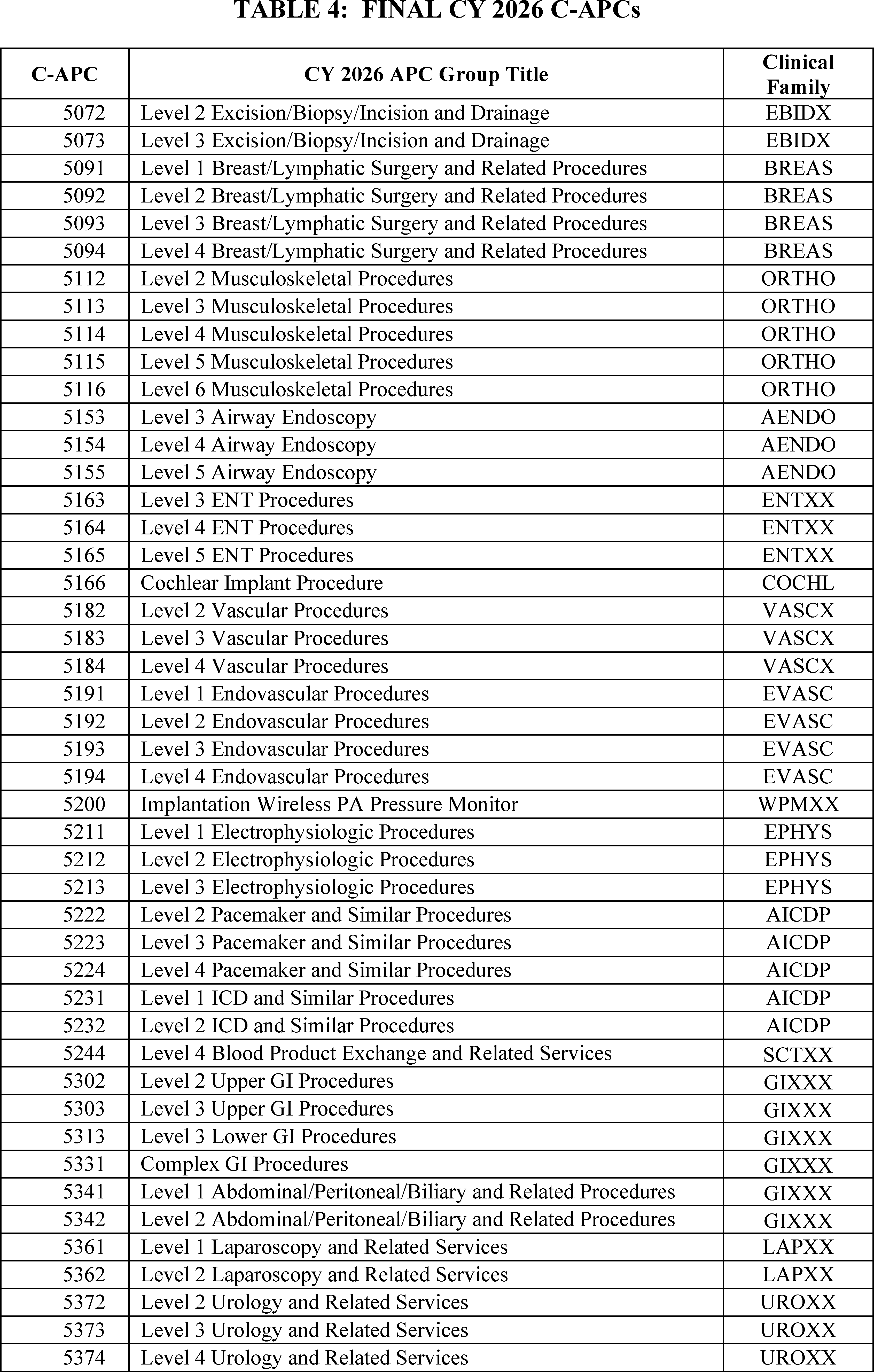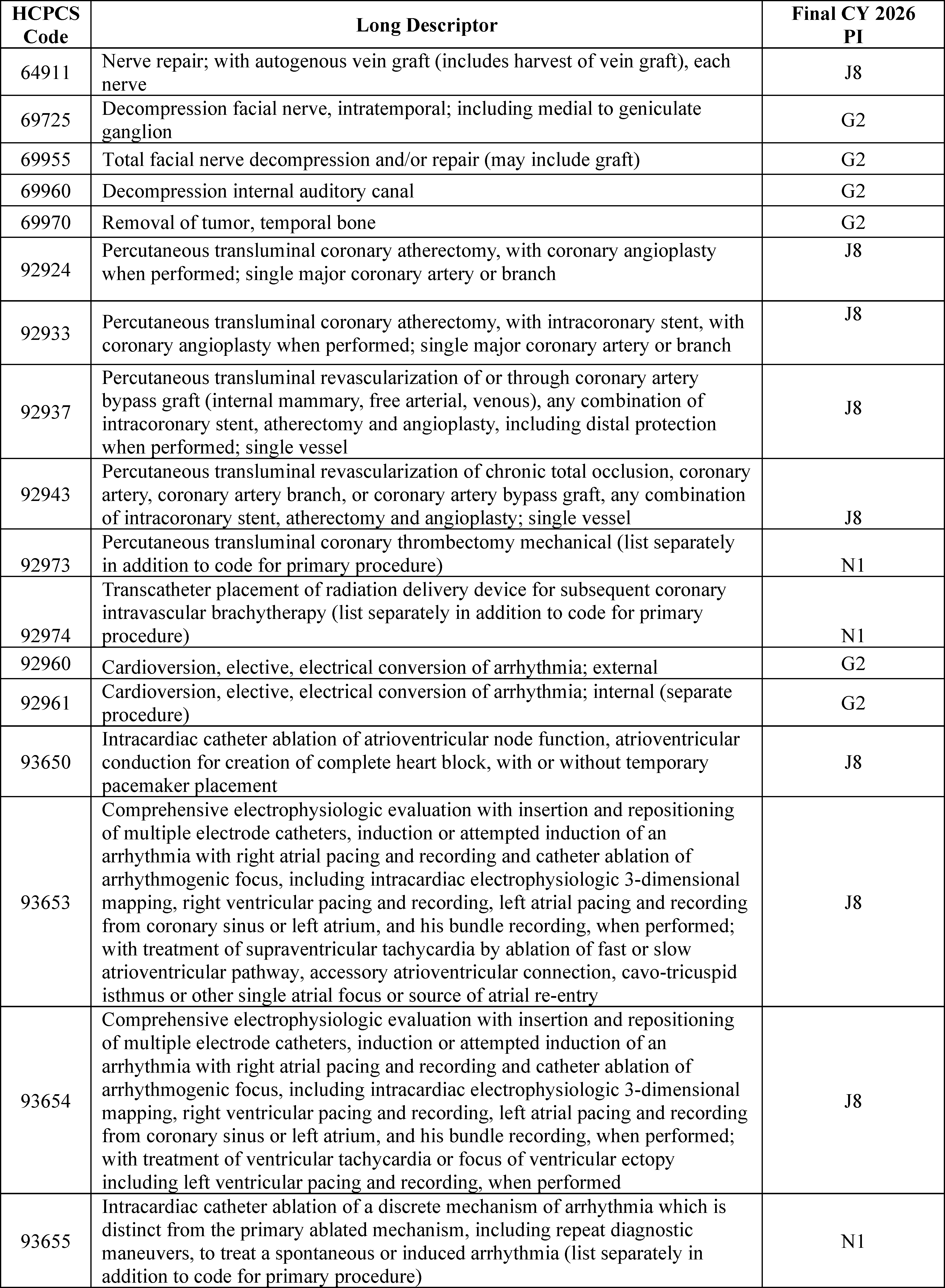 - Changes to the List of ASC Covered Surgical Procedures and Ancillary Services Lists: For CY 2026, we are expanding the ASC covered procedures list (CPL) by revising the criteria under § 416.166 to modify the general standard criteria and to eliminate five of the general exclusion criteria, moving them into a new section as nonbinding physician considerations for patient safety. We also are adding 276 procedures to the ASC CPL based on these criteria changes and adding an additional 271 codes to the ASC CPL that we are finalizing for removal from the IPO list for CY 2026.