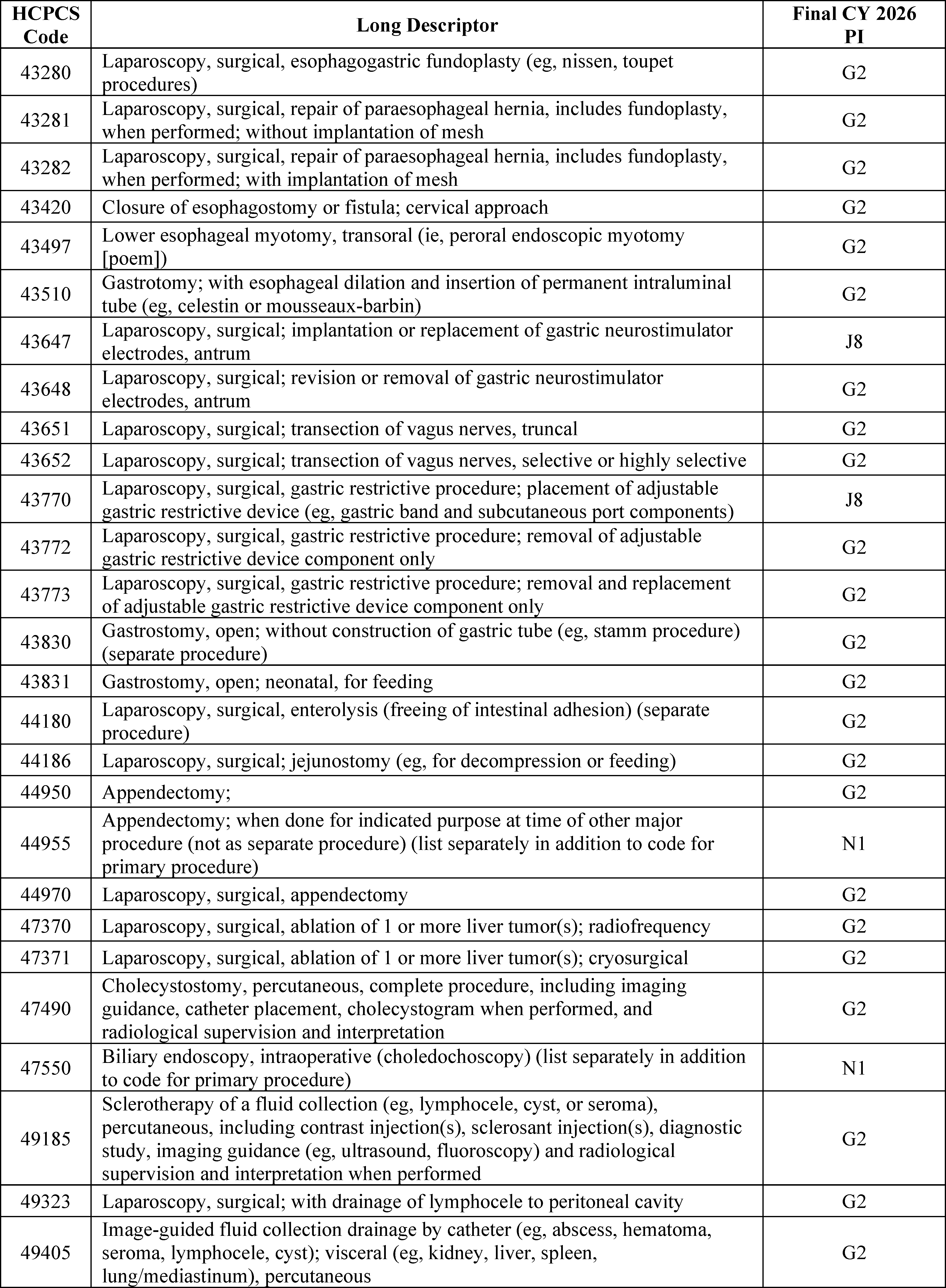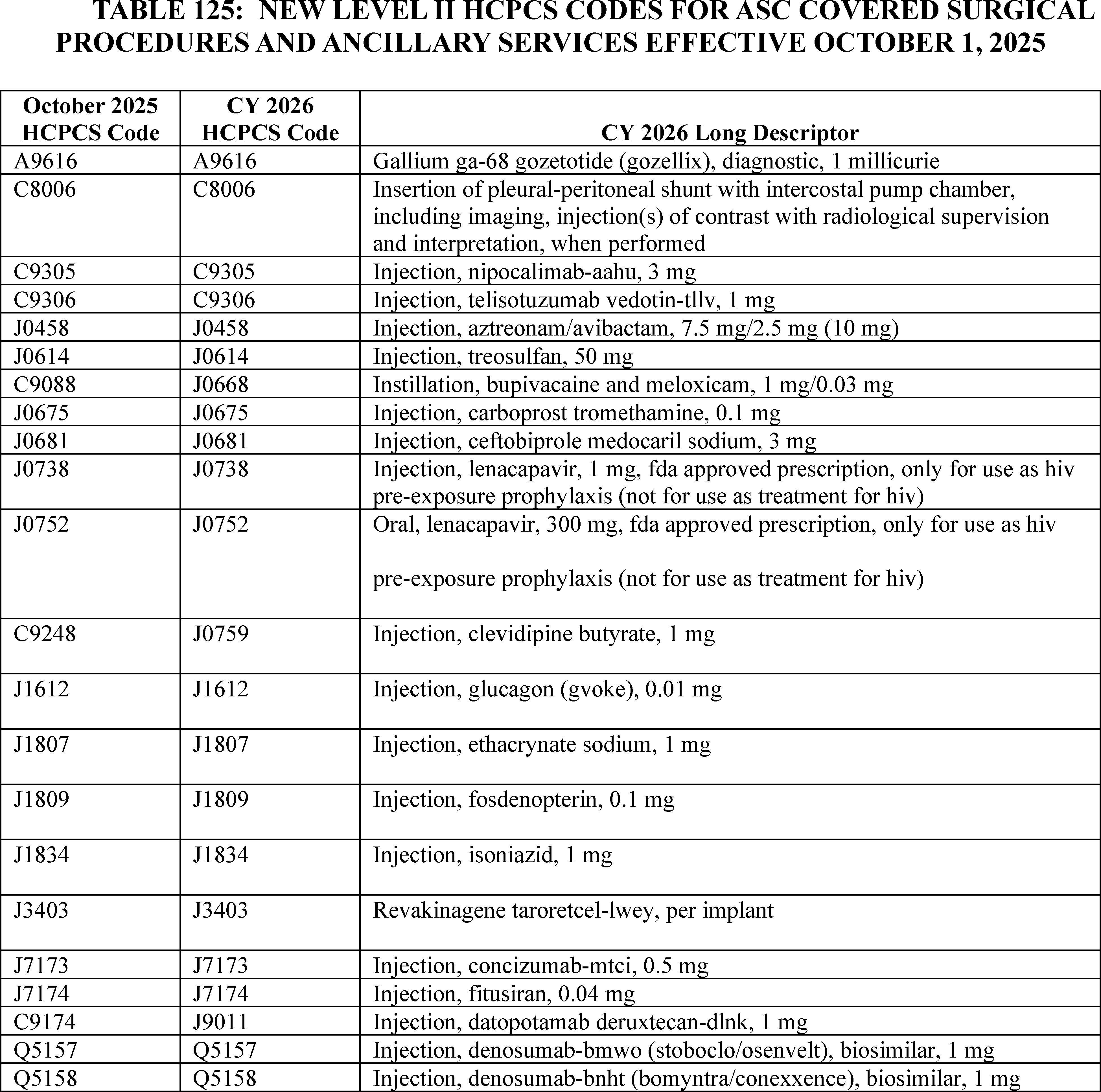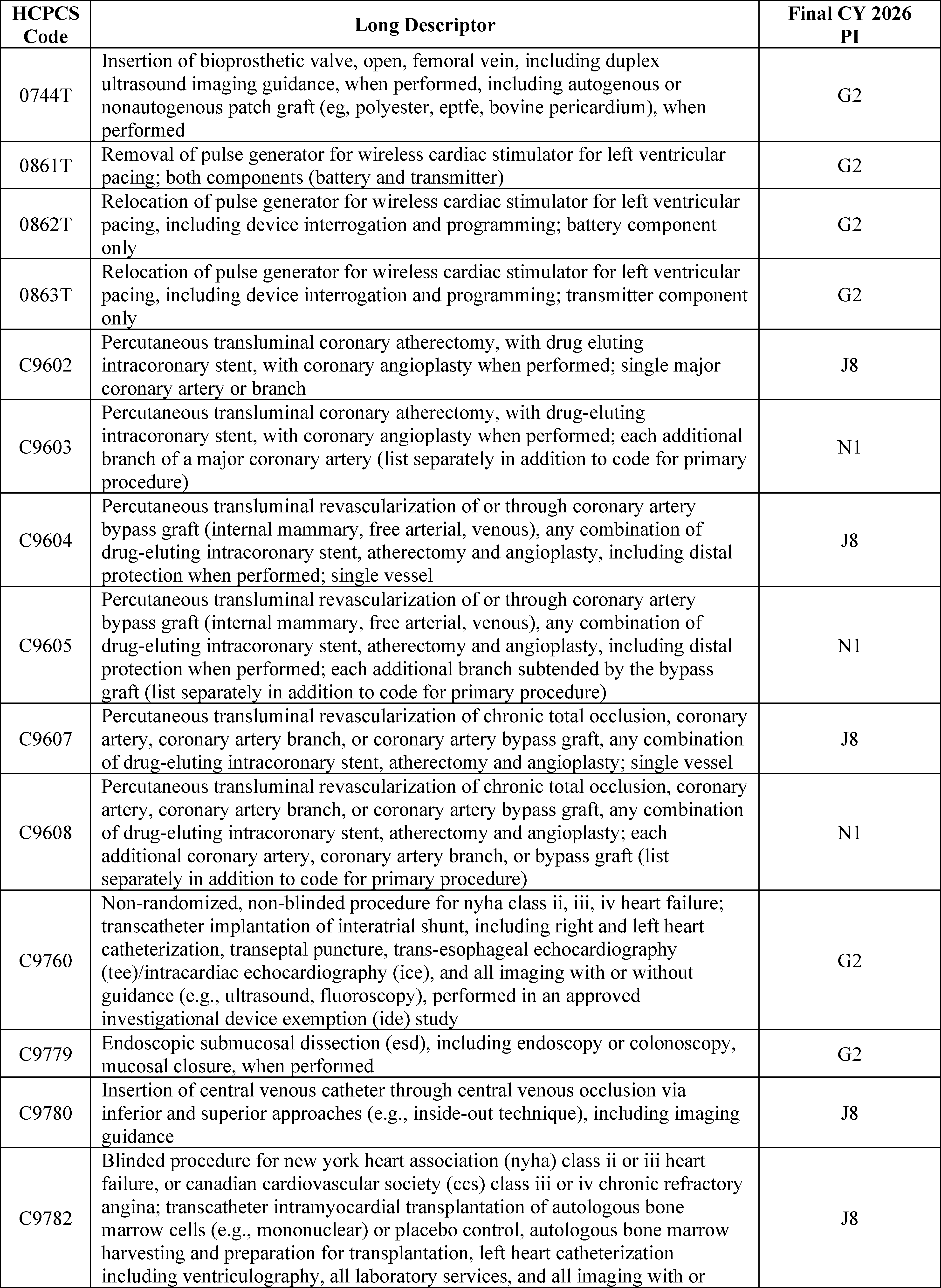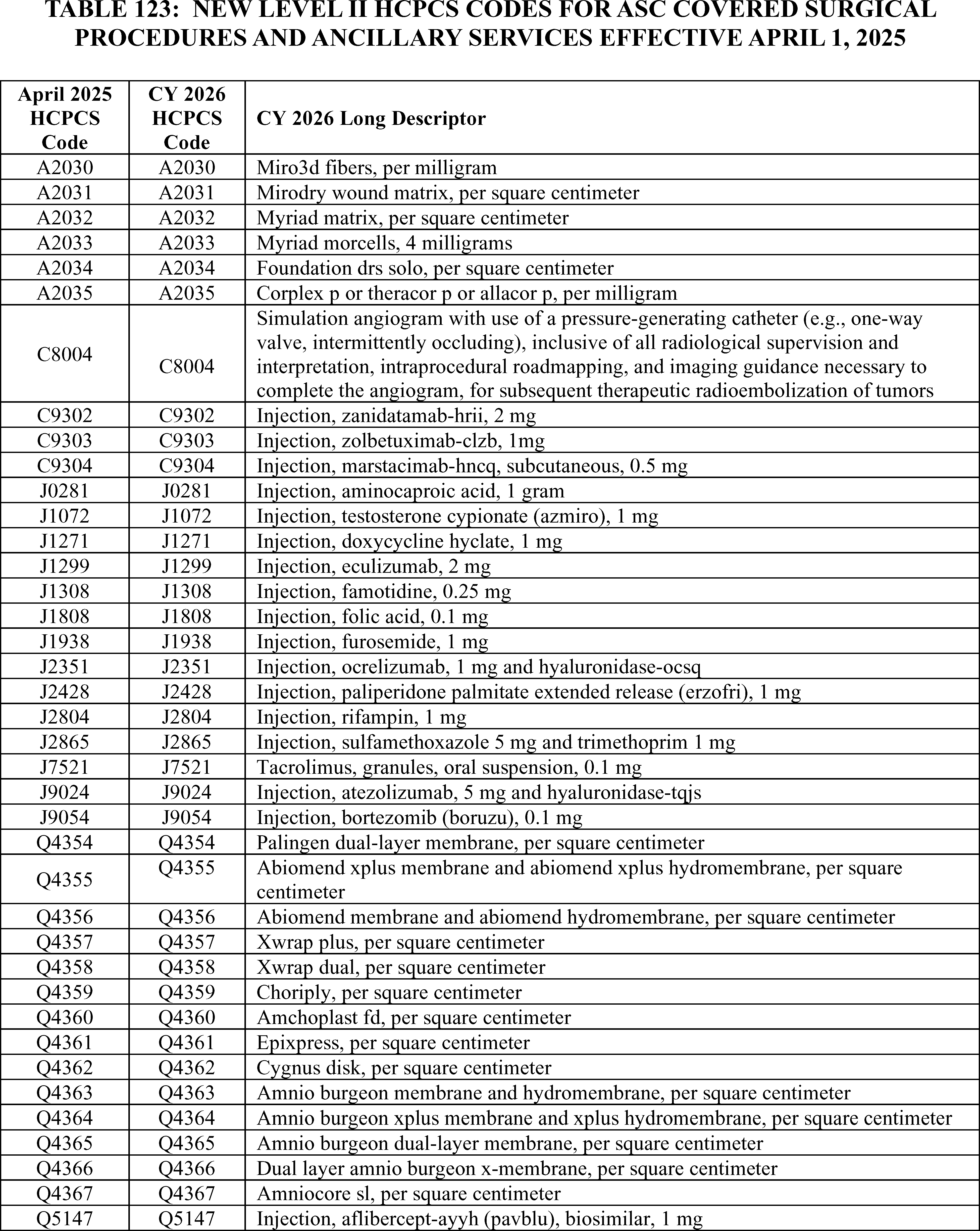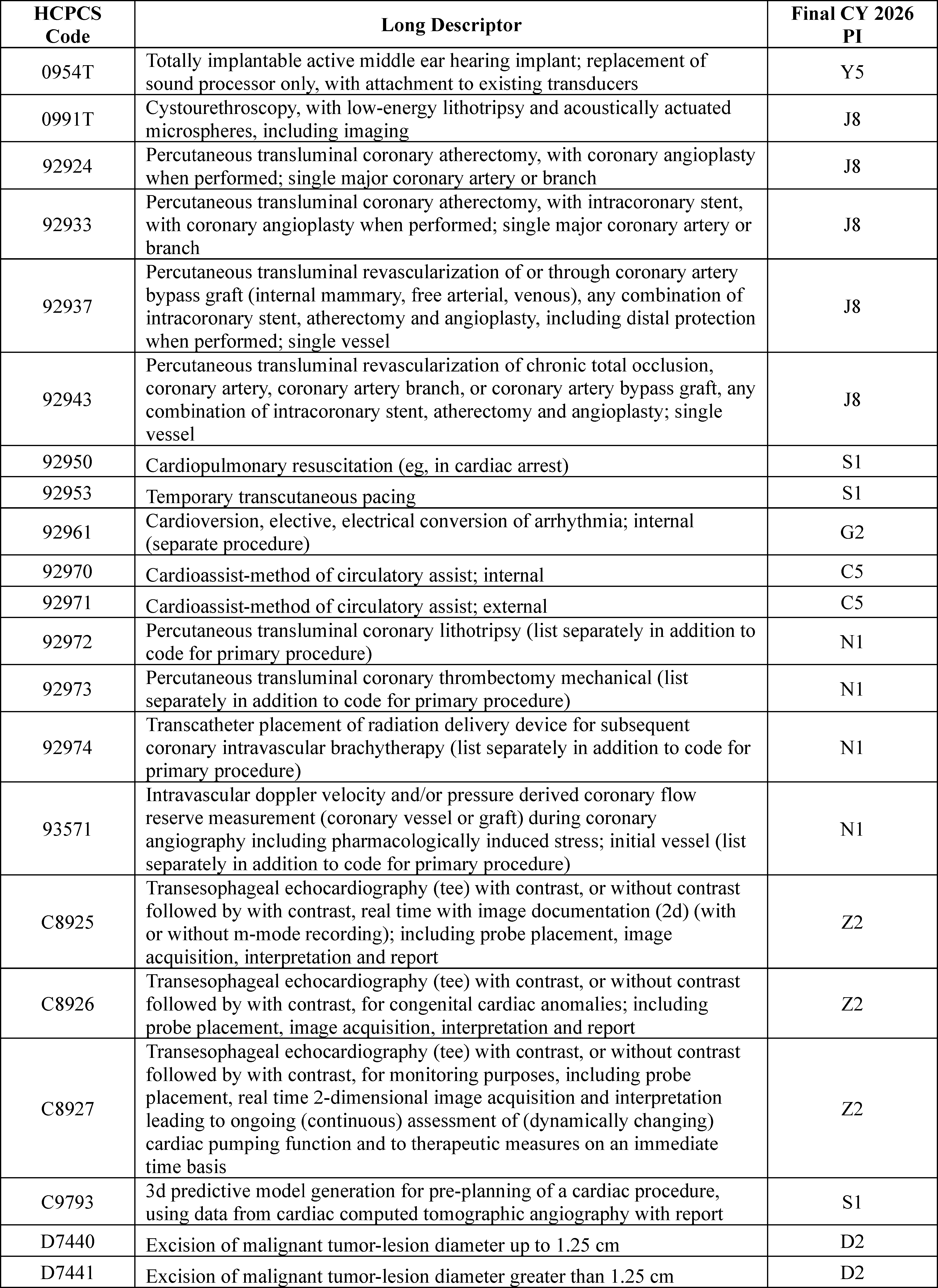 - Changes to the List of ASC Covered Surgical Procedures and Ancillary Services Lists: For CY 2026, we are expanding the ASC covered procedures list (CPL) by revising the criteria under § 416.166 to modify the general standard criteria and to eliminate five of the general exclusion criteria, moving them into a new section as nonbinding physician considerations for patient safety. We also are adding 276 procedures to the ASC CPL based on these criteria changes and adding an additional 271 codes to the ASC CPL that we are finalizing for removal from the IPO list for CY 2026.