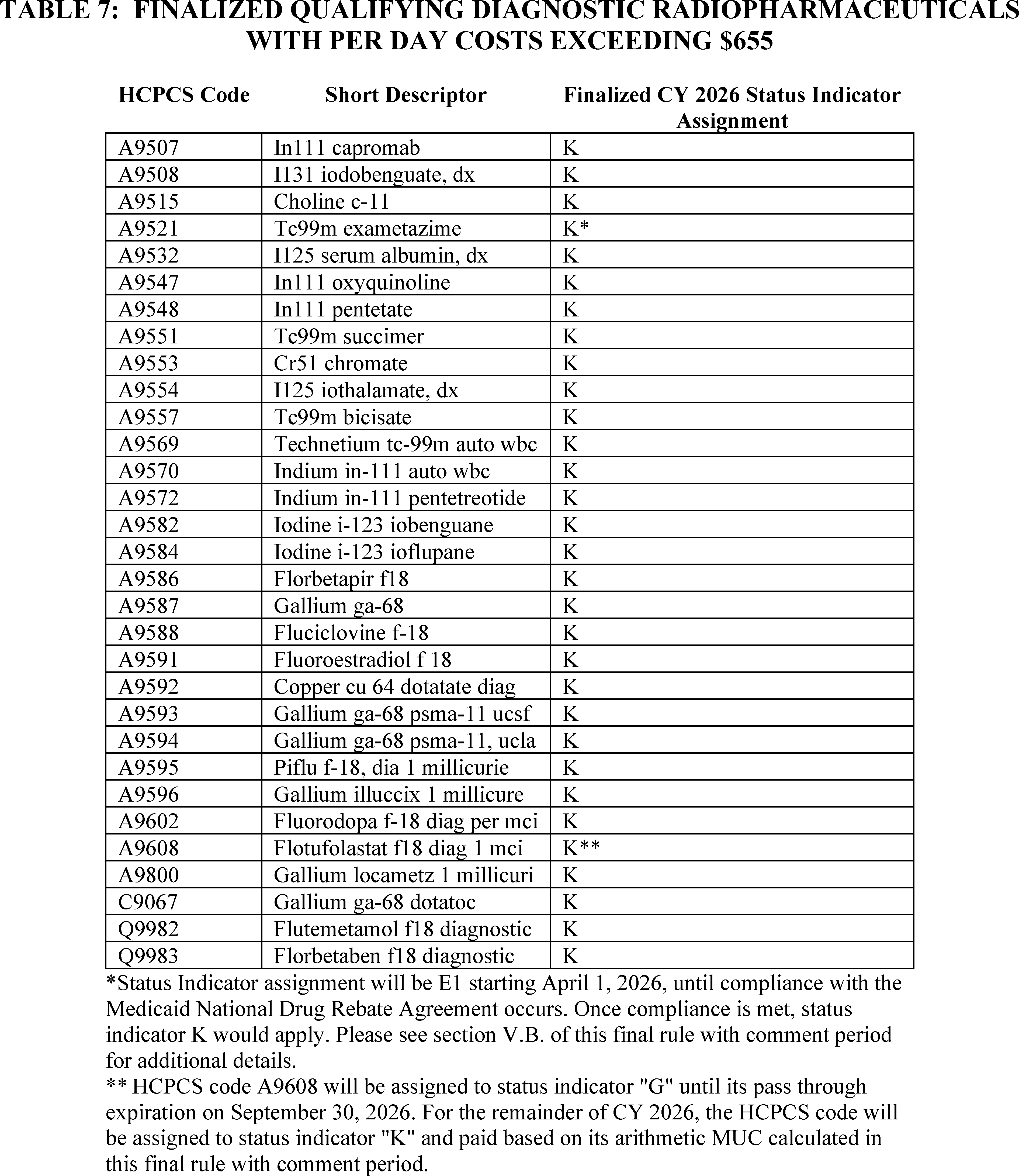 - Add-on Payment for Radiopharmaceutical Technetium-99m (Tc-99m) Derived from Domestically Produced Molybdenum-99 (Mo-99): In the CY 2025 OPPS/ASC final rule with comment period, we finalized that for CY 2026 the add-on payment for radiopharmaceuticals produced without the use of Tc-99m derived from non-Highly Enriched Uranium sources would be replaced with an add-on payment for radiopharmaceuticals that use Tc-99m derived from domestically produced Mo-99. For CY 2026, we are finalizing a $10 per dose amount for this add-on payment, and that at least 50 percent of the Mo-99 used in the Tc-99m generator that produces a dose of Tc-99m must be domestically produced for the dose to qualify for the add-on payment. We are also codifying our definition for domestically produced Mo-99, and to establish new HCPCS C-code C9176 (Tc-99m from domestically produced non-HEU Mo-99, [minimum 50 percent], full cost recovery add-on, per study dose).