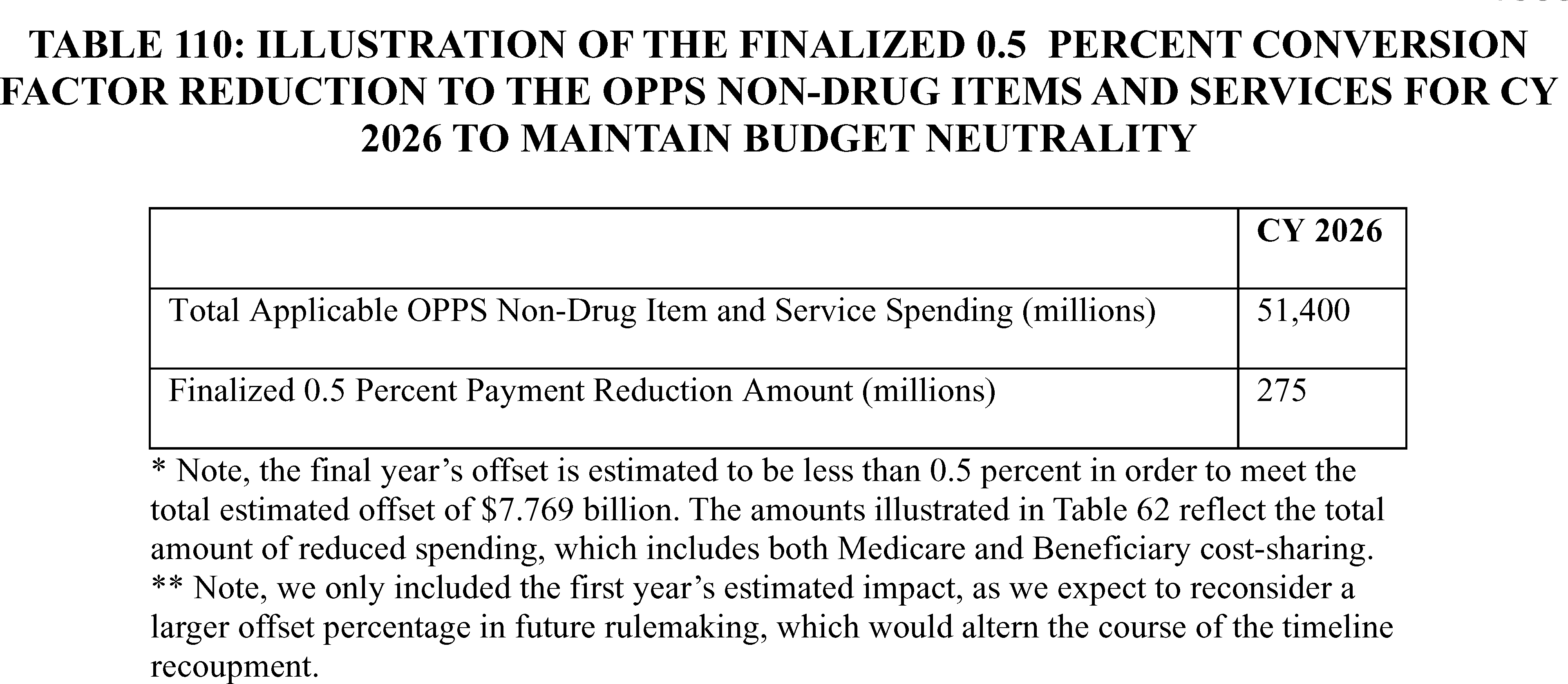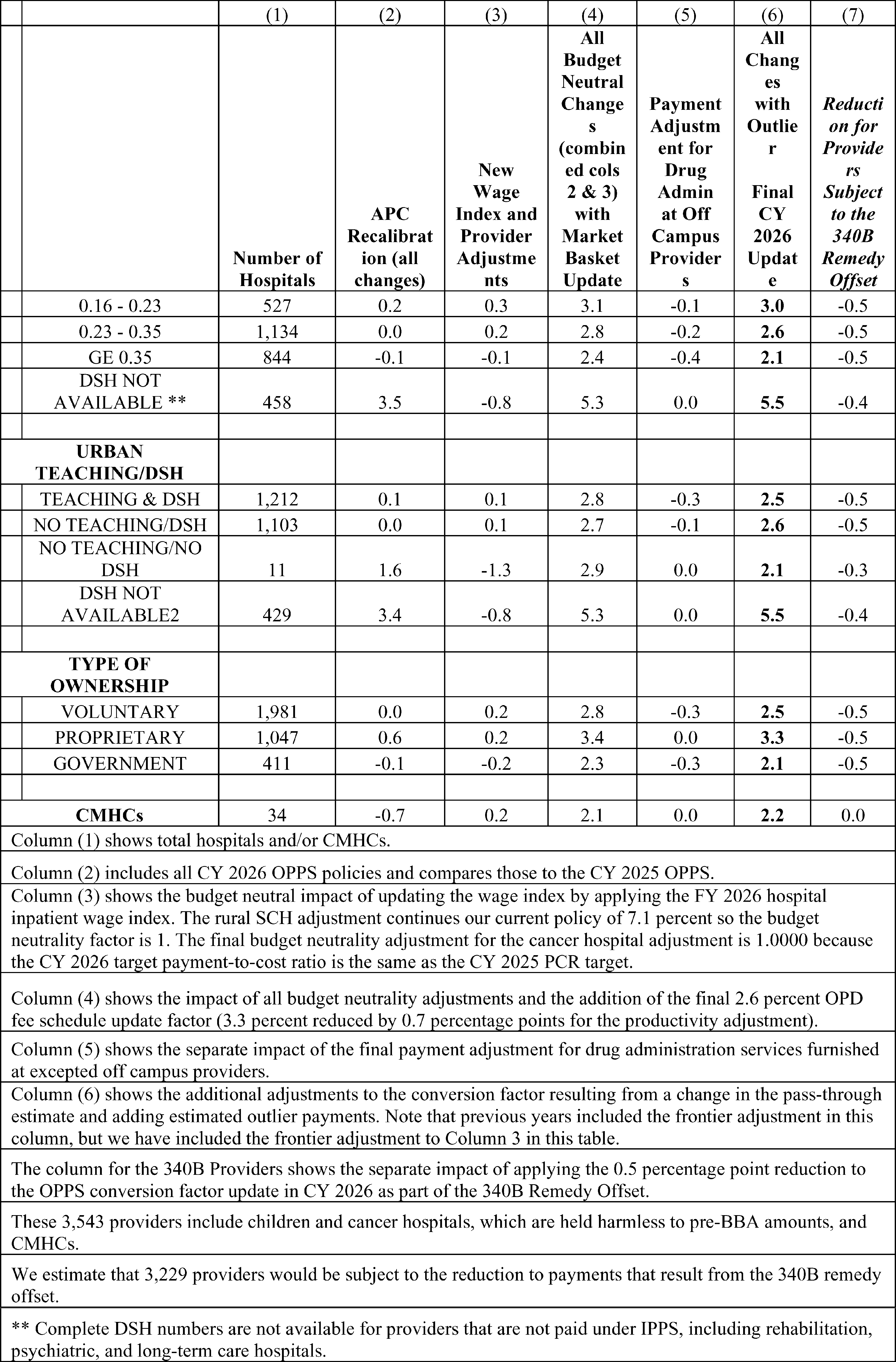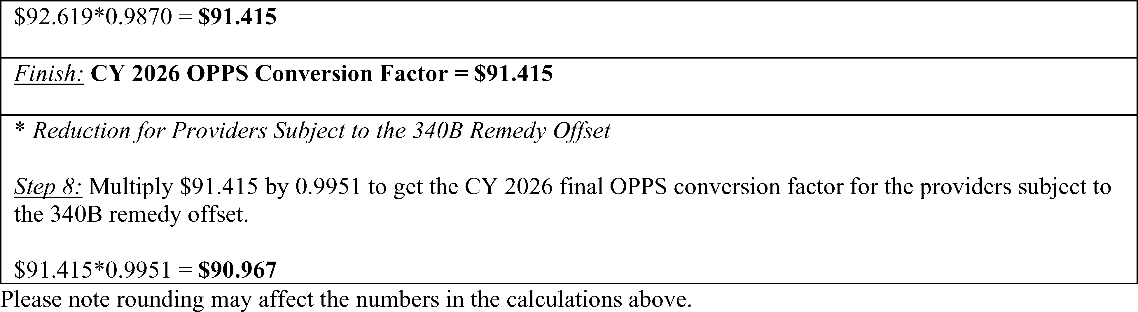 - Prospective Adjustment to Payments for Non-Drug Items and Services to Offset the Increased Payments for Non-Drug Items and Services Made in CY 2018 Through CY 2022 as a Result of the 340B Payment Policy. For CY 2026, we are applying the previously finalized reduction to the OPPS conversion factor under § 419.32(b)(1)(iv)(B)(12) used to determine the payment amounts for non-drug items and services for hospitals for whom this adjustment applies of 0.5 percent. The Remedy for the 340B-Acquired Drug Payment Policy for Calendar Years 2018-2022 (88 FR 77150) codified a 0.5 percent reduction in the OPPS conversion factor applicable to non-drug items and services, excluding hospitals that enrolled in Medicare after January 1, 2018.