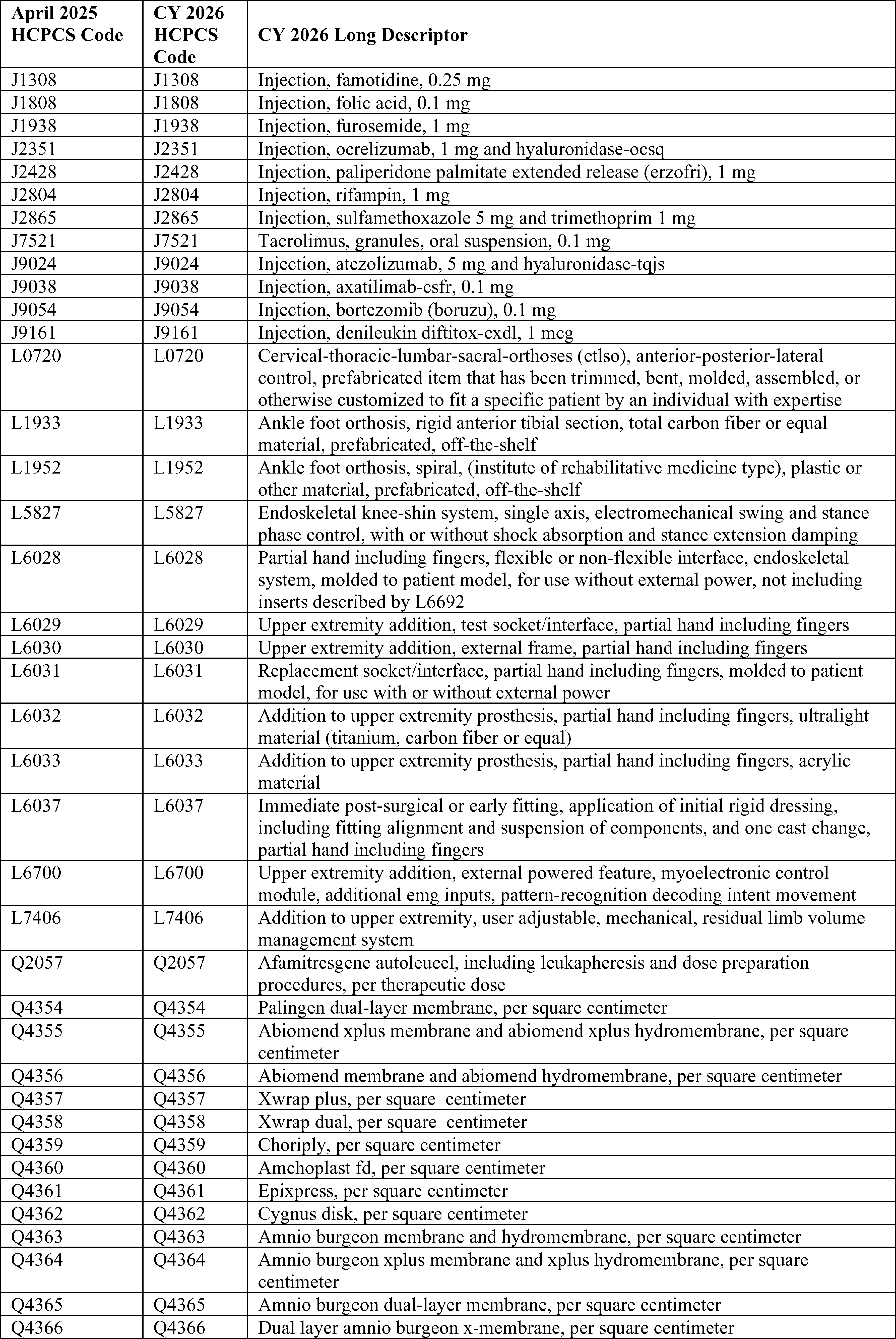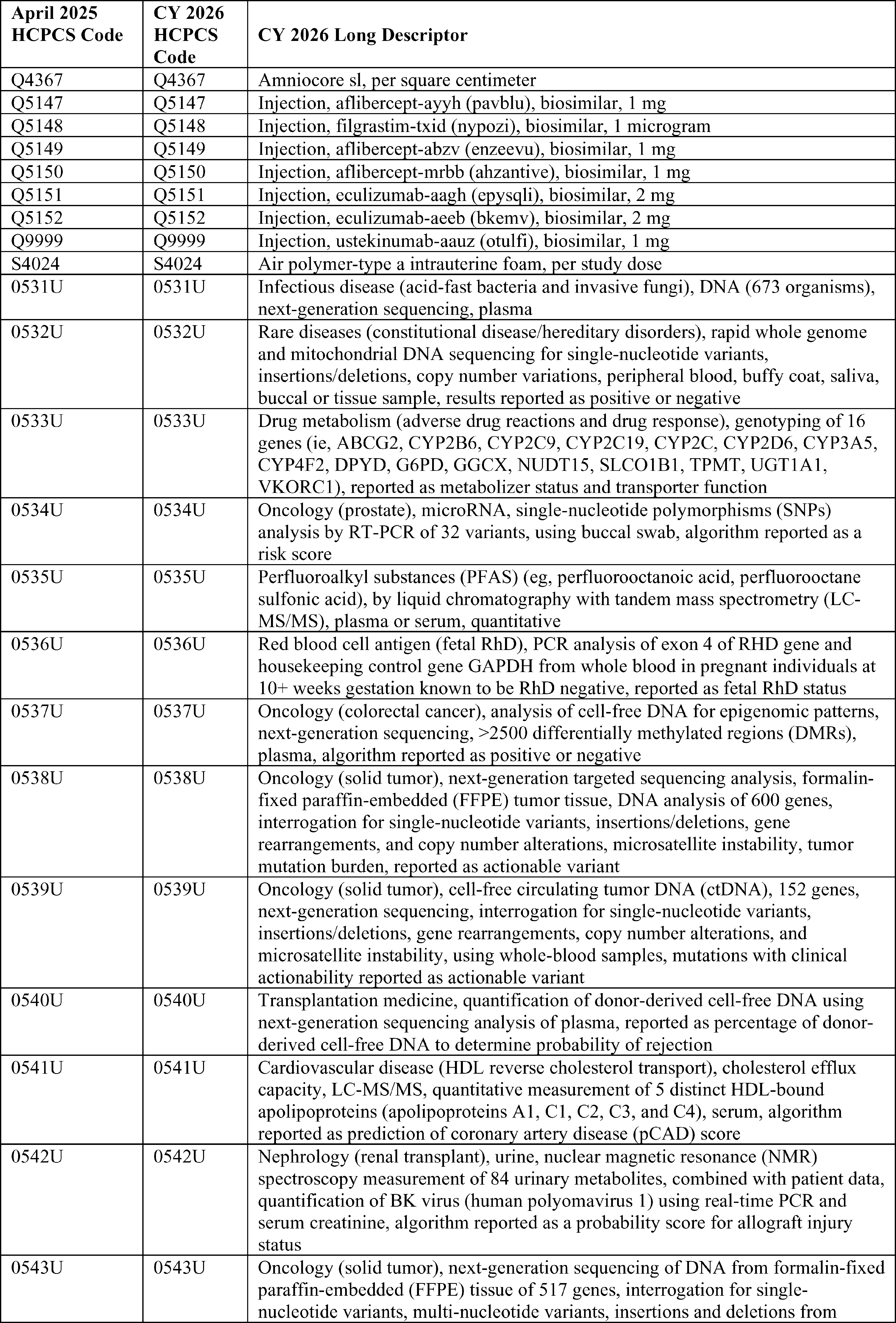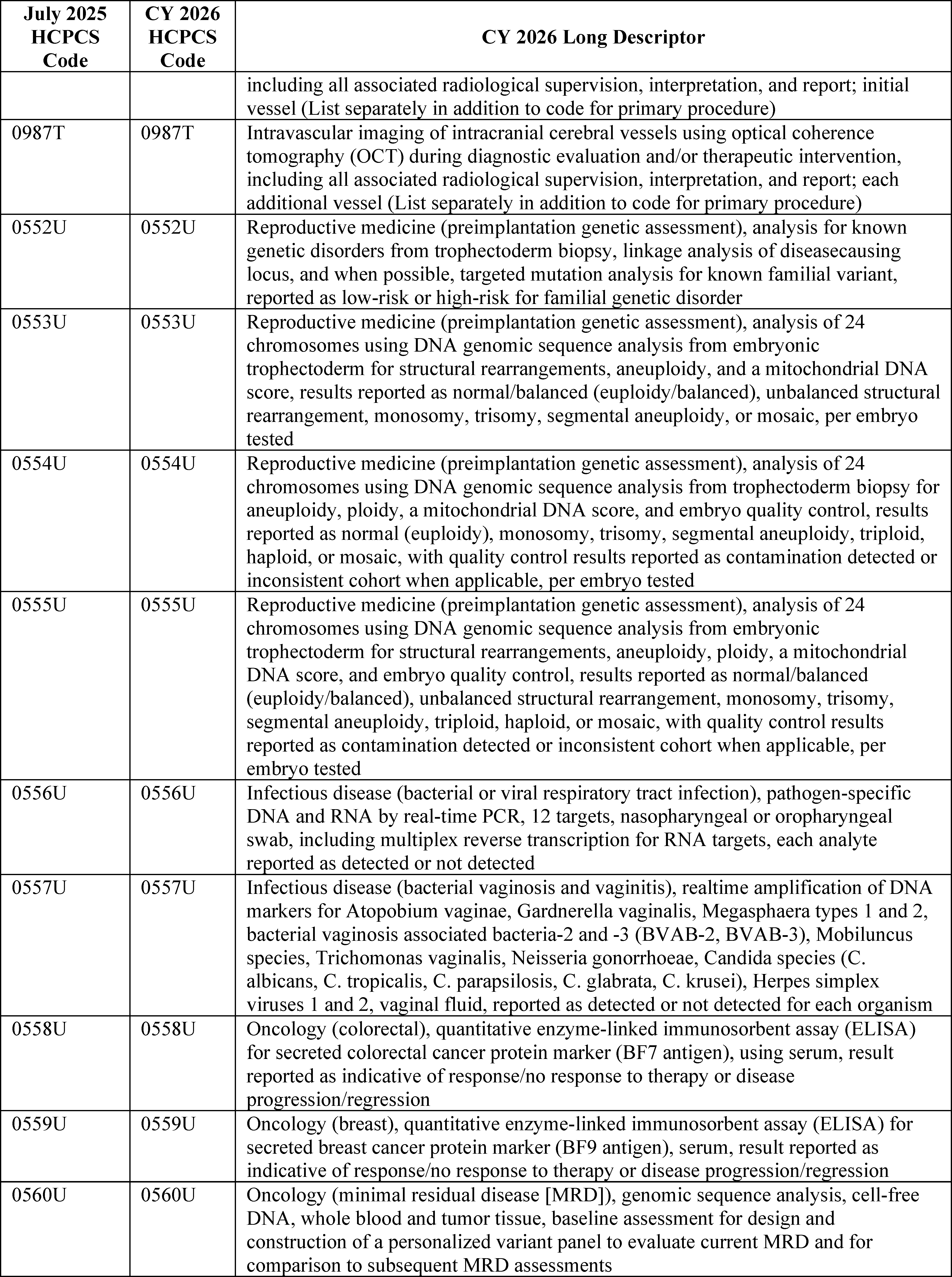 Throughout this final rule with comment period, we use CPT codes and descriptions to refer to a variety of services. We note that CPT codes and descriptions are copyright 2025 American Medical Association (AMA). All Rights Reserved. CPT is a registered trademark of the AMA. Applicable Federal Acquisition Regulations and Defense Federal Acquisition Regulations apply.