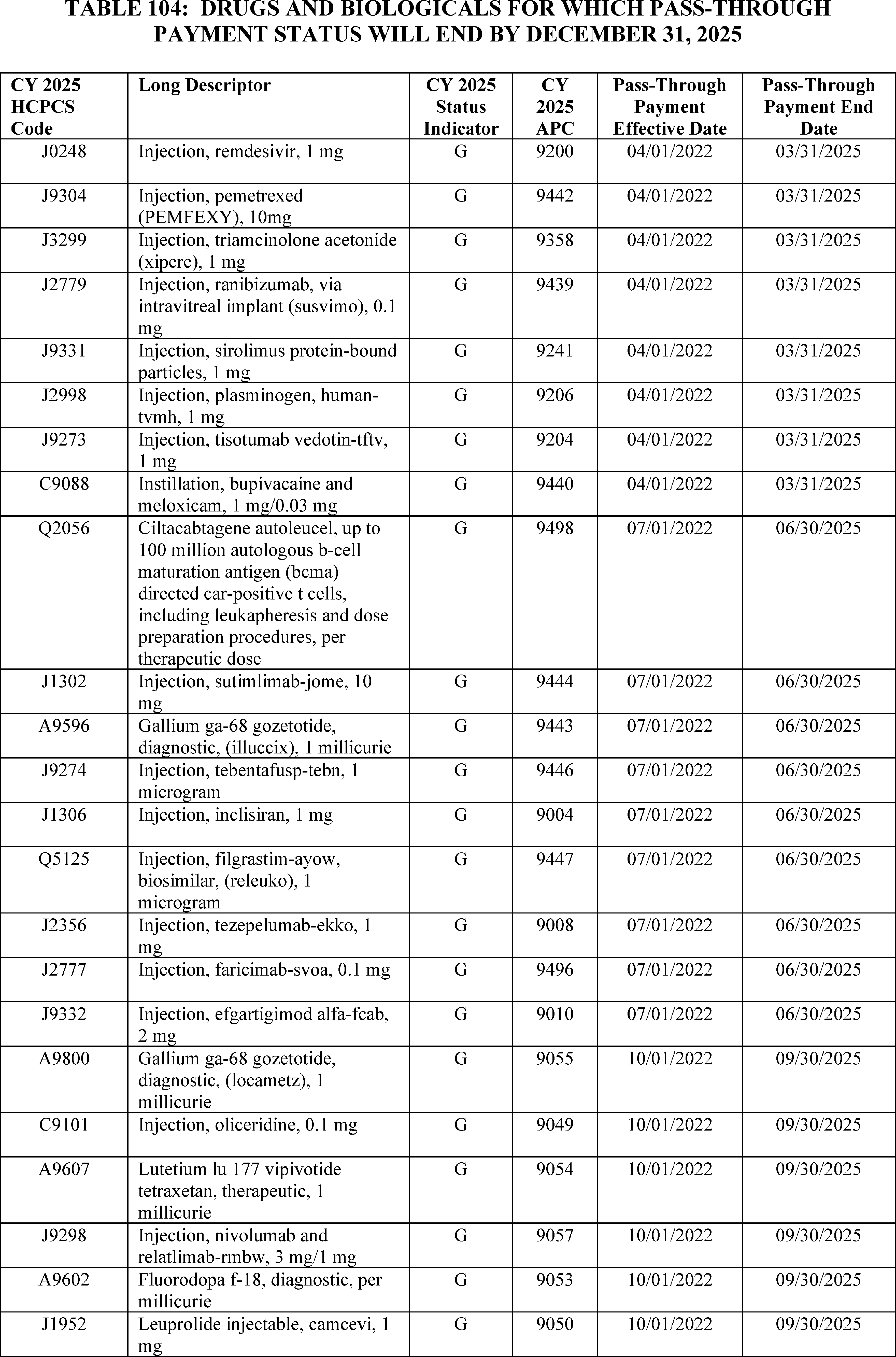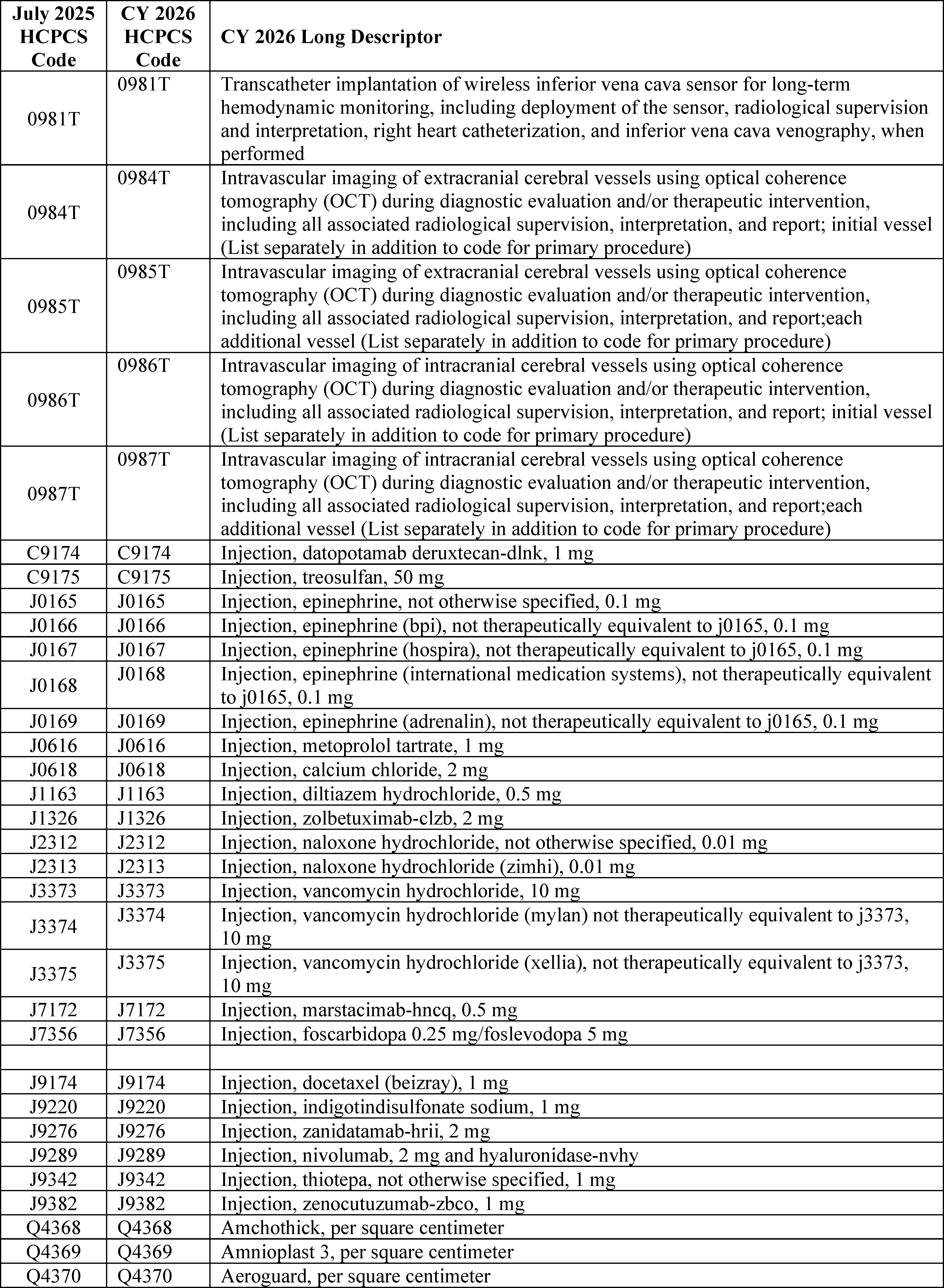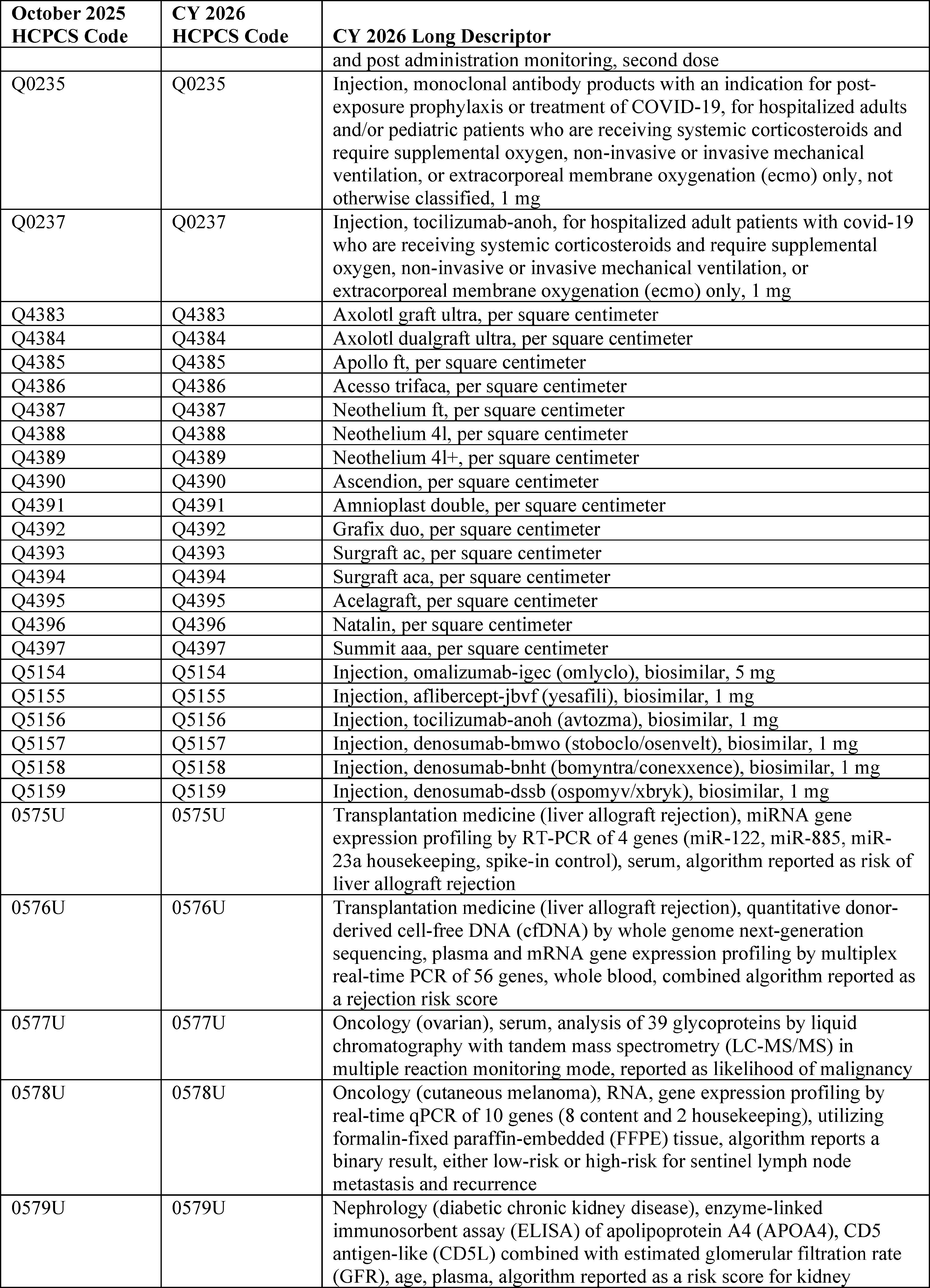 Throughout this final rule with comment period, we use CPT codes and descriptions to refer to a variety of services. We note that CPT codes and descriptions are copyright 2025 American Medical Association (AMA). All Rights Reserved. CPT is a registered trademark of the AMA. Applicable Federal Acquisition Regulations and Defense Federal Acquisition Regulations apply.